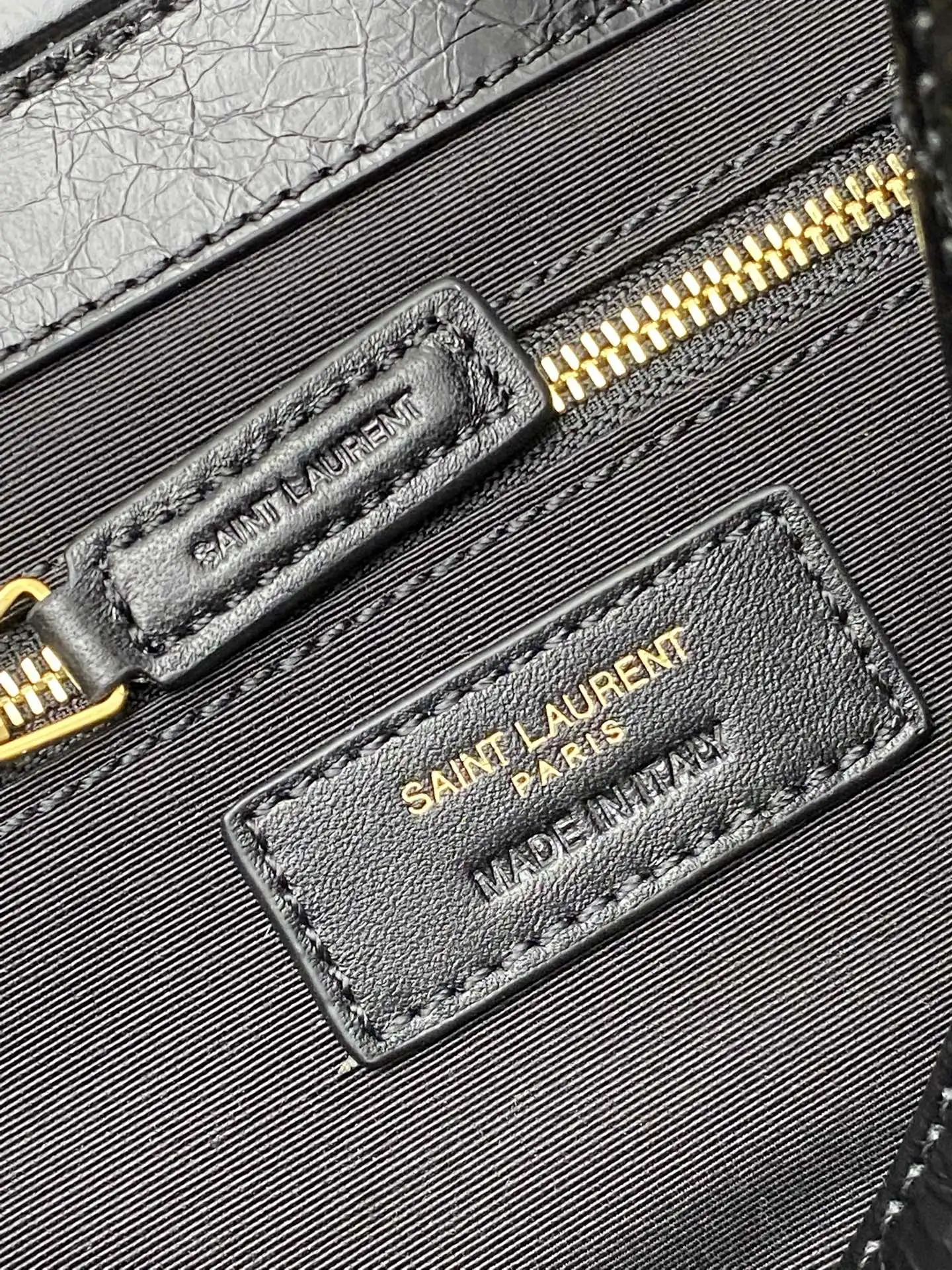 Oil wax black leather Saint Laurent Niki small shopping bag, black and gold color scheme is super textured! Oil wax cowhide material, natural wrinkles on the surface, soft and durable to the touch. Metal chain shoulder strap + YSL logo, retro and fashionable, lightweight and just the right capacity, suitable for commuting and going out! Internal magnetic snap button + zipper pocket, super convenient for storage, can be switched between hand-held and shoulder-carried at will, practical and versatile, is a popular model in the Niki series!