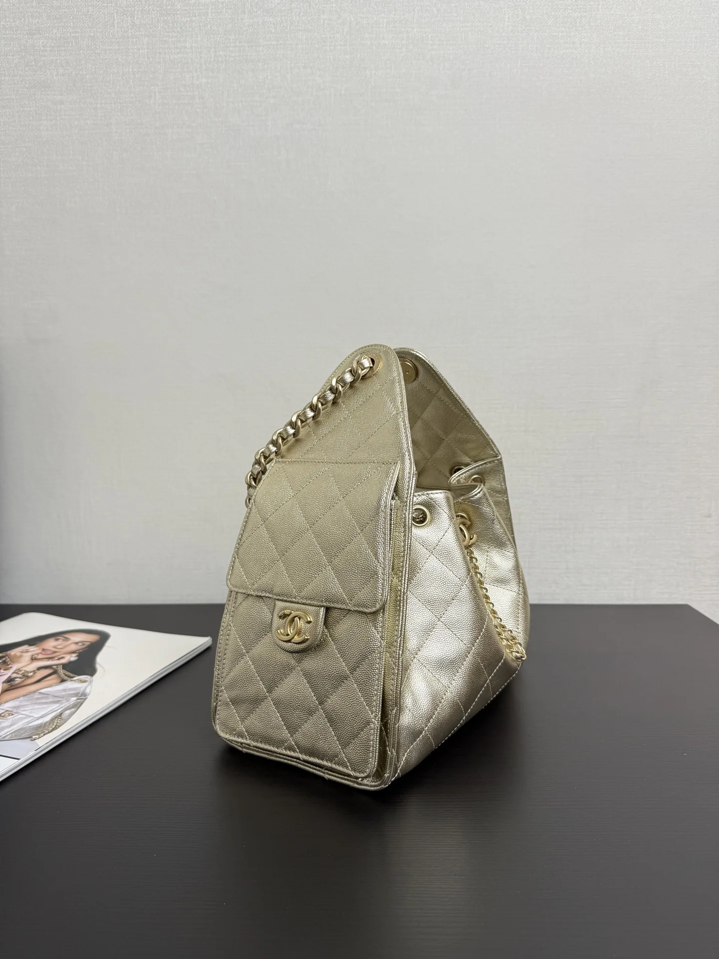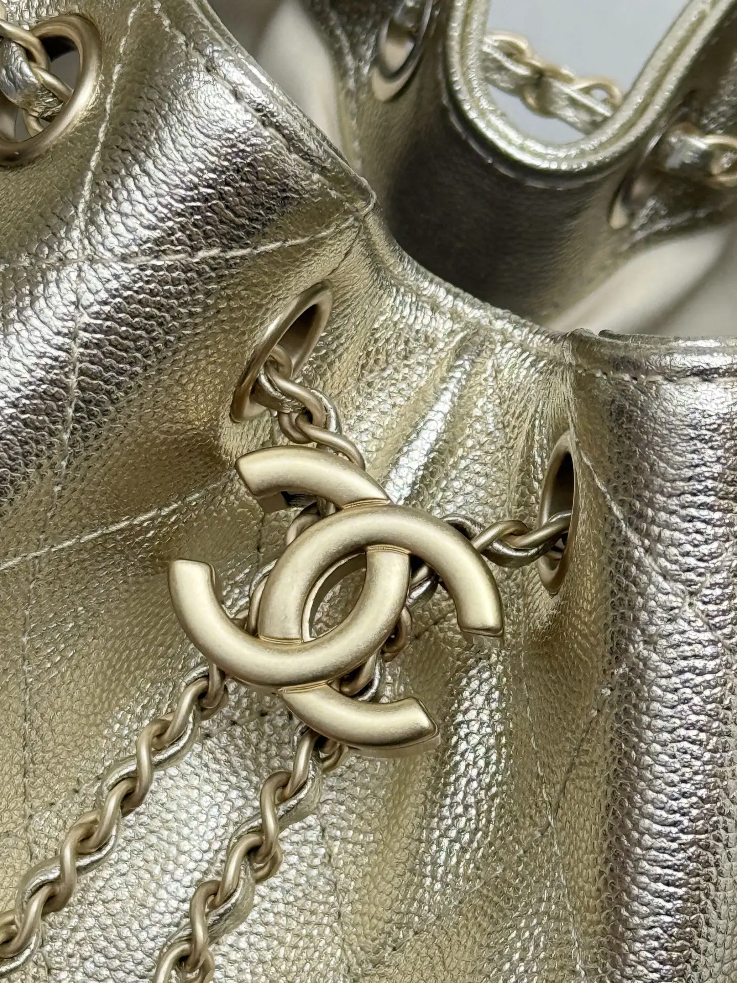 Original factory leather 25A bucket drawstring bag! A new cute addition to the small Chanel series. It s essentially a small bucket bag made of soft, matte leather, resembling a deliberately crafted, meticulous pairing. It features a large double C logo design that can be adjusted! Charming small details include a non-adjustable chain and gold finish. The hardware uses vintage, distressed gold, giving it a very vintage feel. It s an irresistible piece. Size: 40*30*15cm, 30*26*14cm 99442