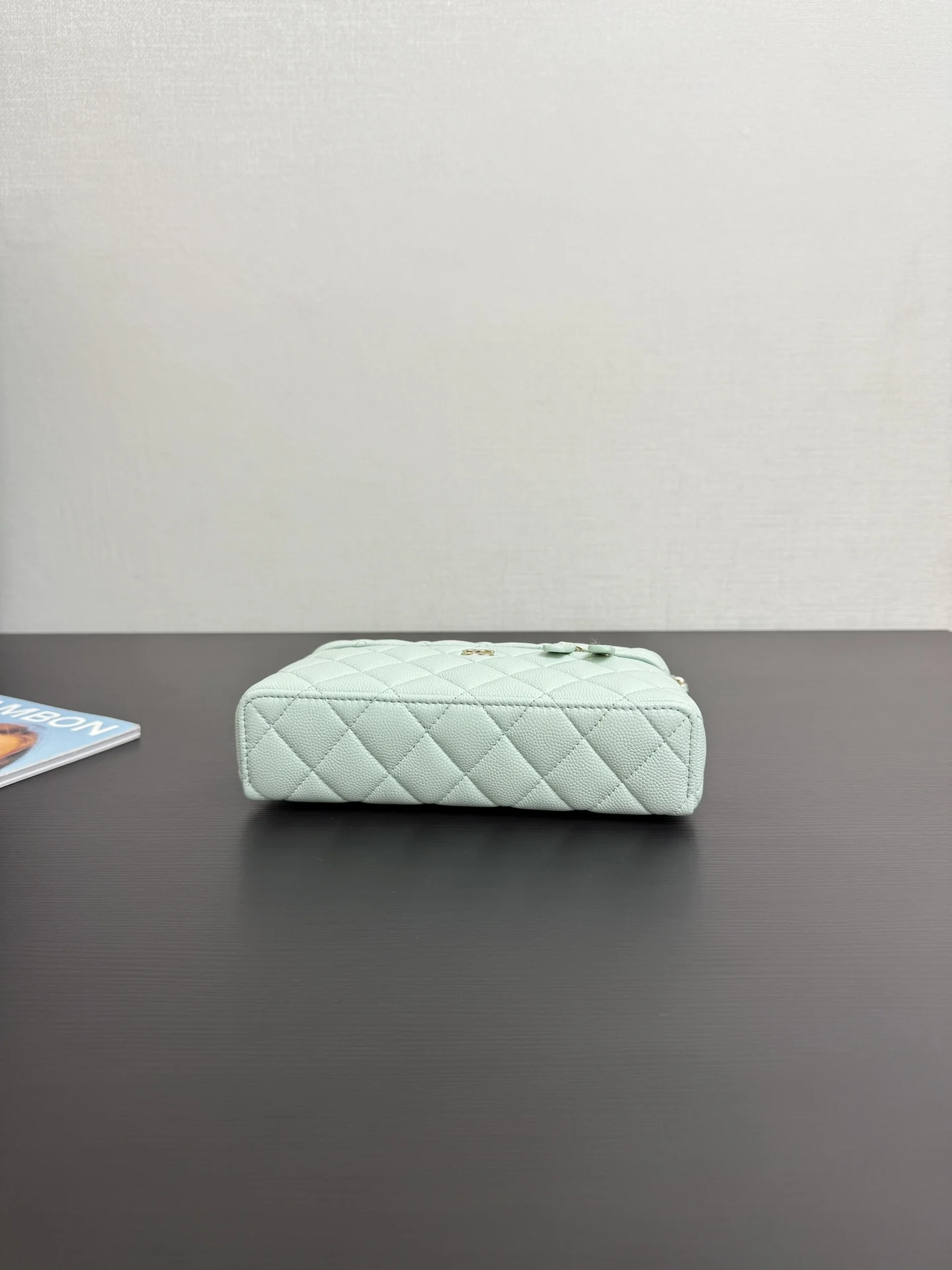 Original factory leather 25C LP box bag with light gold hardware,荔枝 leather, spacious, aesthetically pleasing and durable. Every design resonates with me! Compact size, perfect for daily outings. The logo design on the handle is simple and elegant. Not only is the appearance fashionable, but the internal structure is also reasonable. The width is slightly wider than the current box bag, with 19cm, easily accommodating a max phone! This bag is beautiful whether carried by hand or crossbody! The chain is detachable! It looks great with everyday outfits and is very fashionable 99448