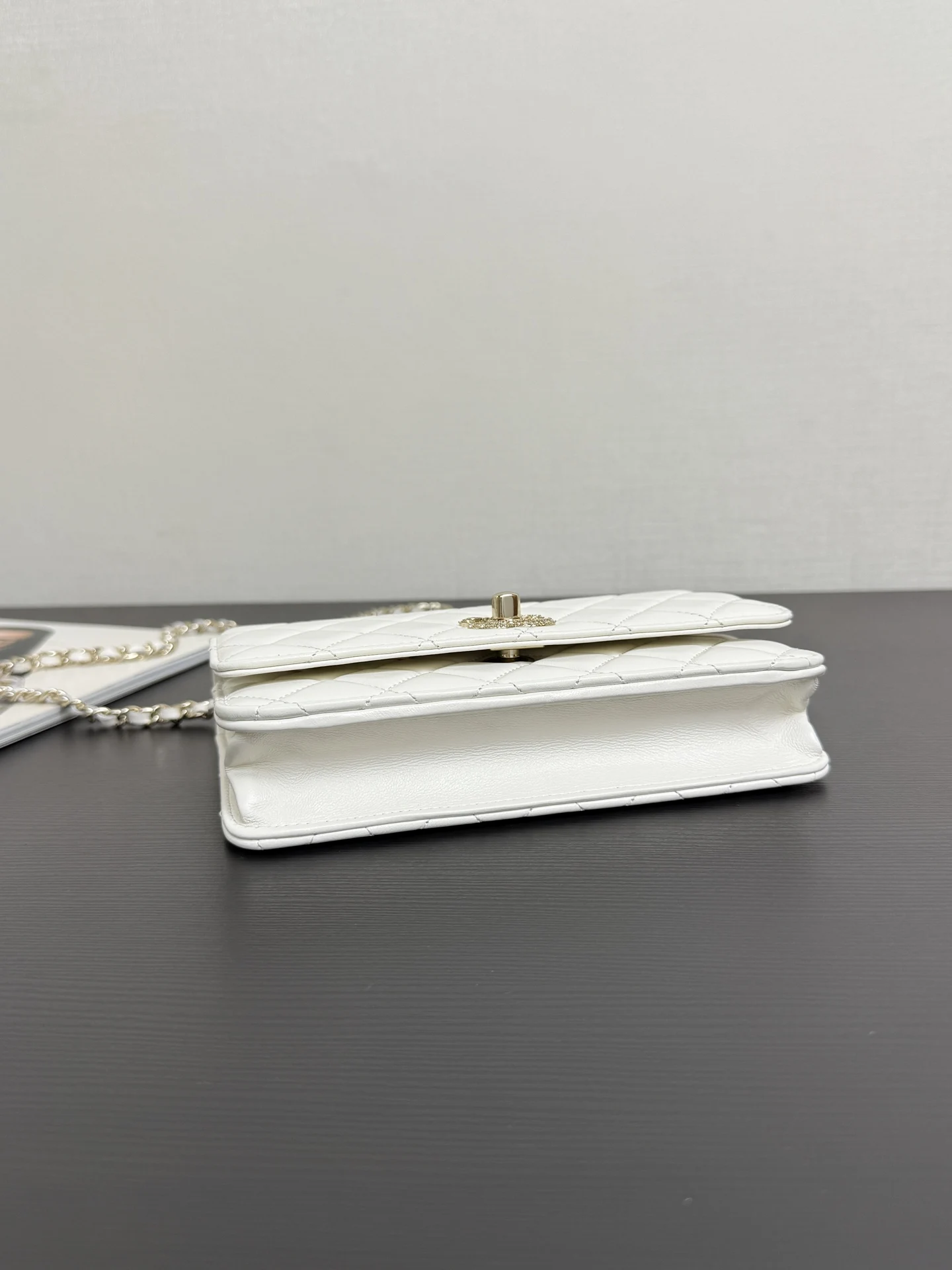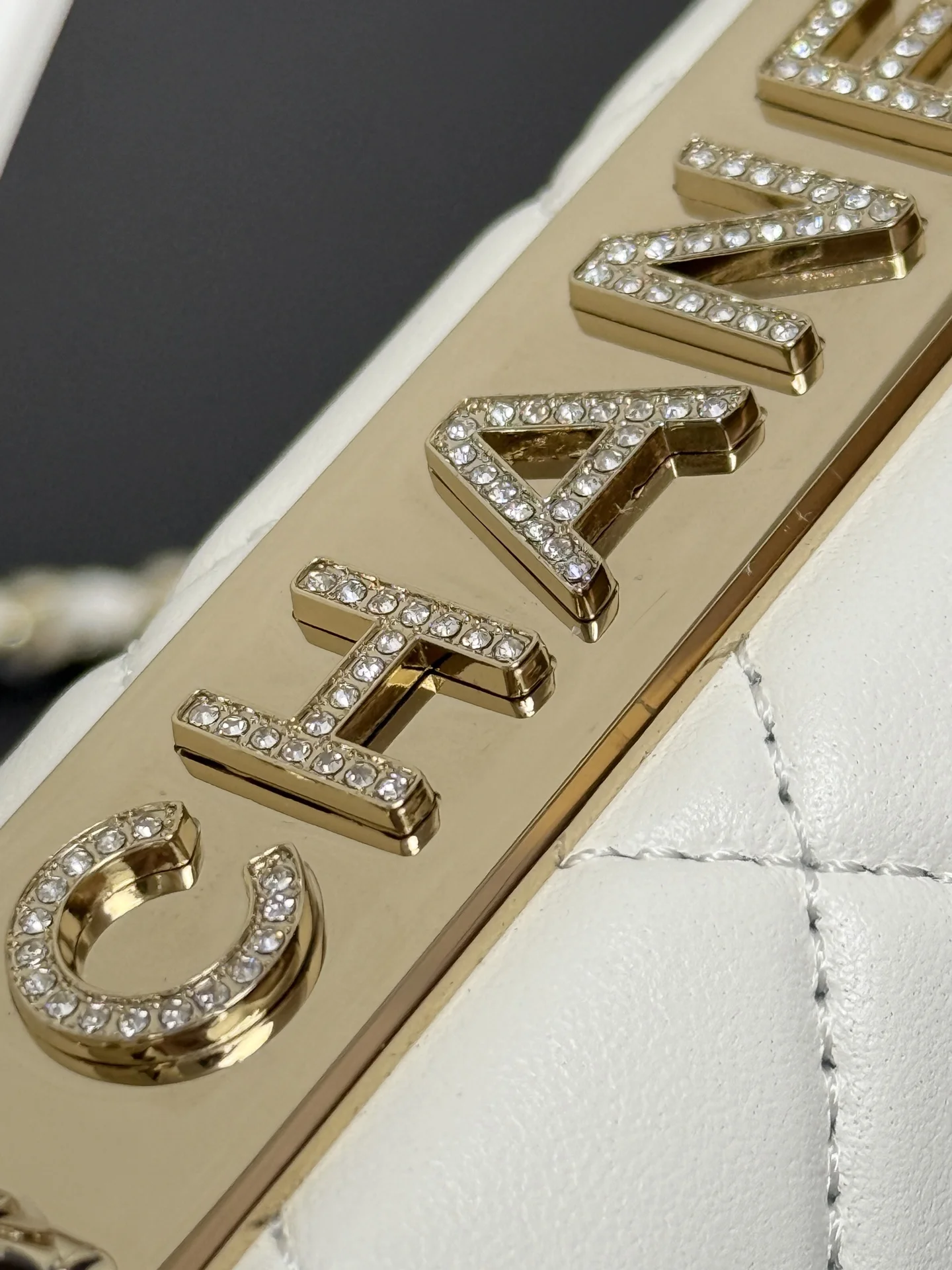 Original factory leather 25S Trendy CC diamond buckle accordion bag available in limited quantities. It exudes a sense of luxury. The diamond buckle is bling-bling and super sparkly. This double-layered accordion bag is considered large among small bags, capable of holding powder compacts, keys, and lipstick. The card slots can accommodate various cards. Its appearance is no less appealing than other bags. The bag body is made of lambskin leather, which is soft and supple. The top letters also have rhinestones, making it even more exquisite than previous Trendy CC bags. It can be carried by hand, crossbody, or worn as a double-chain single-shoulder bag under the arm. There are many ways to wear it without needing to adjust the buckle. Size: 18cm 99479