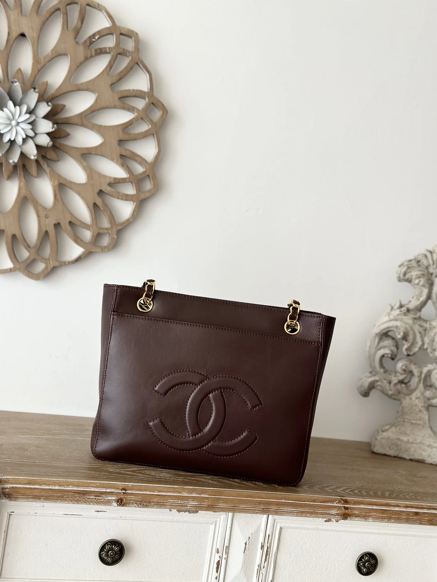 Chanel Vintage Shopping Bag with Caviar Leather and Gold Hardware a vintage sentimentality is all over this bag! The cowhide material is durable, and the highly recognizable larg..