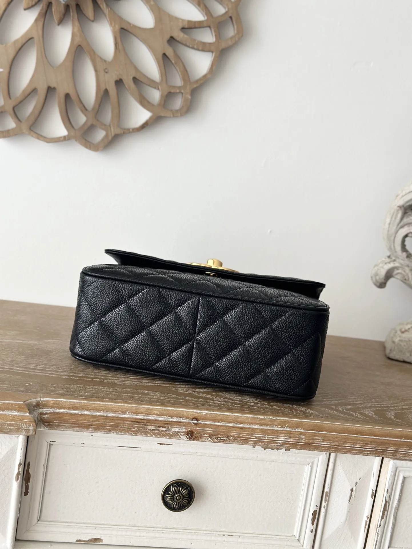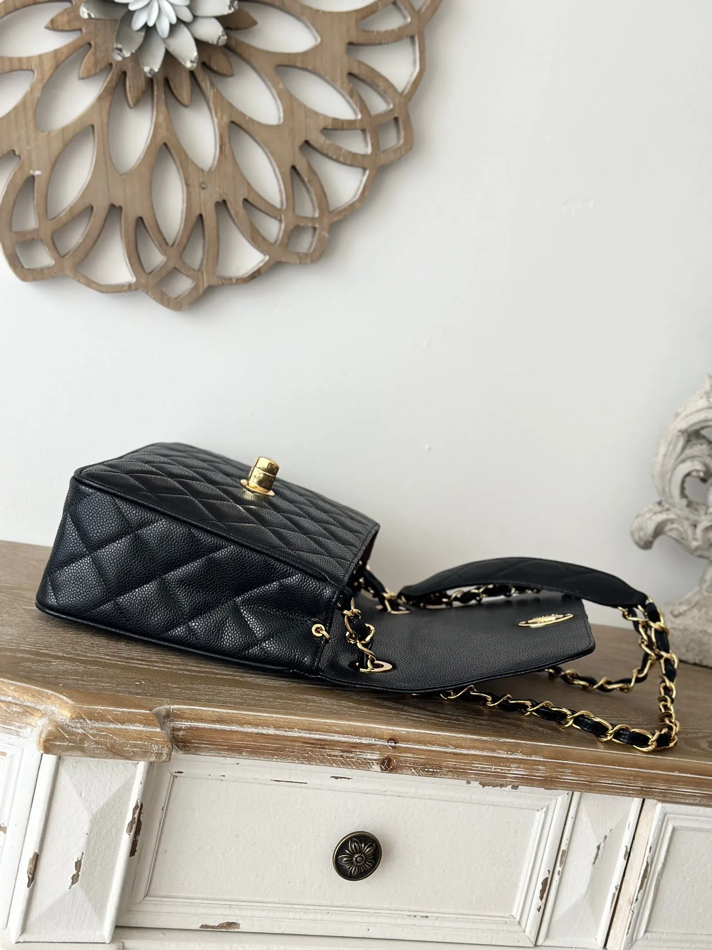 Victoria Beckham Style Black Caviar Leather In Stock Chane Vintage Rare Gold Buckle CF Chanel Classic Flap Bag, a re-release with slight modifications to Coco Chanel s design after..