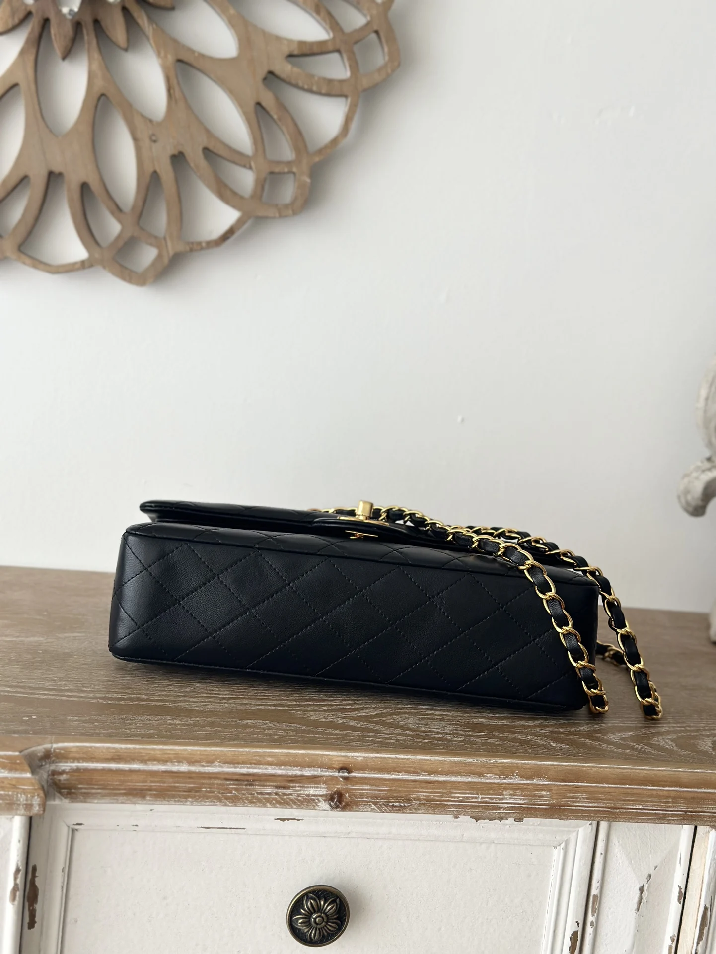 Chane Vintage Pre-owned Black Lambskin CF - A true heirloom from Chanel! The most classic vintage CF in black lambskin with diamond quilting and gold-tone hardware. A timeless Classic Flap exuding rich vintage charm - absolutely irresistible! Features a twist-lock closure and a sliding chain for versatile shoulder or crossbody wear. Perfect size and capacity for everyday use and incredibly versatile! Dimensions: 26cm. Serial number: A2220