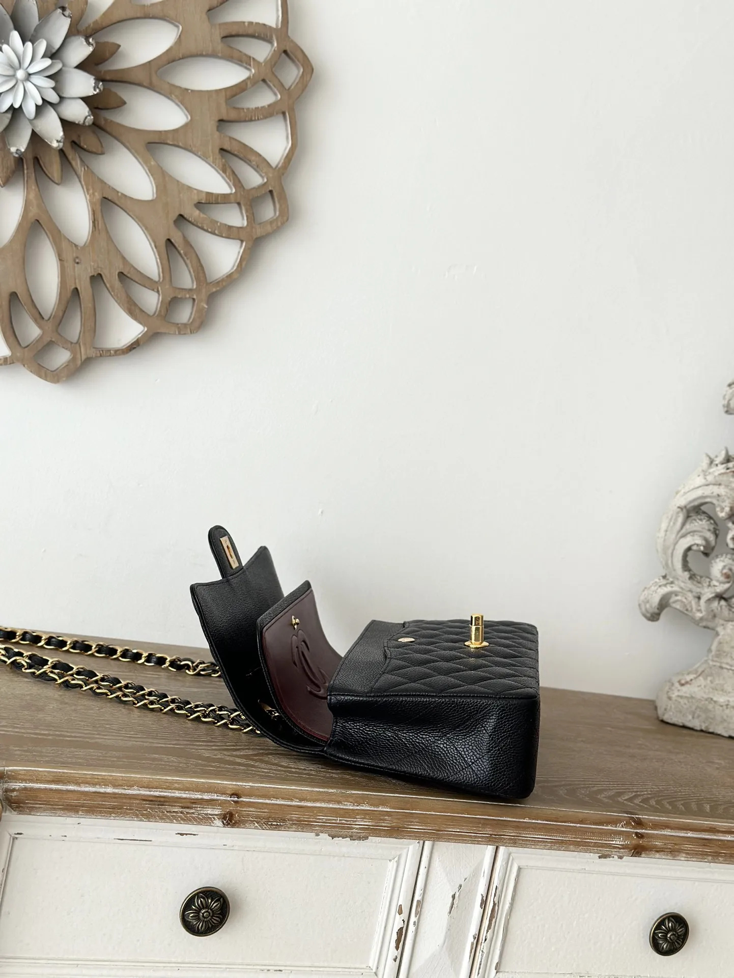 Chane Vintage Pre-owned Black Caviar Leather CF - A true heirloom from Chanel! The most classic vintage CF in black lambskin with diamond quilting and gold-tone hardware. A timeless classic flap exuding rich vintage charm - absolutely captivating! Features a twist-lock closure and a sliding chain for versatile shoulder or crossbody wear. Perfect size for everyday essentials and incredibly versatile! Dimensions: 26cm. Serial number: A2220.