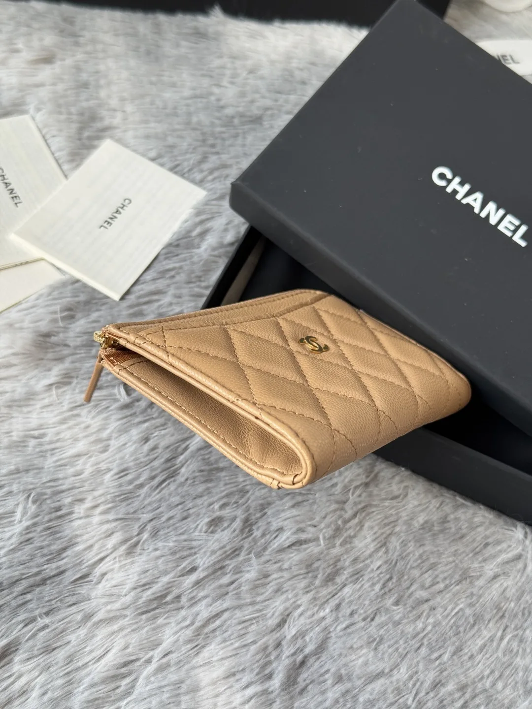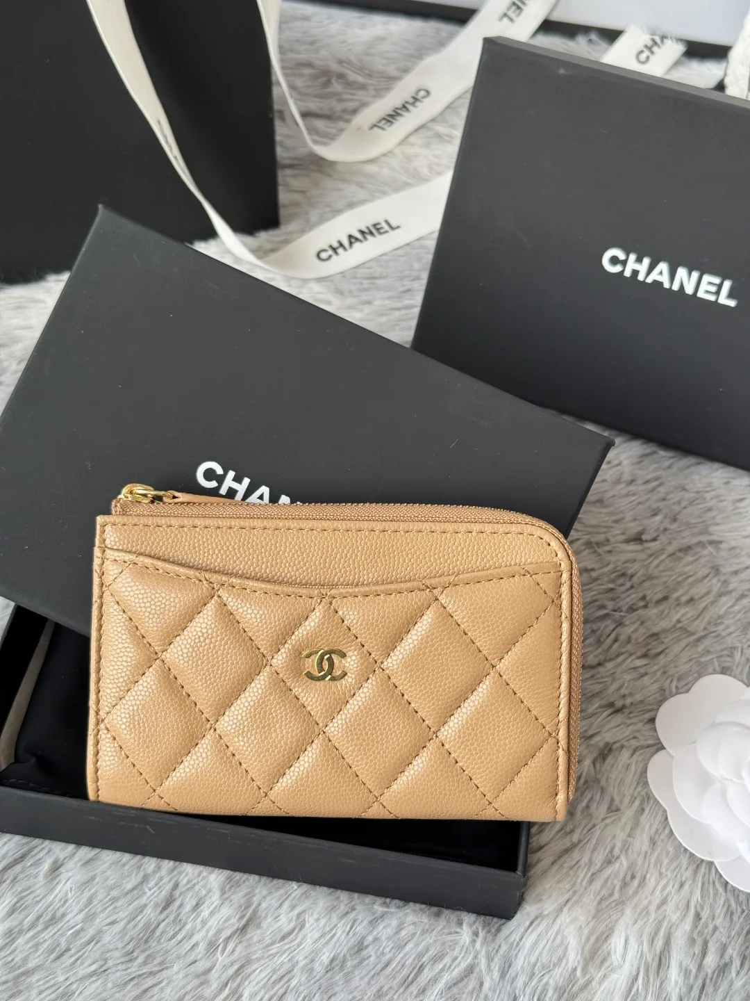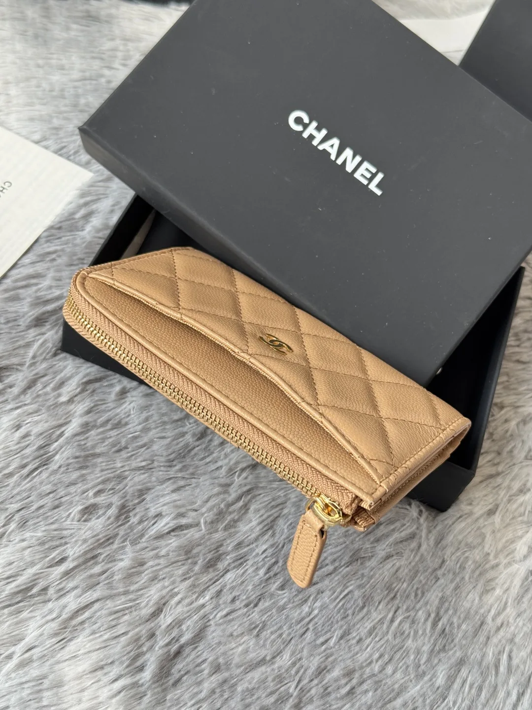 CHANEL 2024 New Product CHANEL 7-Shaped Single Zipper Card Holder Original Quality Model Number: A3179, Color as Shown, Size 12*7.5*2.5cm. Caviar Imported Cowhide.
