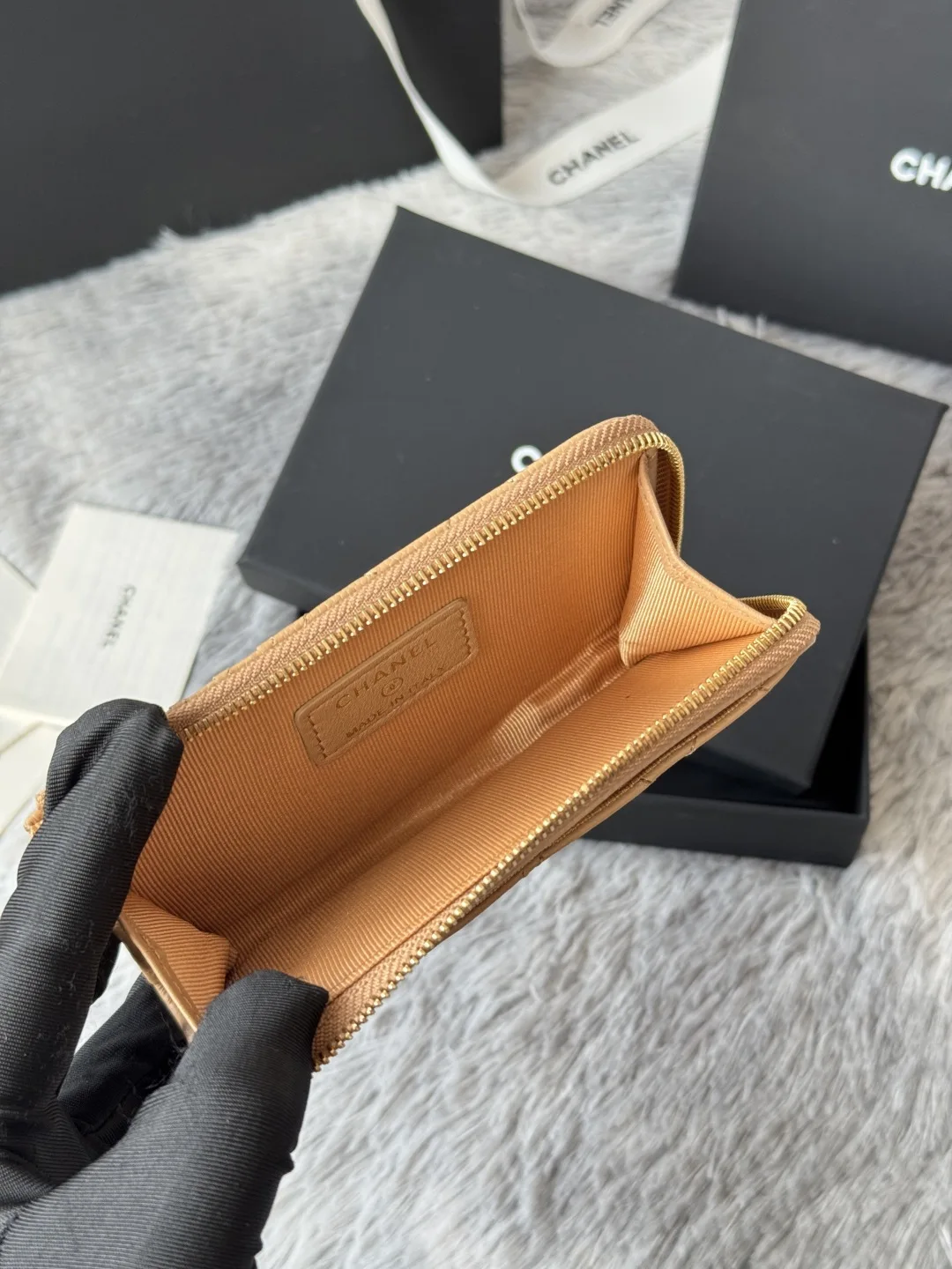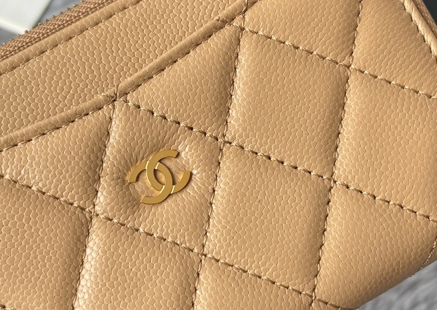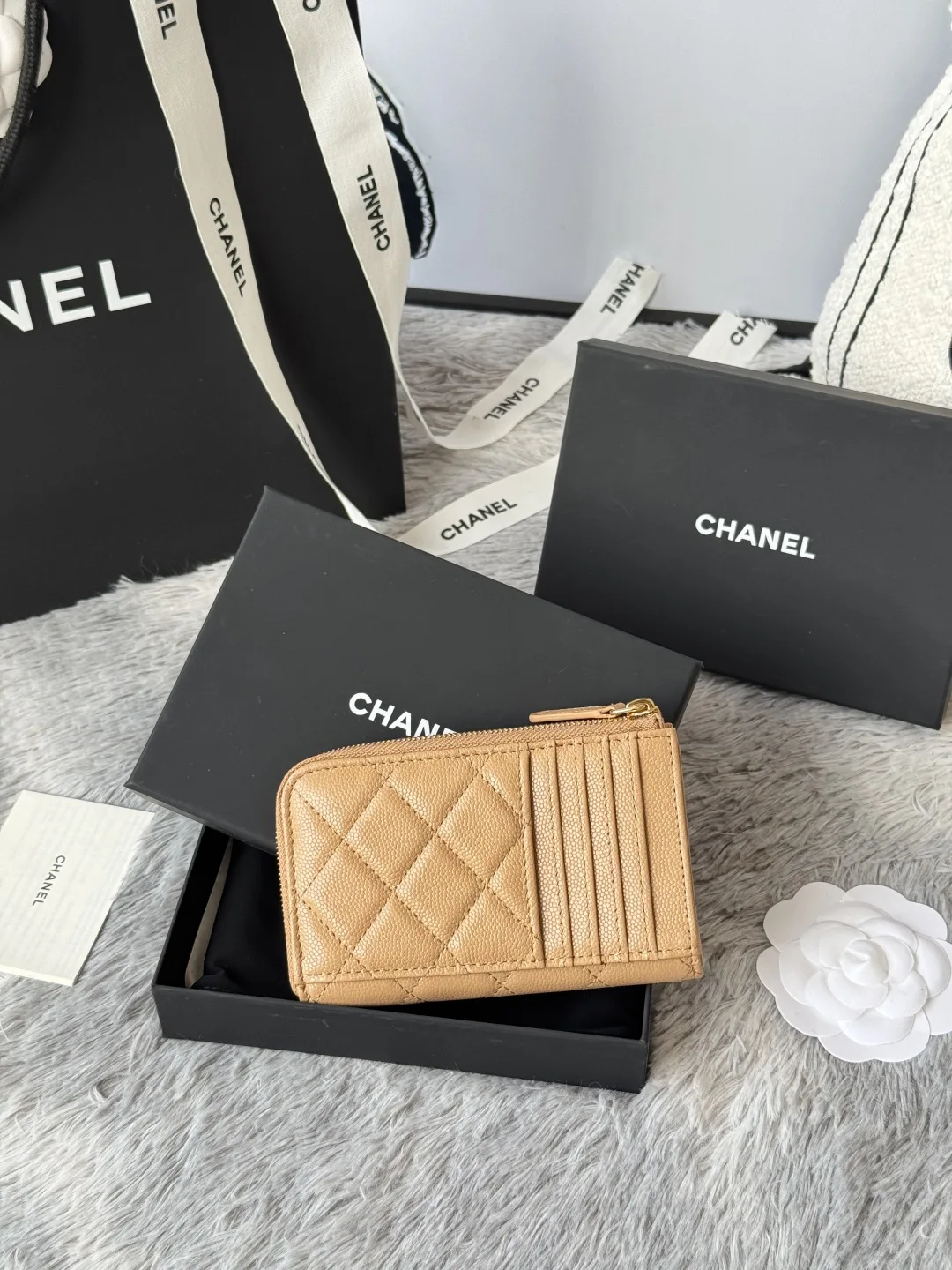 CHANEL 2024 New Product CHANEL 7-Shaped Single Zipper Card Holder Original Quality Model Number: A3179, Color as Shown, Size 12*7.5*2.5cm. Caviar Imported Cowhide.