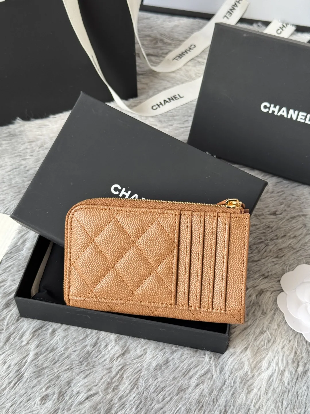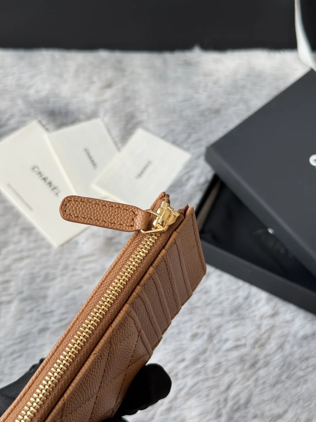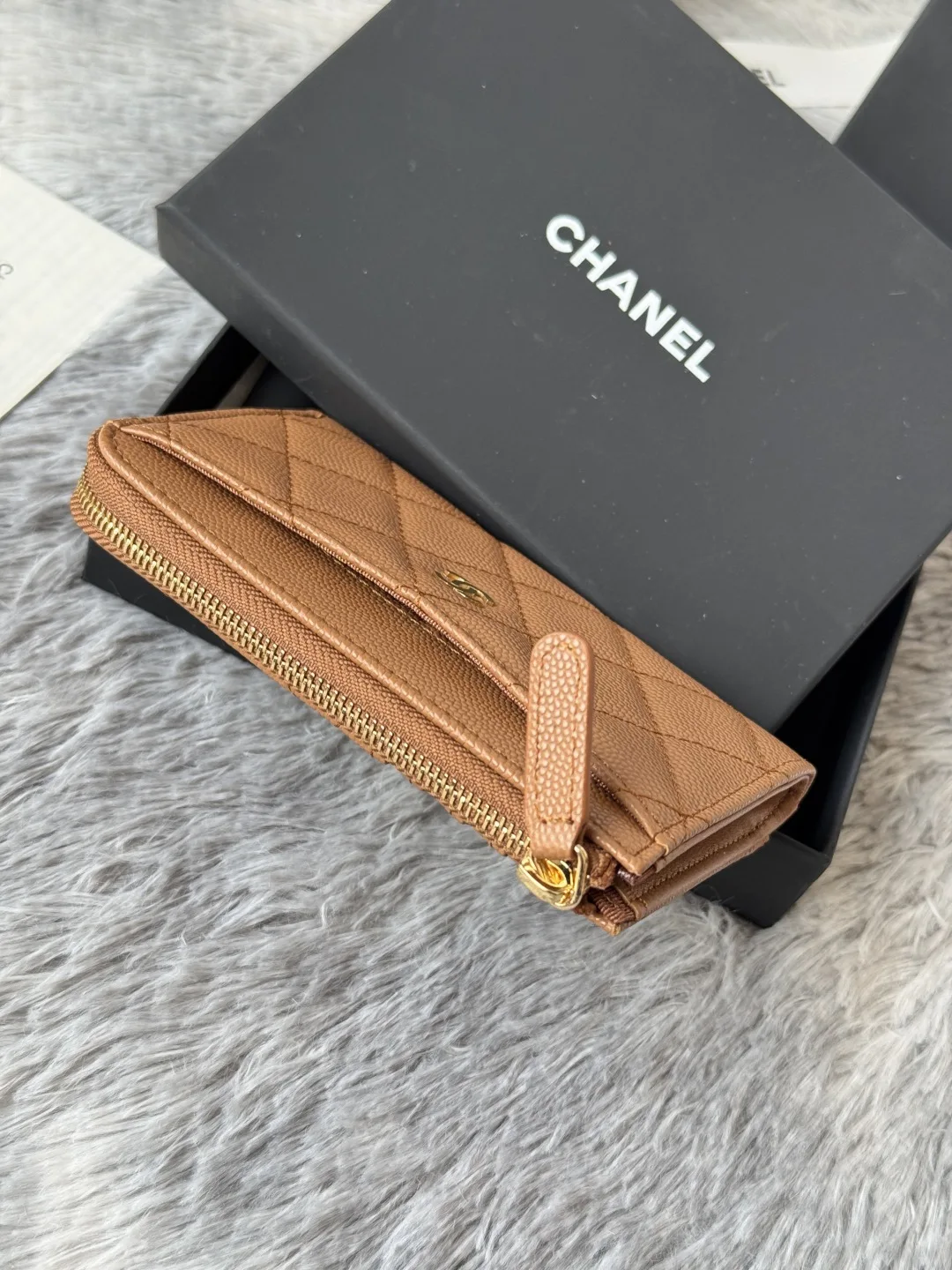 CHANEL New 2024 Product CHANEL 7-Shaped Single Zipper Card Holder Original Quality Model Number: A3179, Color as Shown Size 12*7.5*2.5cm. Caviar Imported Cowhide.