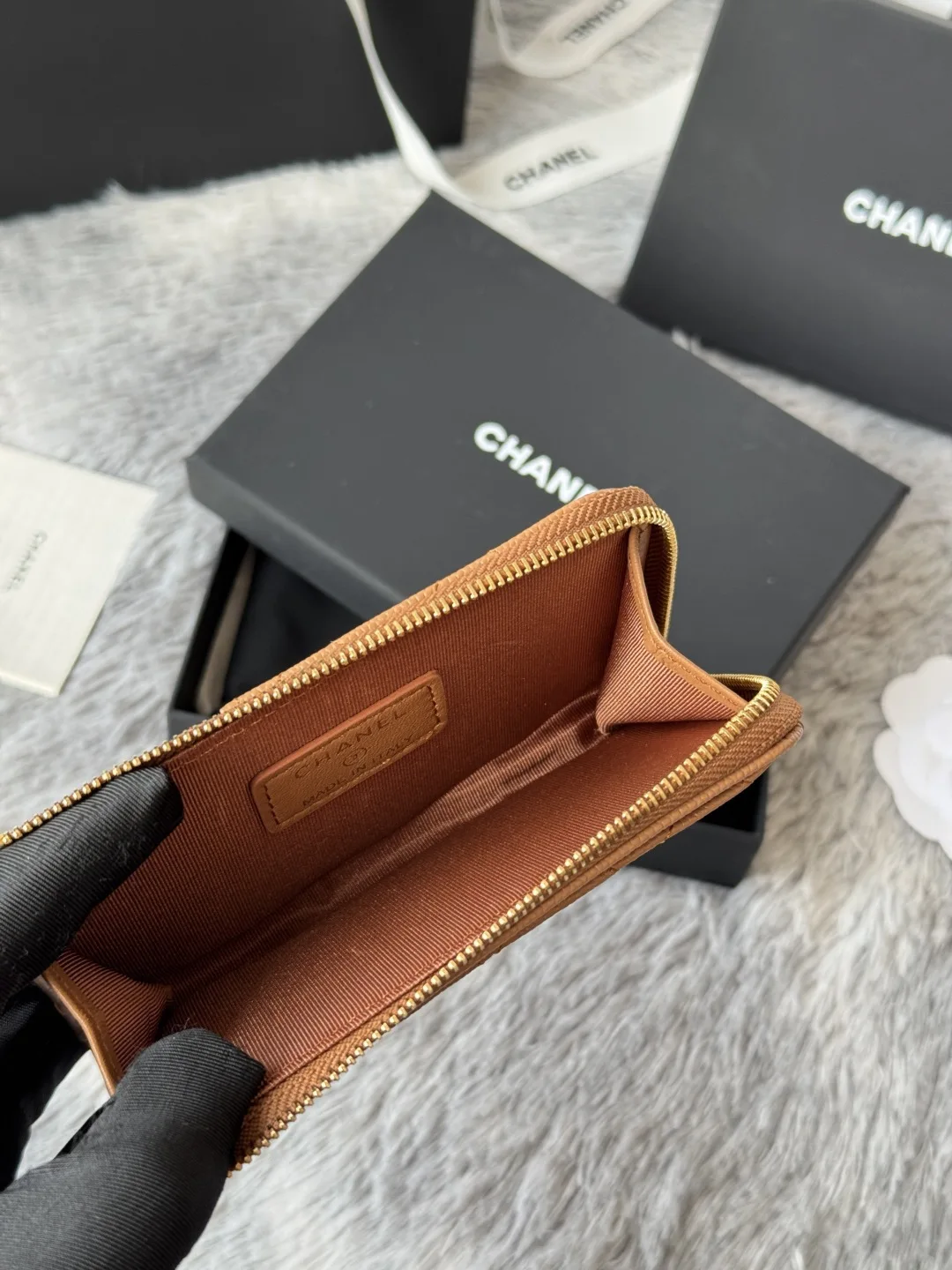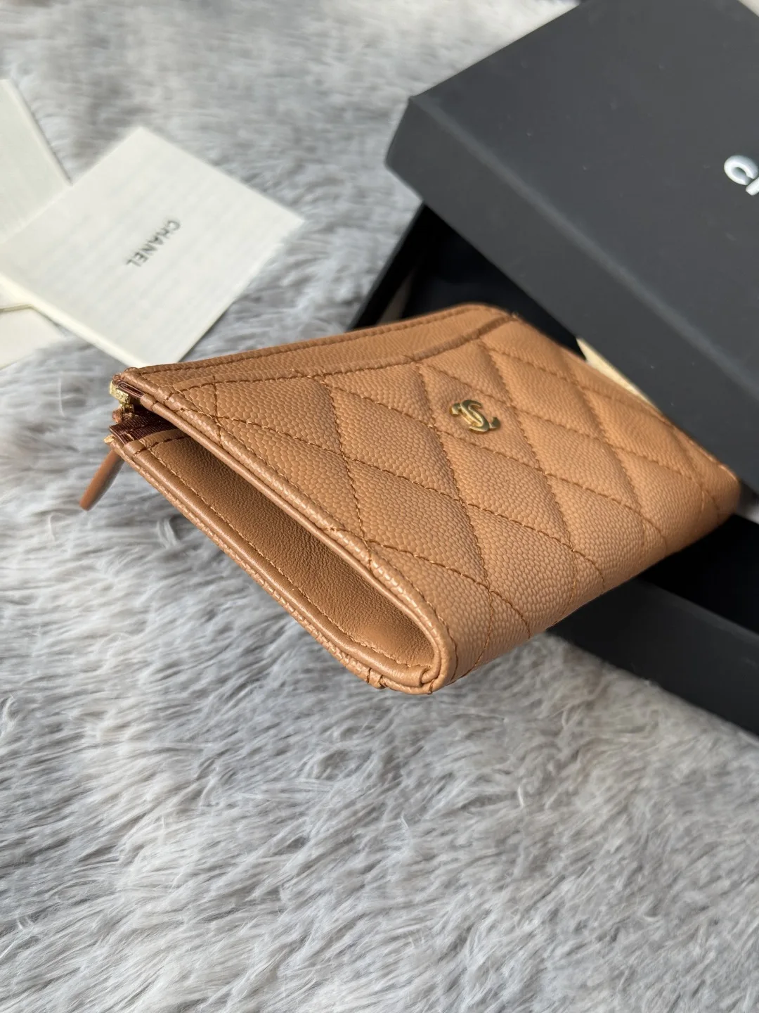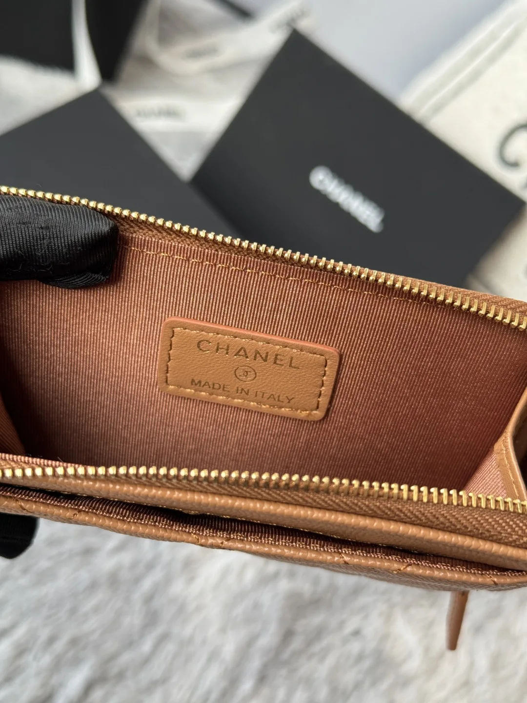 CHANEL New 2024 Product CHANEL 7-Shaped Single Zipper Card Holder Original Quality Model Number: A3179, Color as Shown Size 12*7.5*2.5cm. Caviar Imported Cowhide.