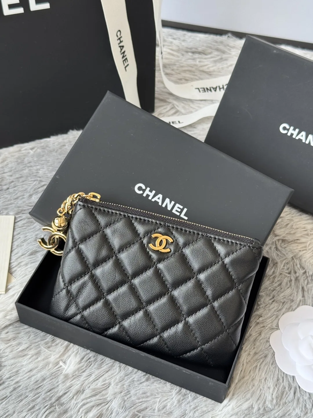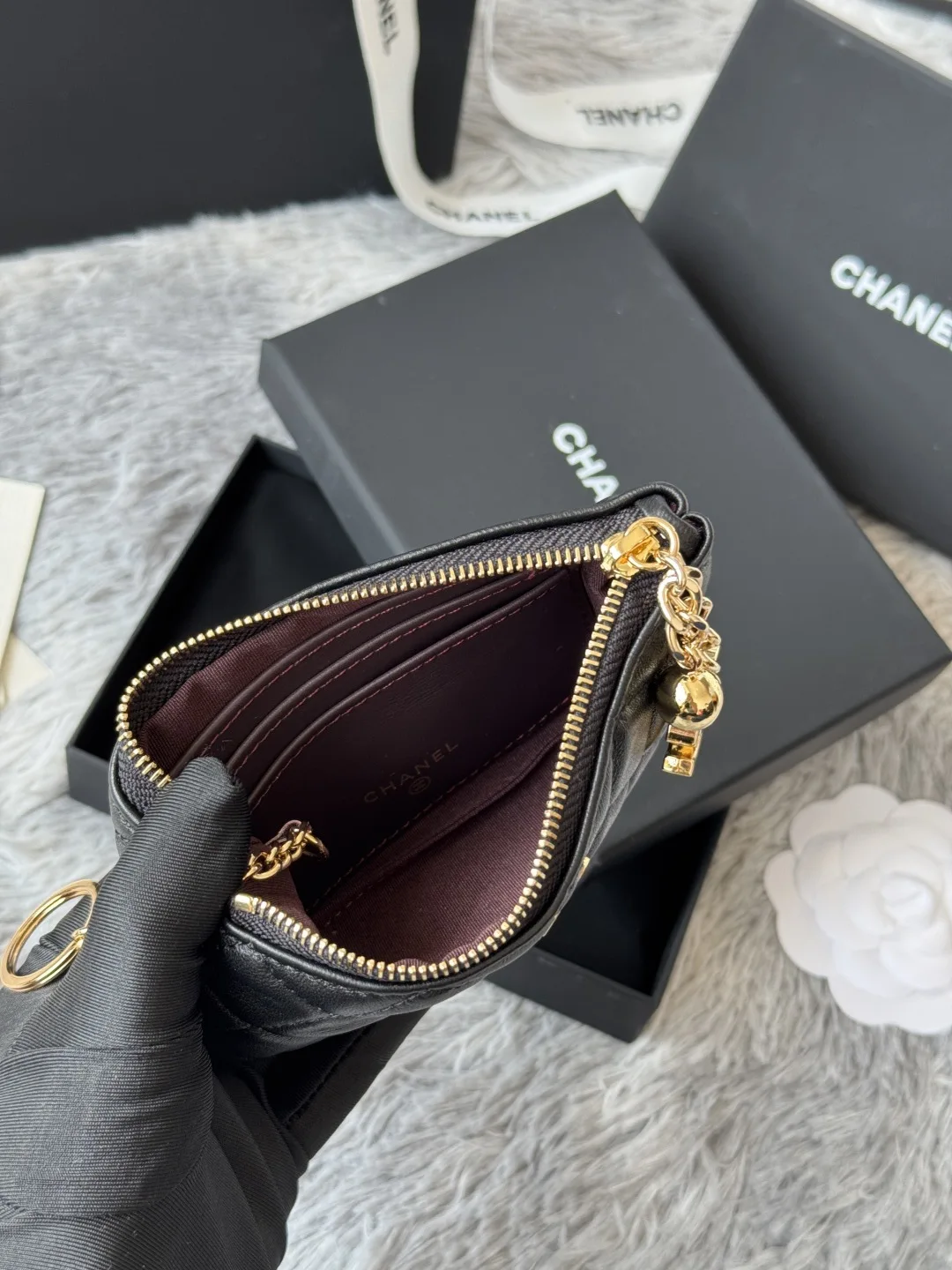 Original CHANEL Pendant Coin Purse Card Holder, Super Cute Zipper Mini Model A50168 - Top-Quality Leather and Hardware, Diamond Pattern. Original Quality, Exquisite Details, Complete Packaging. Size: 14-10-1cm, As Shown.