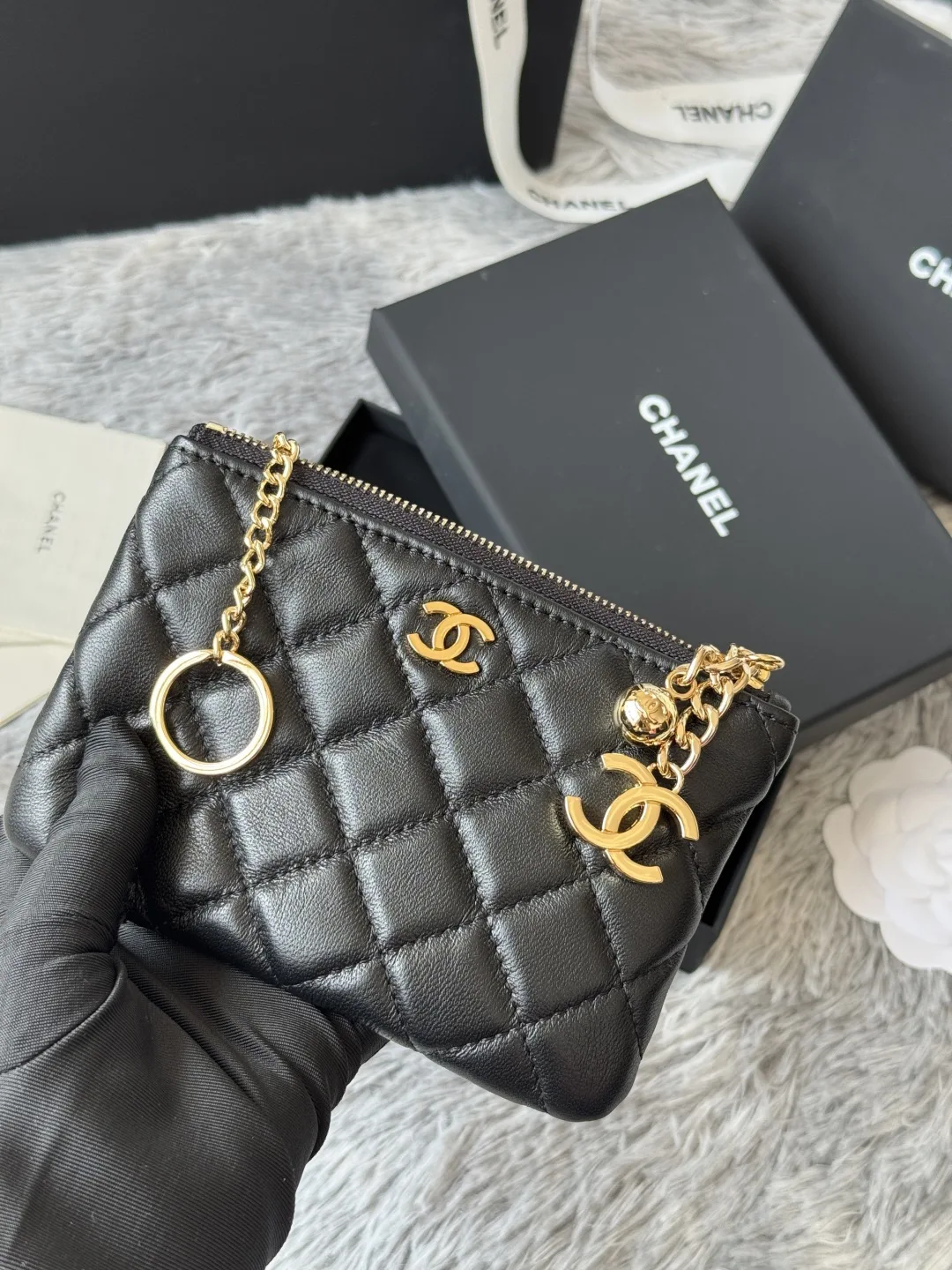 Original CHANEL Pendant Coin Purse Card Holder, Super Cute Zipper Mini Model A50168 - Top-Quality Leather and Hardware, Diamond Pattern. Original Quality, Exquisite Details, Comple..