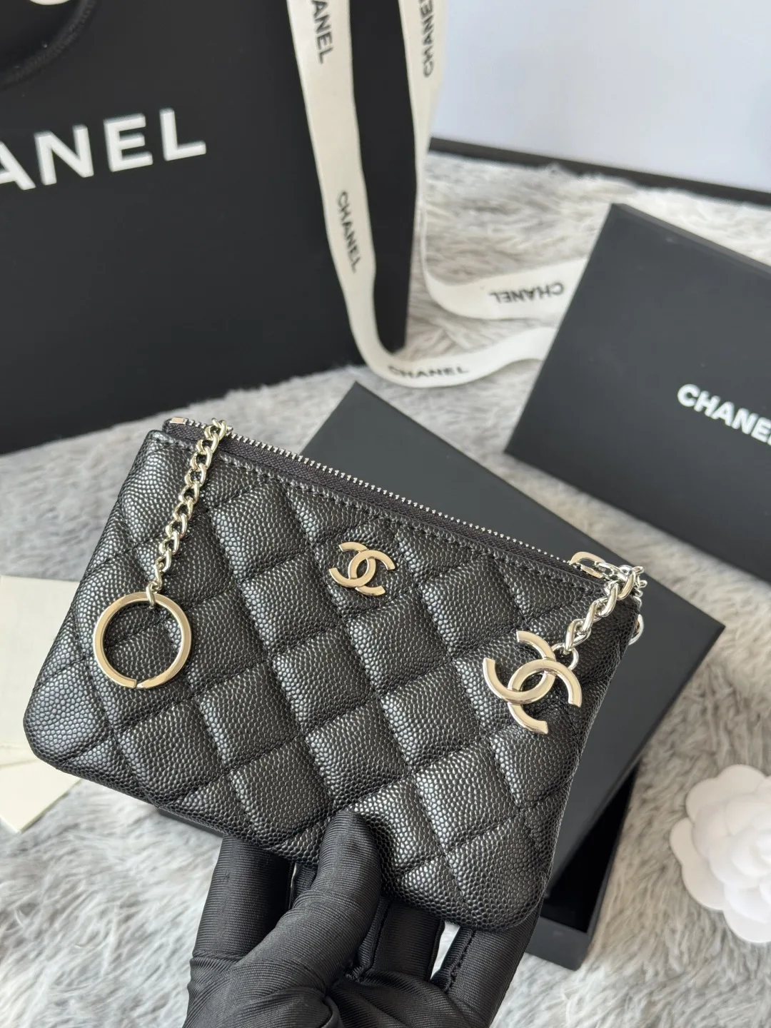 Original CHANEL Pendant Coin Purse Card Holder, Super Cute Zipper Mini Model A50168 - Top Quality Leather Hardware, Diamond Pattern. Original Quality, Exquisite Details, Full Set Packaging. Size: 14-10-1cm. Color: As Pictured.