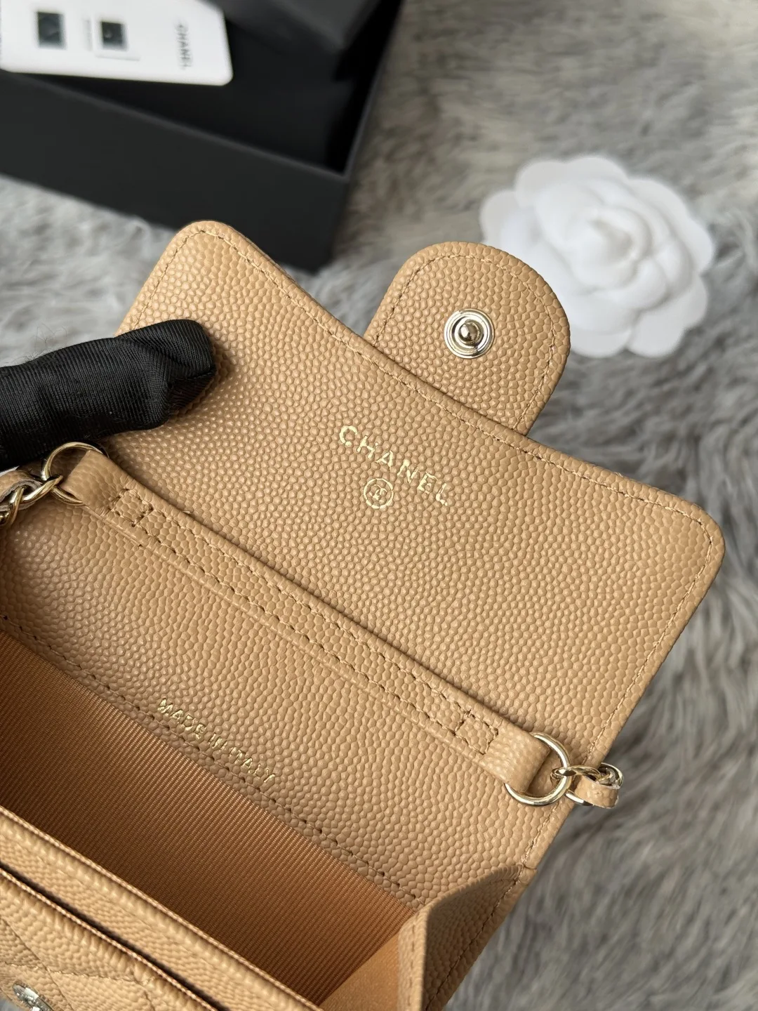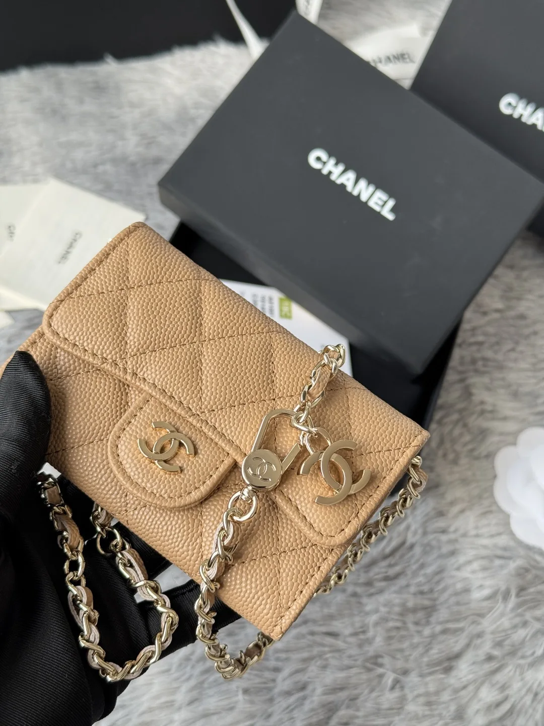 The new Chane waist bag featuring caviar small balls and leather has made a classic debut. You will fall in love at first sight; it s truly amazing . Model number: A81081 - made o..