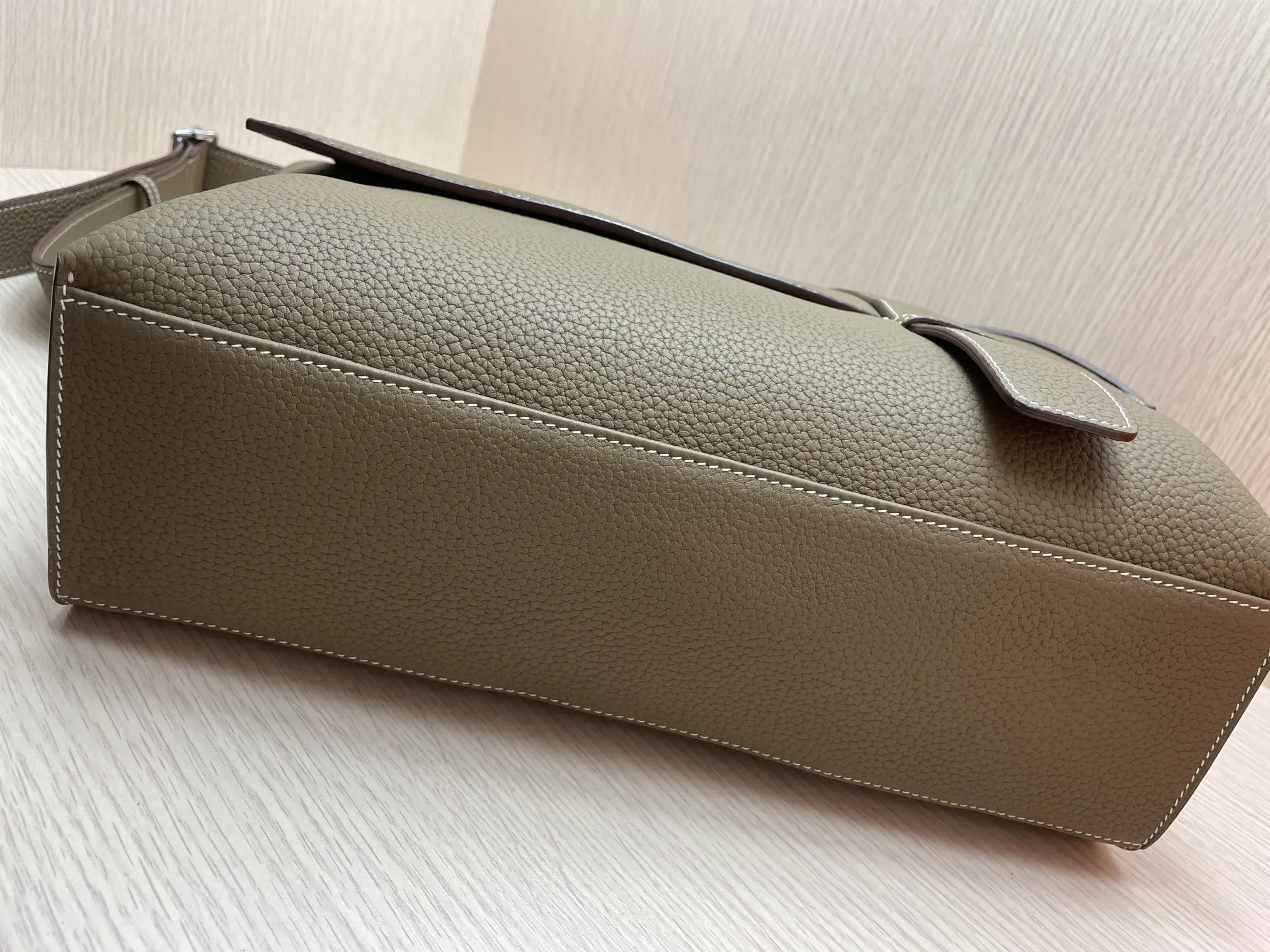 Semi-handmade, New Men s Alfred Messenger Bag, Crossbody Bag 27cm, A-grade Togo Leather Patchwork [Elephant Grey] Silver Hardware, Unisex Style with Synchronized Beeswax Thread Sew..