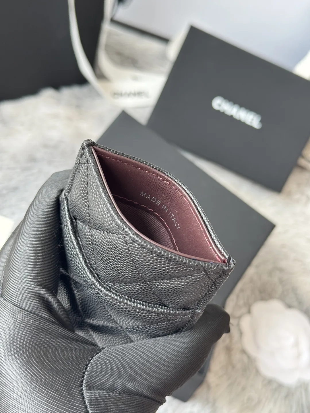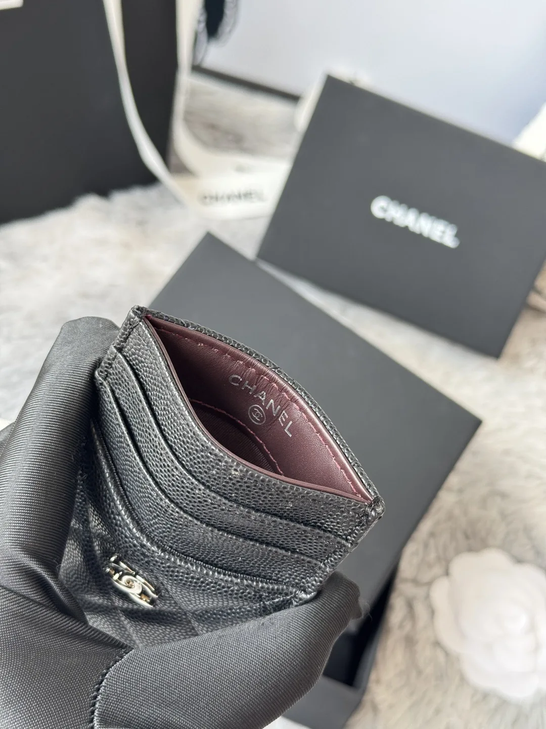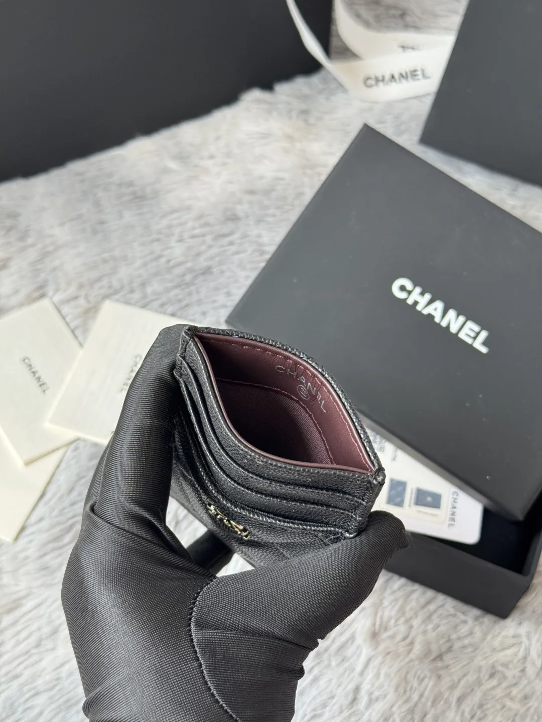 New CHANEL imported calfskin, color as shown in the picture, super mini and cute Can be handheld or placed in a bag for convenient storage, card holder. Original quality, model number: AP0223, size 14*7*1cm.