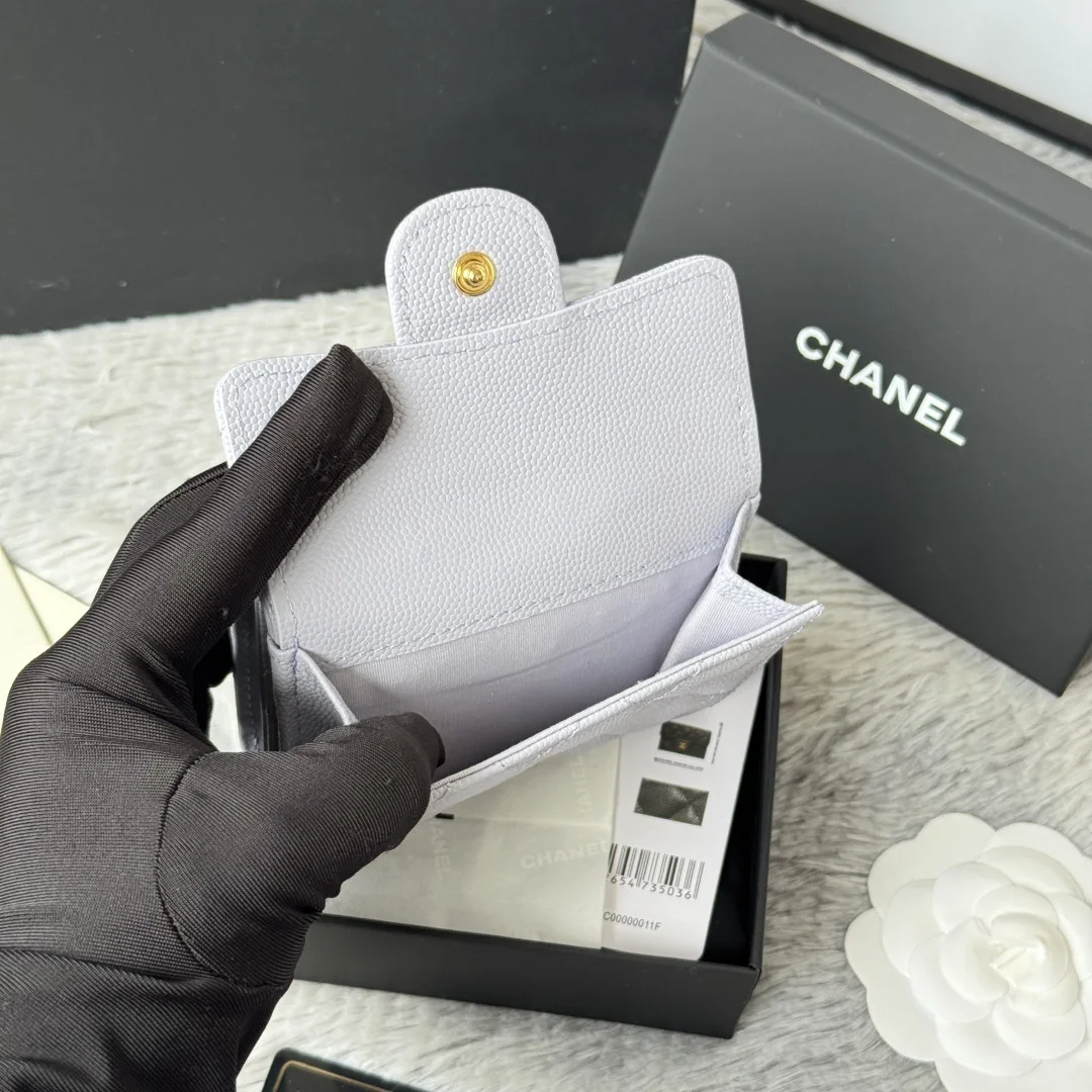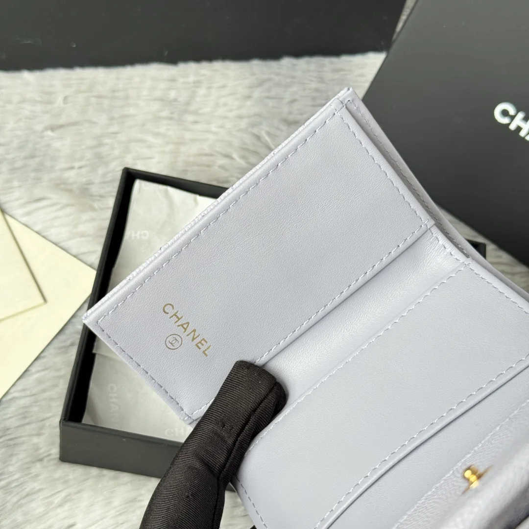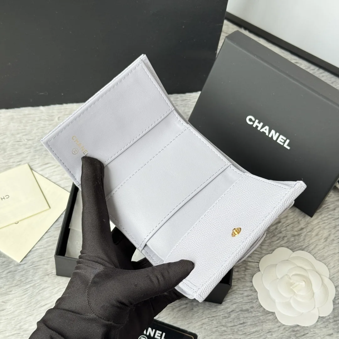 New Arrival Tri-fold Wallet in New Color Fine-Grained Calfskin, a New Tri-fold Wallet. At first glance, it looks like a card holder, but upon opening it, you ll find that the front is indeed a card holder style that can accommodate change and bank cards, while the back is a wallet. It s very novel. This model has become a limited edition in stores, and you may not be able to buy it even if you queue up now. Small bags are in vogue, so you must keep one for yourself. It s super compact and practical, a must-buy! [Yeah] Two types of leather available: small-grained calfskin with classic diamond quilting that will never go out of style. Comes with the latest full set of packaging. Size: 10.5*7.5*3cm. Style number: AP0230 (84401)