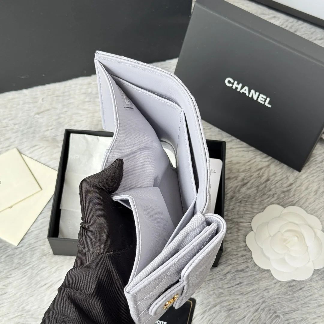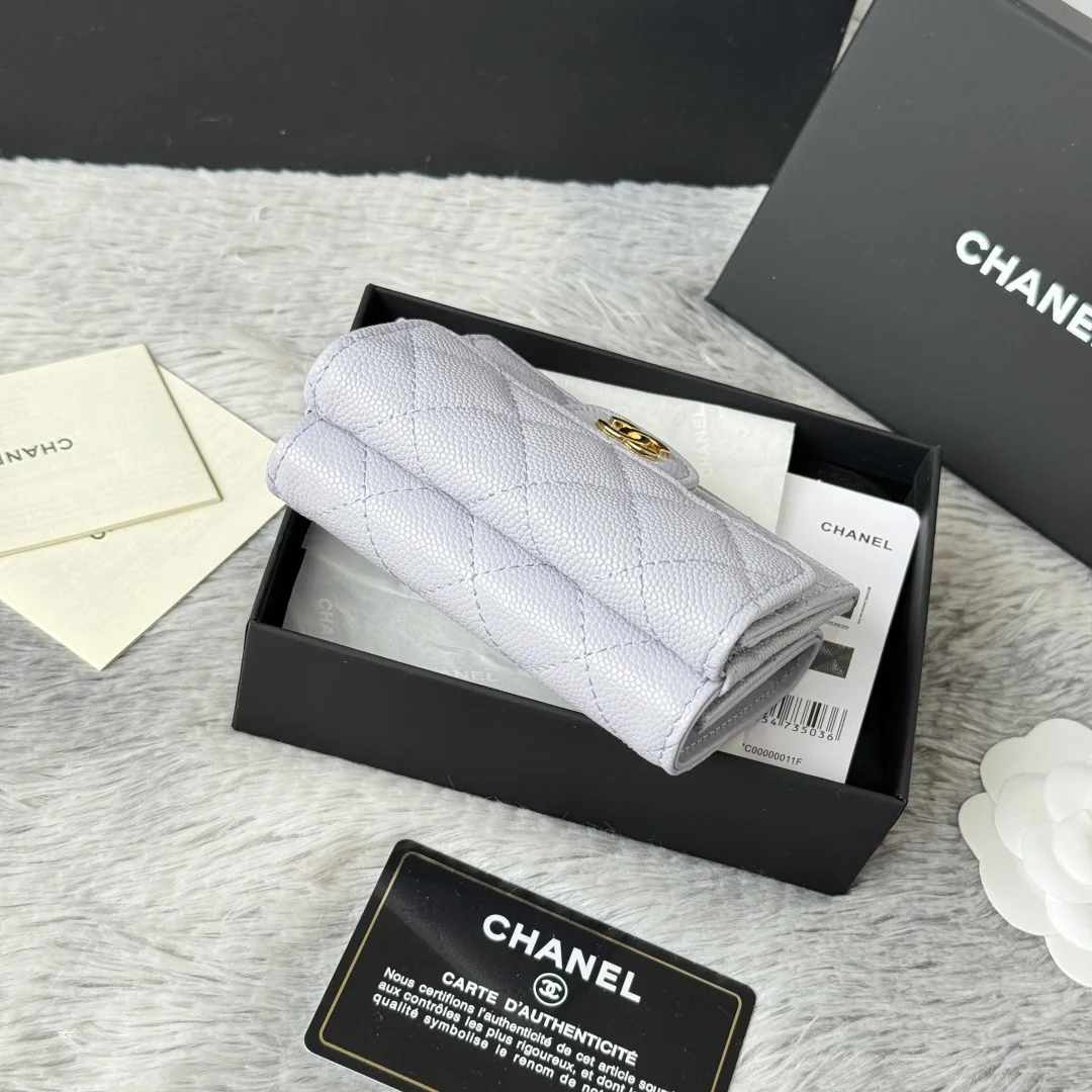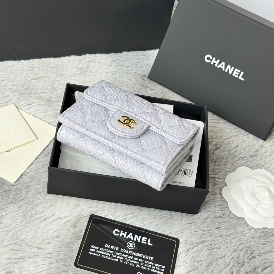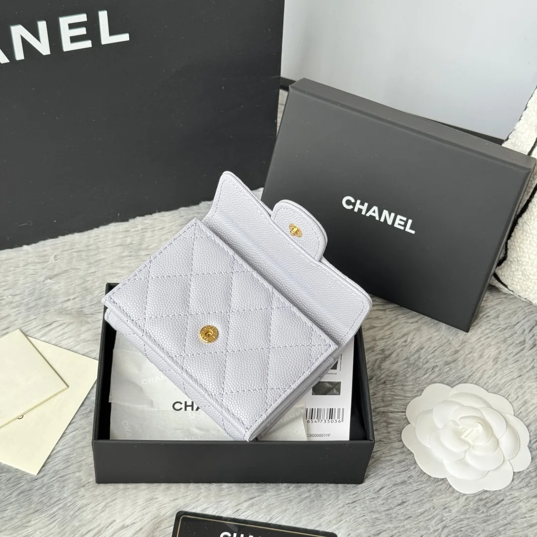 New Arrival Tri-fold Wallet in New Color Fine-Grained Calfskin, a New Tri-fold Wallet. At first glance, it looks like a card holder, but upon opening it, you ll find that the front is indeed a card holder style that can accommodate change and bank cards, while the back is a wallet. It s very novel. This model has become a limited edition in stores, and you may not be able to buy it even if you queue up now. Small bags are in vogue, so you must keep one for yourself. It s super compact and practical, a must-buy! [Yeah] Two types of leather available: small-grained calfskin with classic diamond quilting that will never go out of style. Comes with the latest full set of packaging. Size: 10.5*7.5*3cm. Style number: AP0230 (84401)