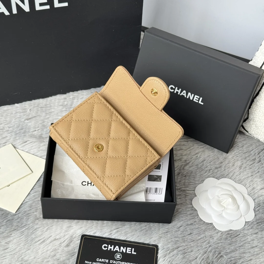 New color of the tri-fold wallet in fine grain cowhide. At first glance, it looks like a cardholder, but upon opening, you ll find that the front resembles a cardholder style that can hold coins and bank cards, while the back is a wallet. It s quite innovative. This model has become a limited edition at the counter, and even if you queue, you may not be able to purchase it. Small bags are in vogue, and this one is a must-keep. It s super compact and practical, definitely a style you need to buy. Two types of leather classic diamond pattern in small grain cowhide that will never go out of style. Comes with the latest complete packaging. Size: 10.5*7.5*3cm. Model number: AP0230 (84401).