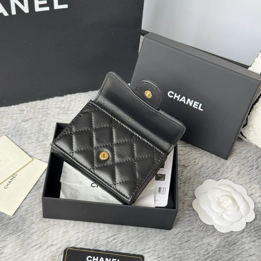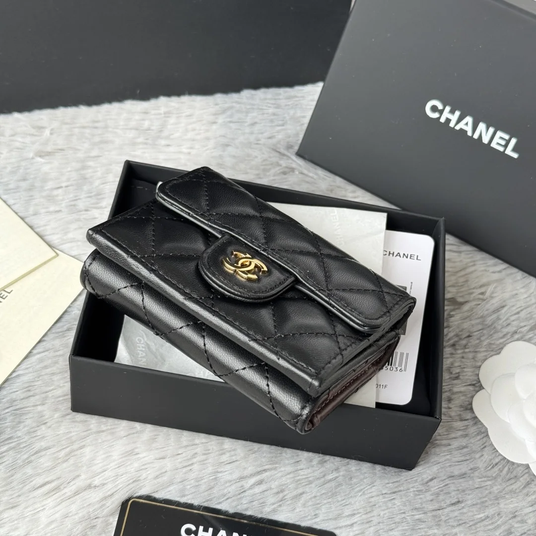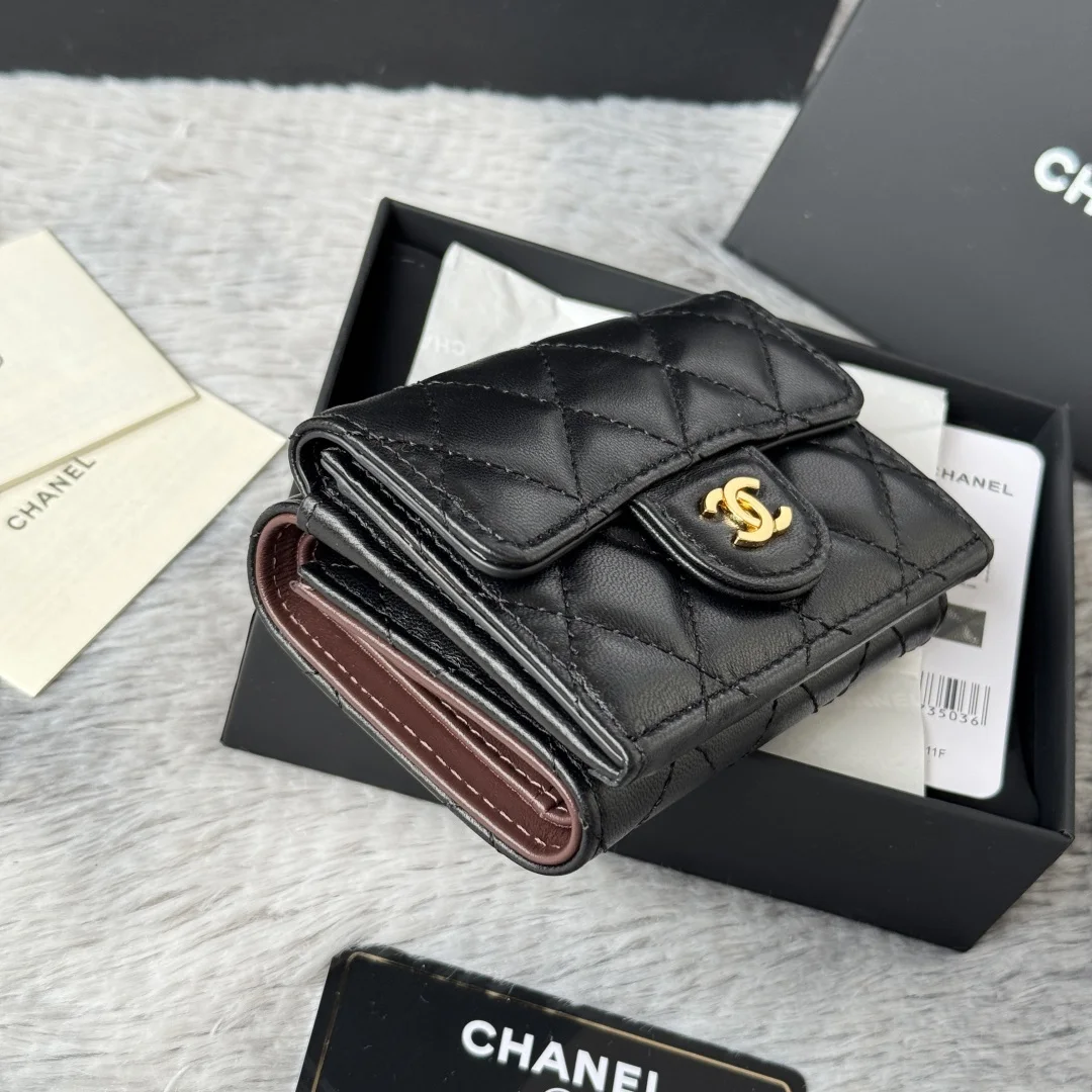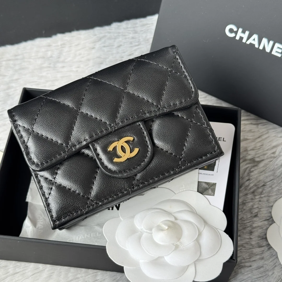First release tri-fold wallet, new lambskin tri-fold wallet, card holder. At first glance, it looks like a card holder, but when you open it, you realize that the front is a card holder style that can hold change and bank cards, while the back is a wallet. It s very novel. This model has become a limited edition in stores, and you may not be able to buy it even if you queue up now. Small bags are in vogue, so you must keep one for yourself. It s super compact and practical, a must-buy item [Yeah]. Two kinds of leather: classic diamond pattern lambskin that will never go out of style. Comes with the latest full set of packaging. Size: 10.5*7.5*3cm. Number: AP0230 (84401)