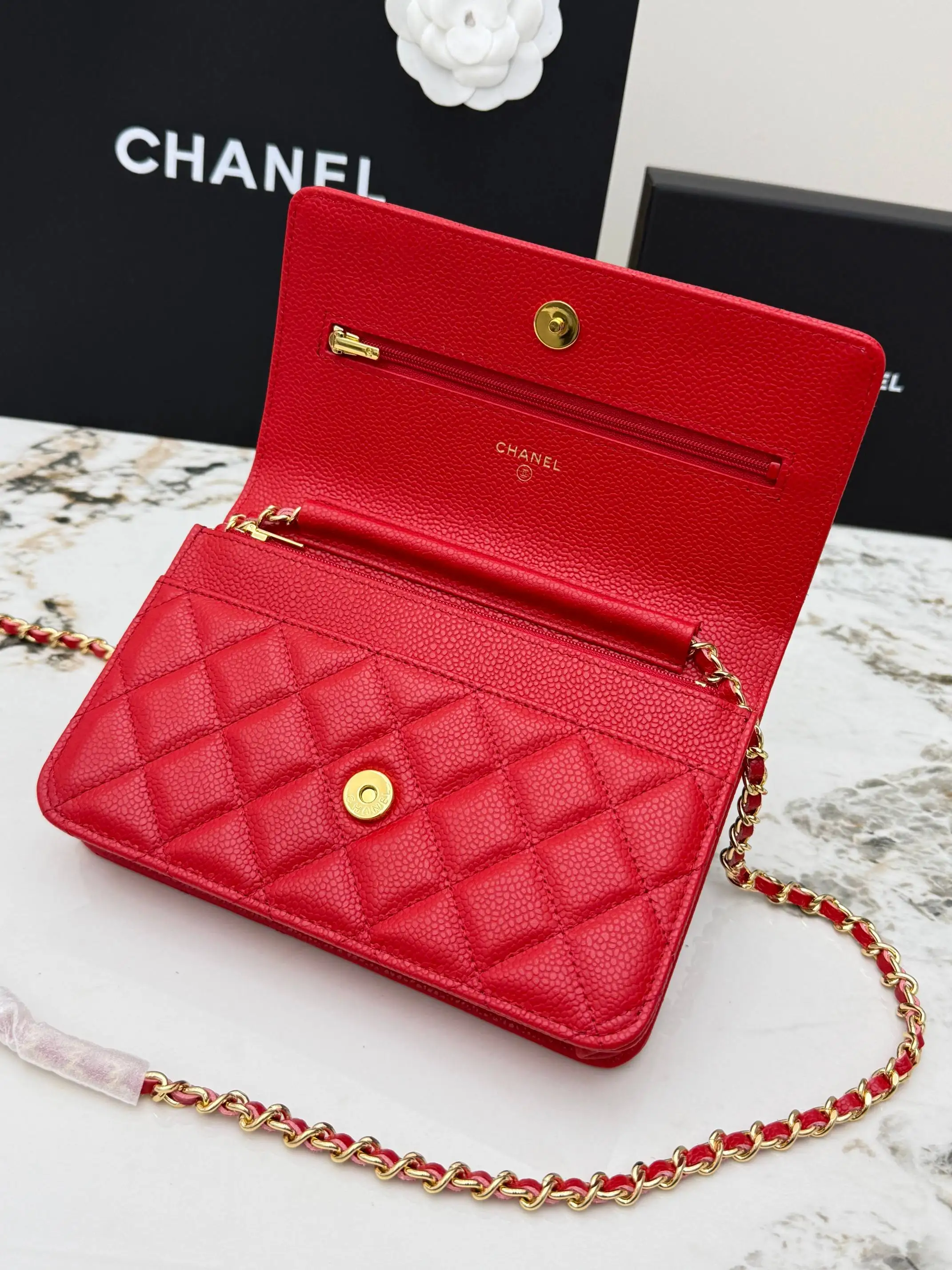 [Imported Original Leather ] [With Box] CHANEL [Rose] Fortune Bag (Large Grain Gold Buckle) Top Quality [Coffee] New Arrival, Full Steel 24K Hardware Chain, Upgraded Version Magnetic Buckle 𝑊𝑂𝐶 Embossed Caviar Imported Calfskin Classic Upgraded New Magnetic Buckle for More Convenience 𝑤𝑒𝑙𝑙𝑒𝑡 𝑜𝑛 𝑐ℎ𝑎𝑖𝑛 Clutch Bag Can be Crossbody or Shoulder Bag, Extremely Practical, Looks Fantastic When Worn, Ladies Hurry Up, Also Known as Fortune Bag, Such a Fun Design Will Definitely Bring You Good Luck 〰