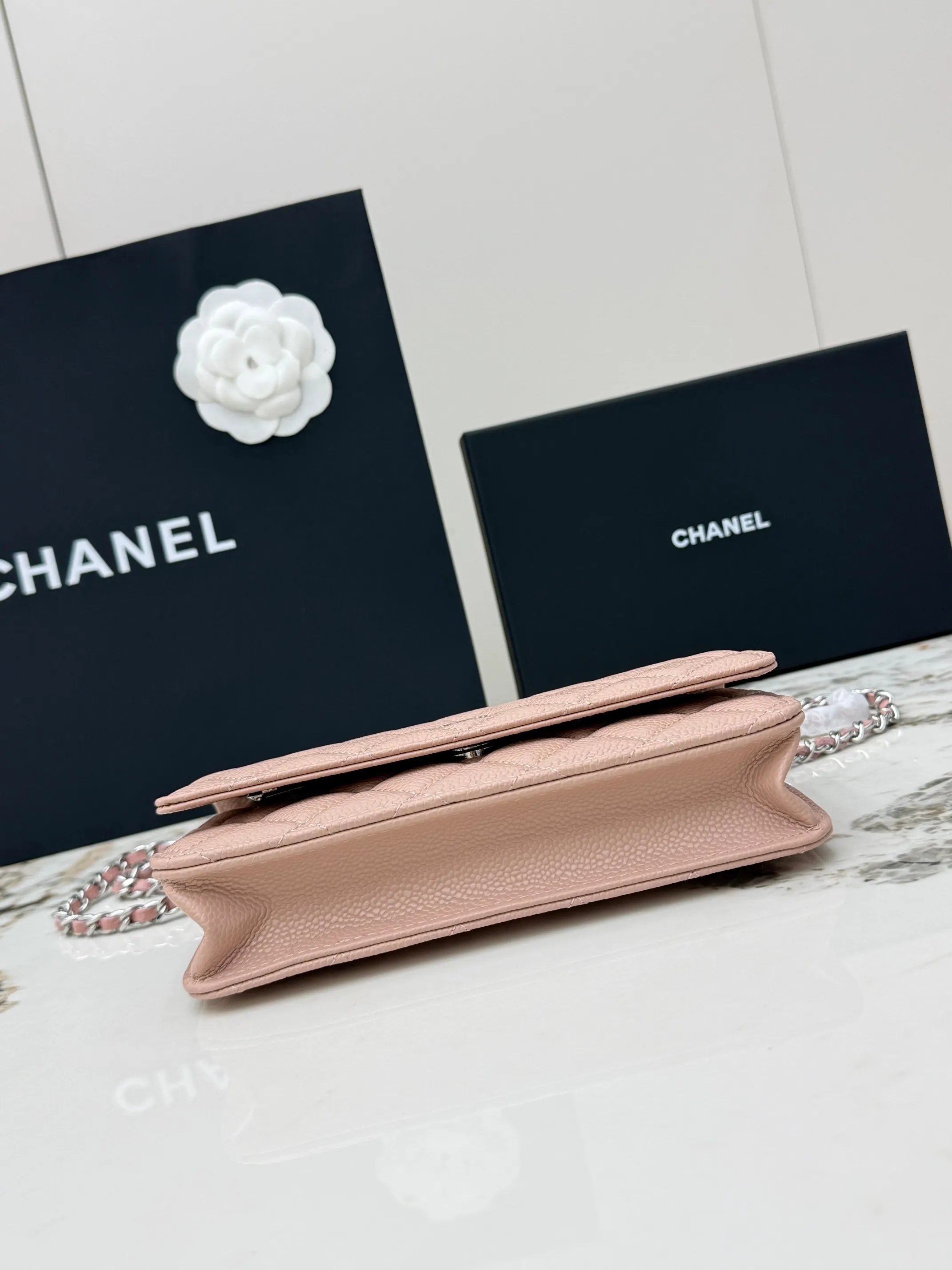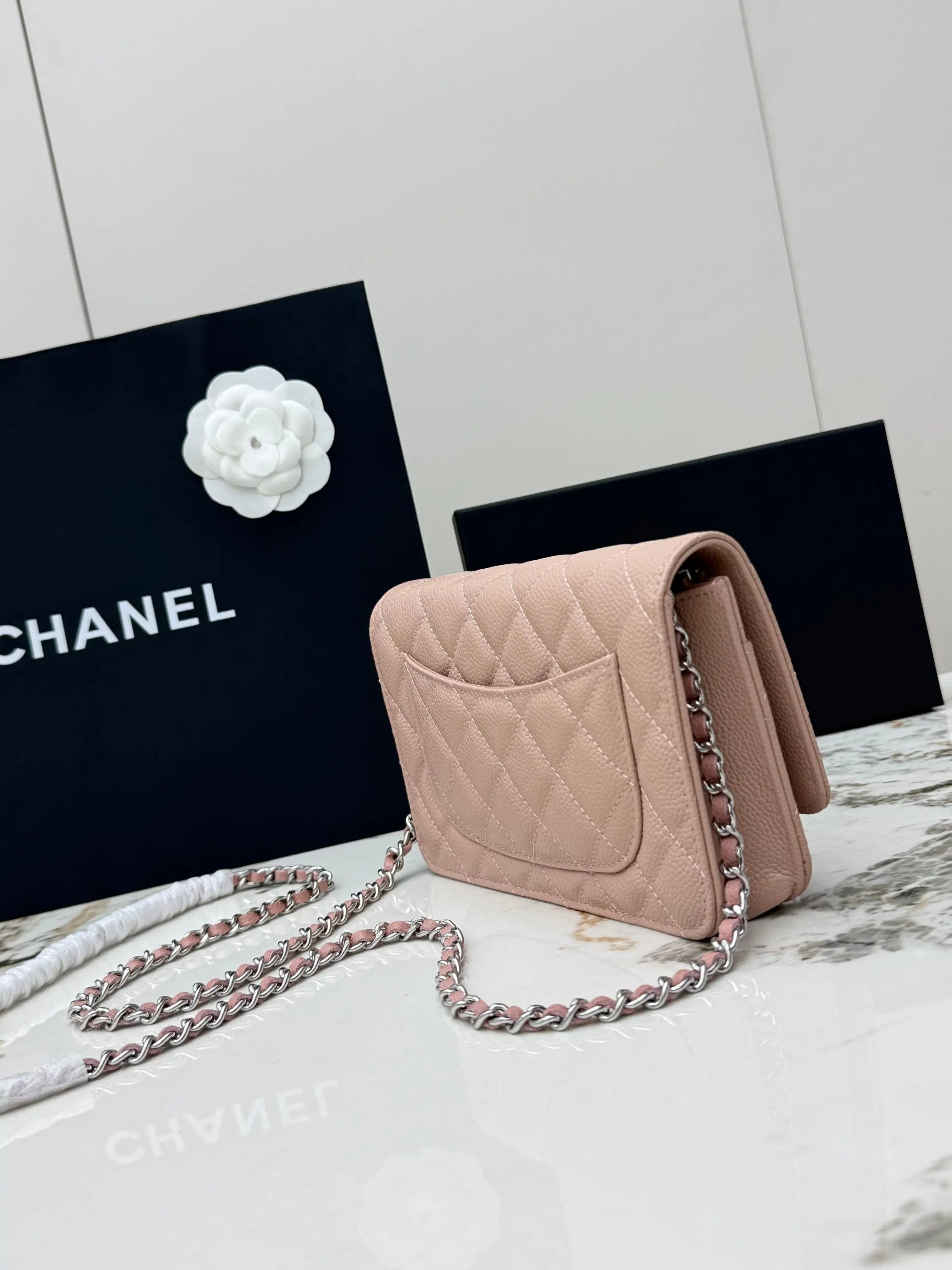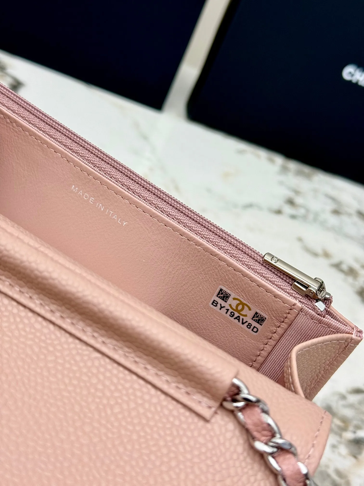 [Imported Original Leather ] [With Box] CHANEL [Rose] Prosperity Bag (Large Ball Grain Silver Clasp) Top Quality [Coffee] New Arrival, Full Steel 24K Hardware Chain, Counterpart Upgrade Version Magnetic Buckle 𝑊𝑂𝐶 Embossed Caviar Imported Calfskin Classic Upgrade Brand New Magnetic Buckle More Convenient and User-Friendly 𝑤𝑒𝑙𝑙𝑒𝑡 𝑜𝑛 𝑐ℎ𝑎𝑖𝑛 Wallet on Chain, Can be Worn Crossbody or Shoulder Bag, Extremely Practical, Great On-Body Effect, Ladies Hurry Up, Also Known as the Prosperity Bag, Such a Fun Style, It Will Surely Bring You Good Luck 〰 Model: AP0250. Size: Length 19x Width 3x Height 13cm!