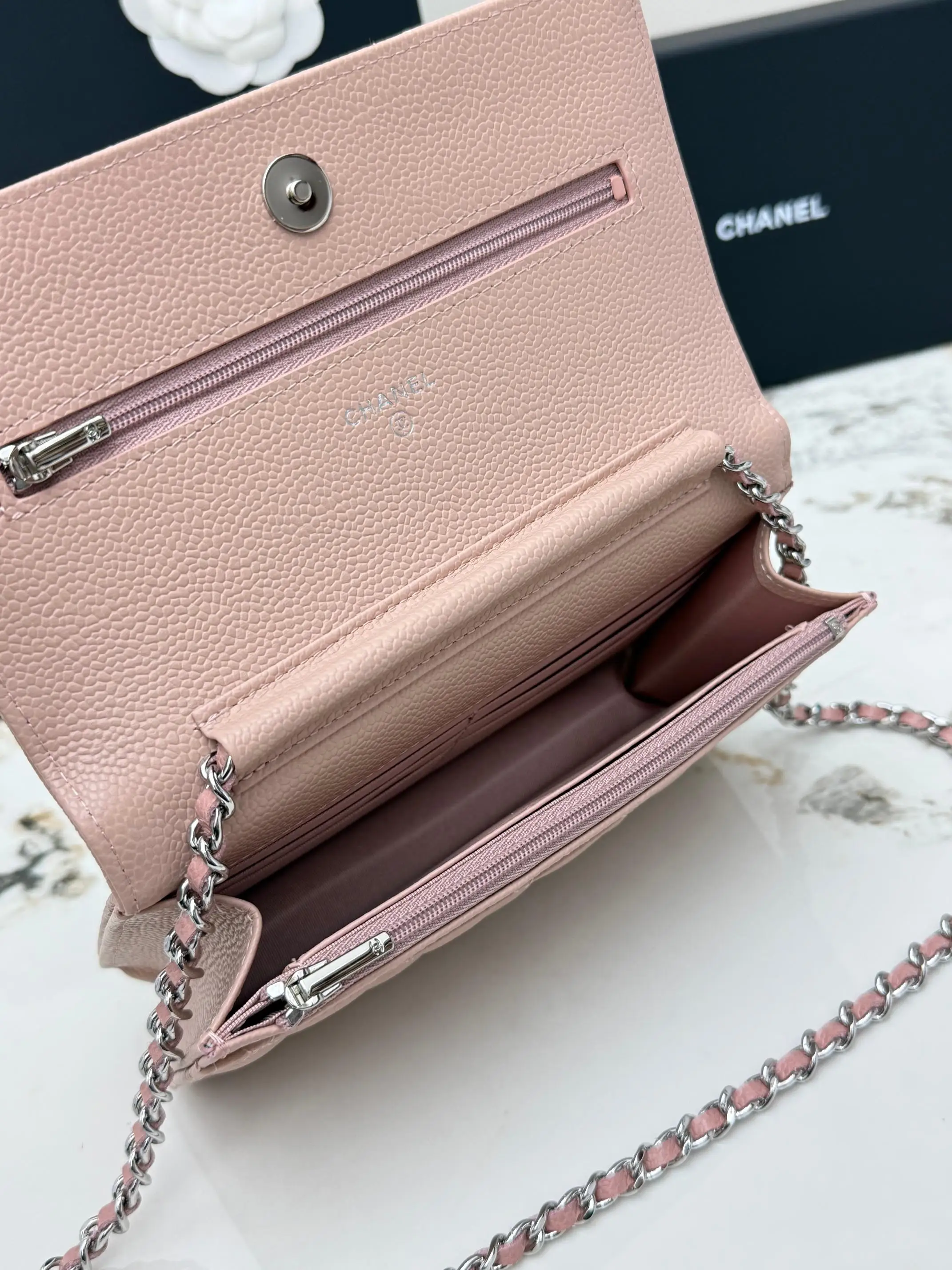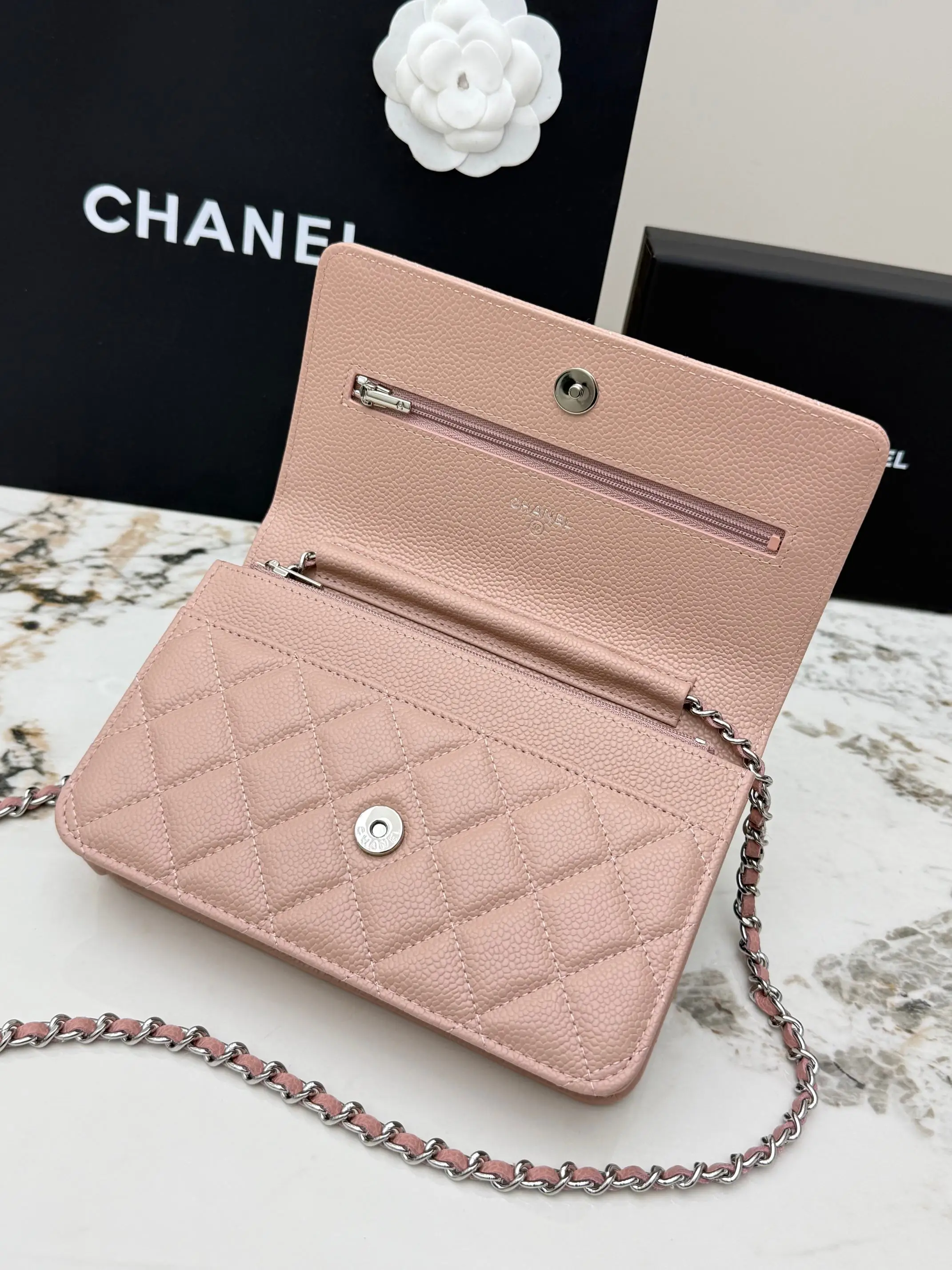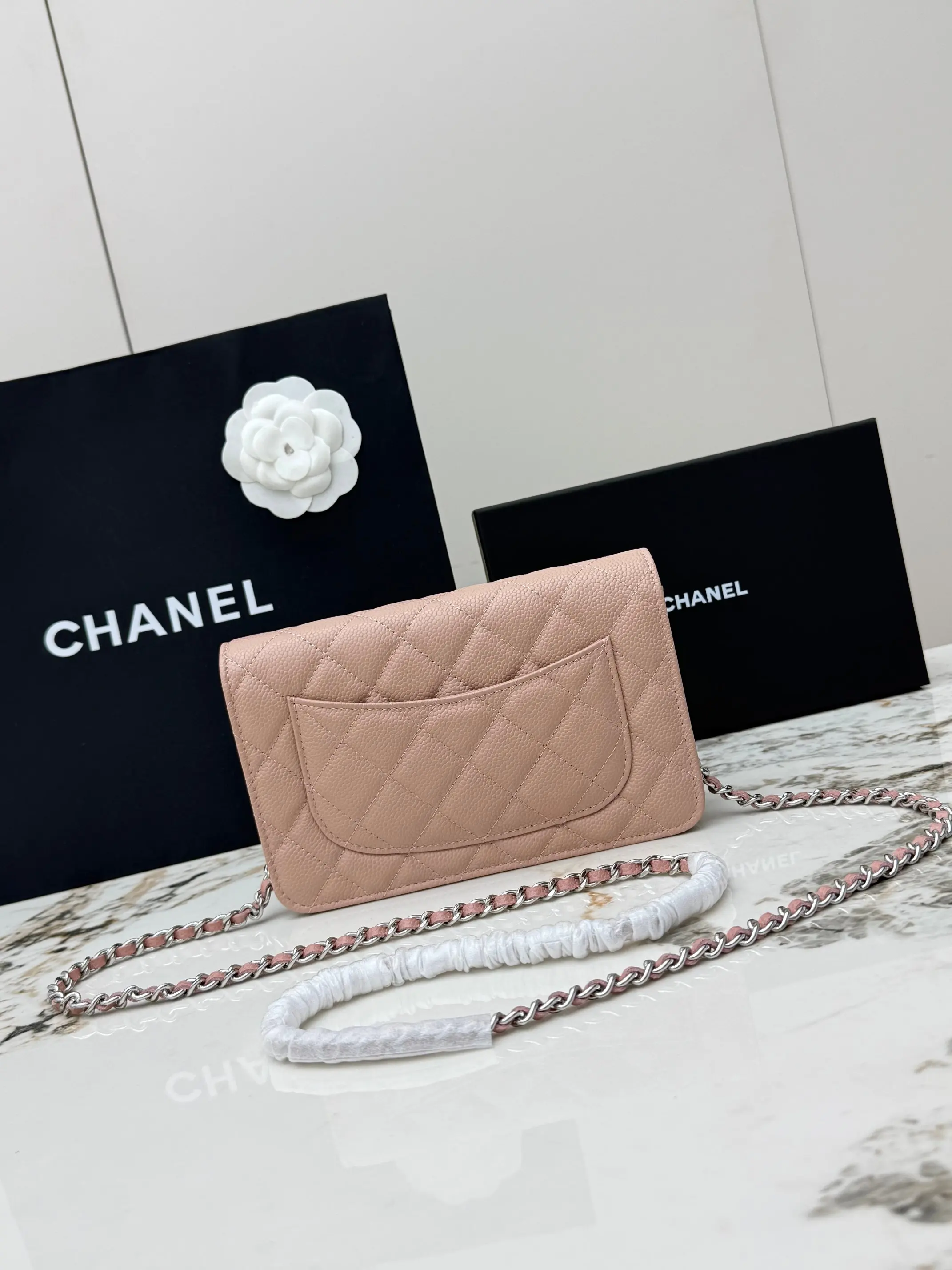 [Imported Original Leather ] [With Box] CHANEL [Rose] Prosperity Bag (Large Ball Grain Silver Clasp) Top Quality [Coffee] New Arrival, Full Steel 24K Hardware Chain, Counterpart Upgrade Version Magnetic Buckle 𝑊𝑂𝐶 Embossed Caviar Imported Calfskin Classic Upgrade Brand New Magnetic Buckle More Convenient and User-Friendly 𝑤𝑒𝑙𝑙𝑒𝑡 𝑜𝑛 𝑐ℎ𝑎𝑖𝑛 Wallet on Chain, Can be Worn Crossbody or Shoulder Bag, Extremely Practical, Great On-Body Effect, Ladies Hurry Up, Also Known as the Prosperity Bag, Such a Fun Style, It Will Surely Bring You Good Luck 〰 Model: AP0250. Size: Length 19x Width 3x Height 13cm!