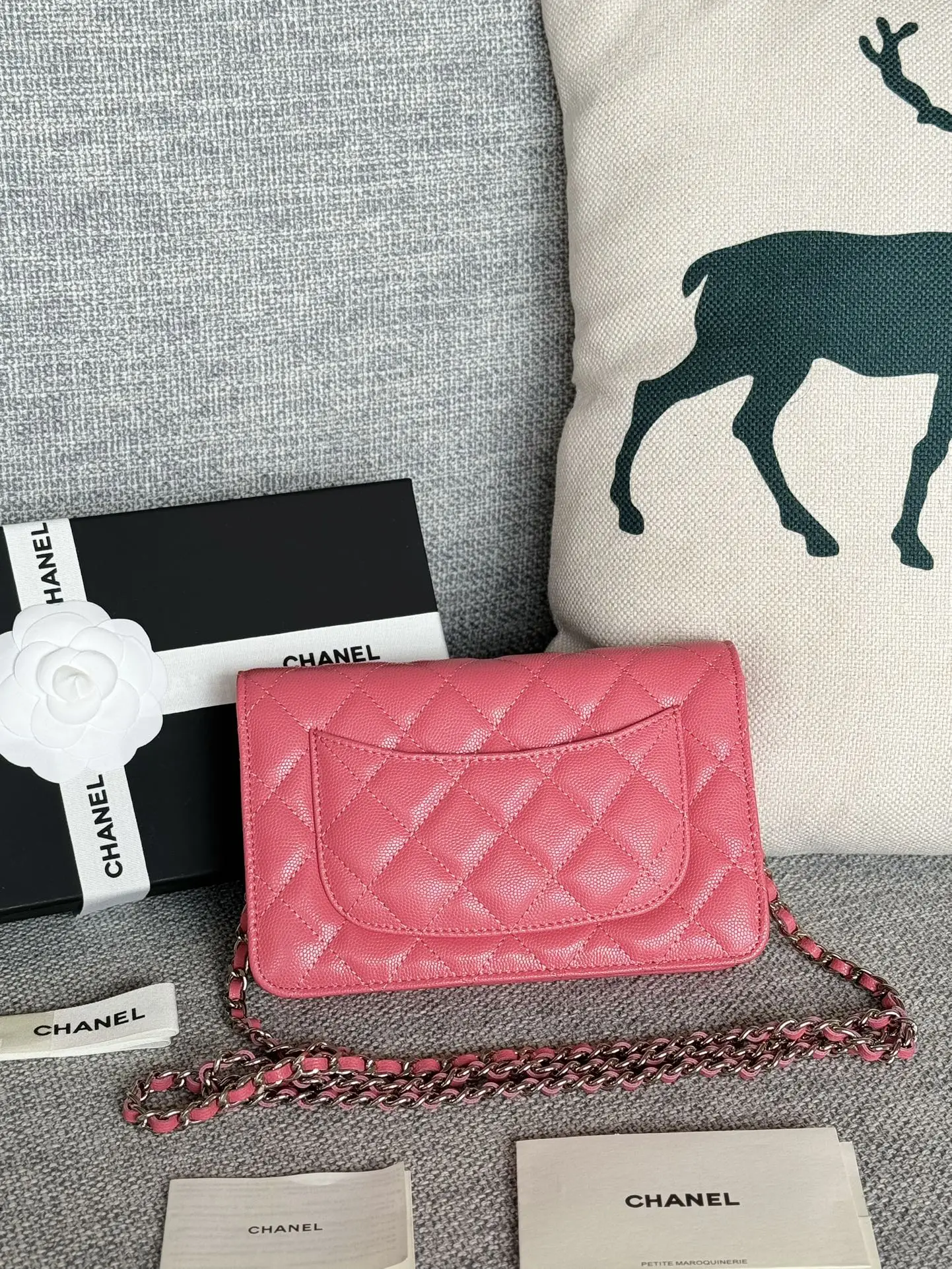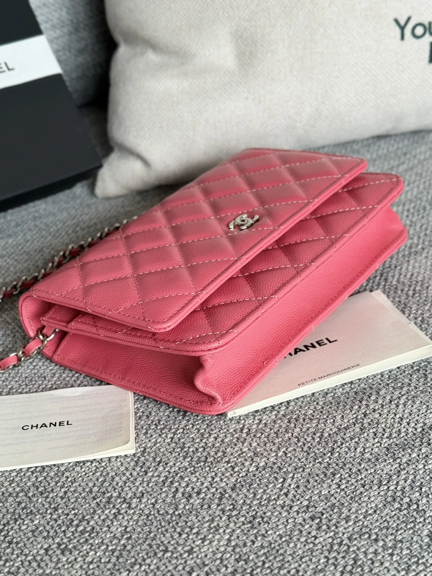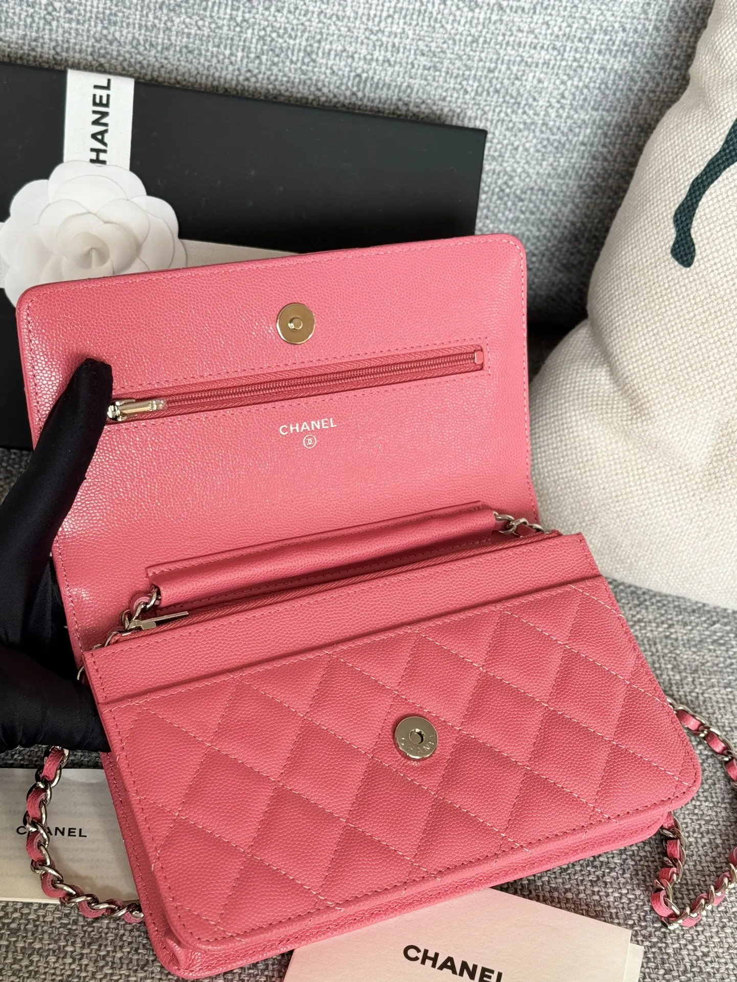 Caviar Model: AP0250 Caviar Channel Entry Classic Woc (Magnetic Closure) Imported Cowhide Caviar Grain Embossed Calfskin Classic Diamond Pattern with Metal Chain Design The appeara..