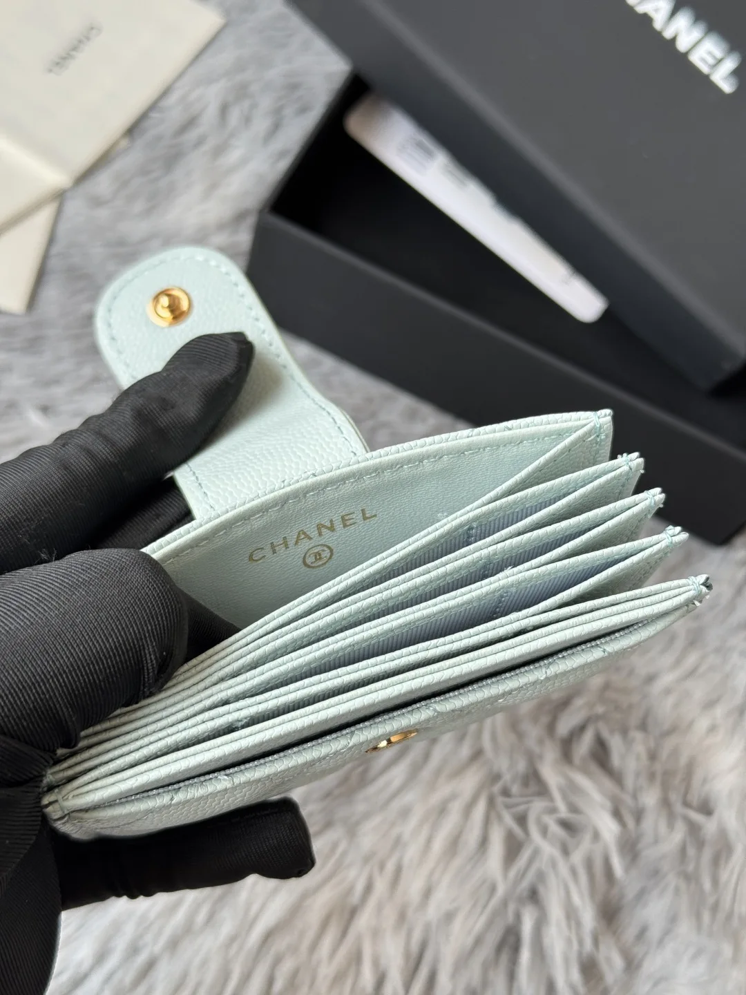 CHANEL Accordion Card Holder. Unlike ordinary card holders, this card holder features an accordion design, allowing you to easily see each card without having to pry it out. The ca..