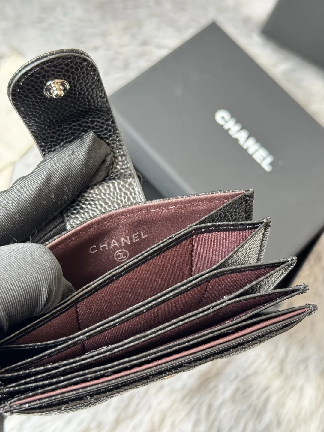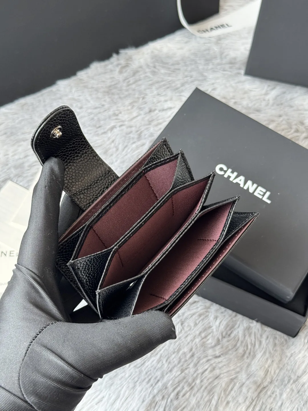 CHANEL Accordion Card Holder [Color] This card holder features a unique accordion design [Love], making it easy to see and access each card without struggling to remove them. The c..