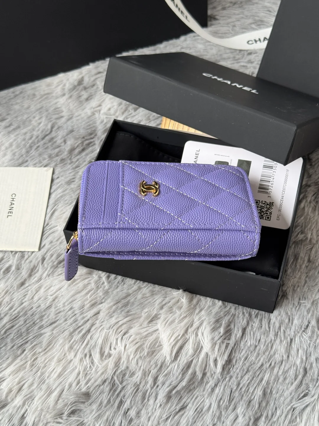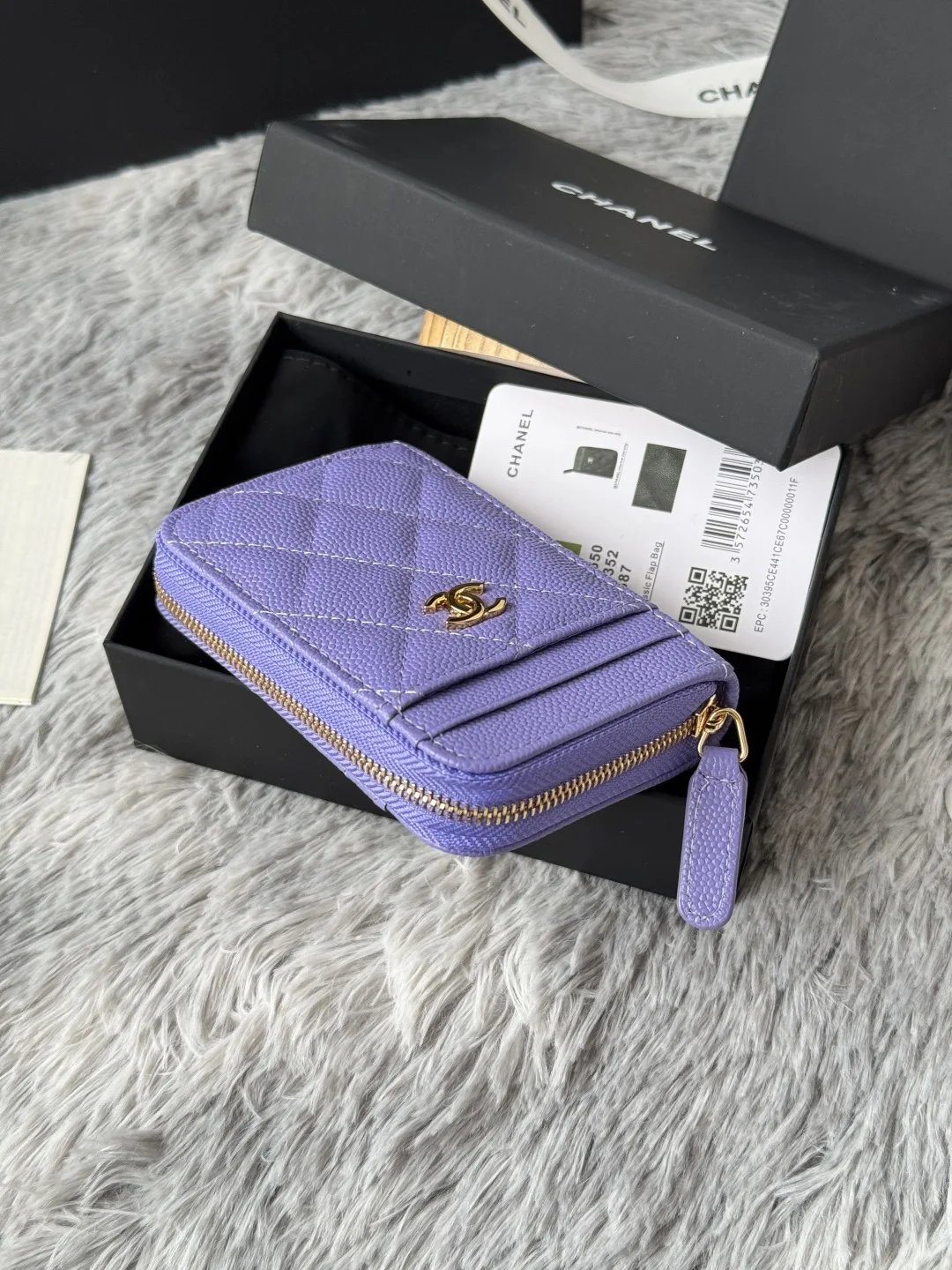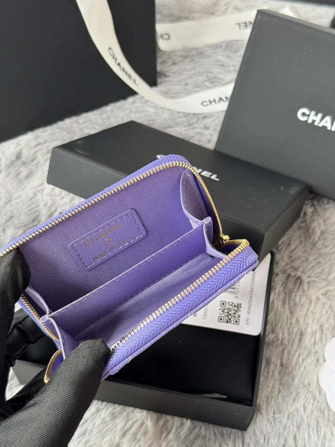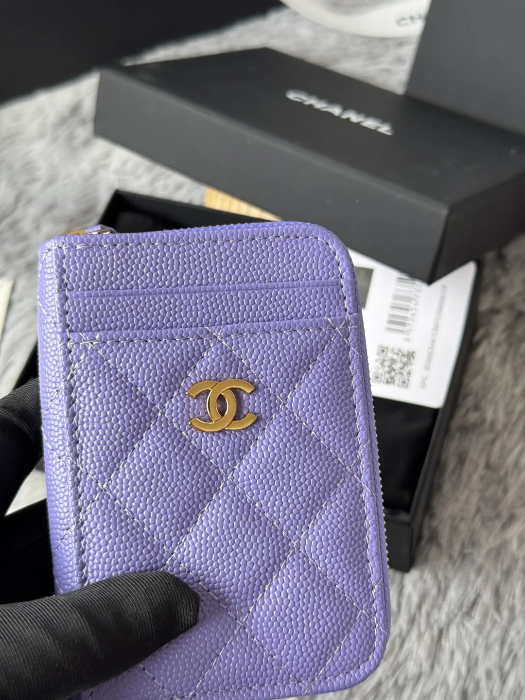 Chanel - New Small Zip Coin Purse. This small single-zip card holder features added card slots on both the front and back, catering to those with extensive card needs! Style code: ..