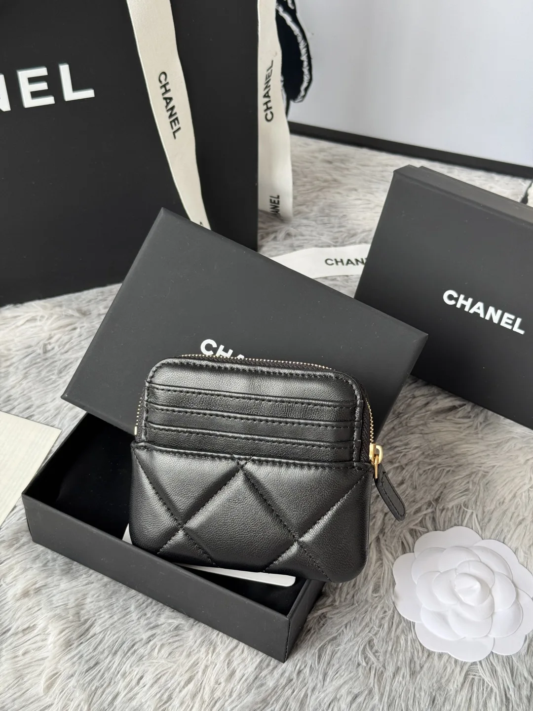 Chanel new arrivals, a very practical coin purse. Made of lambskin, it features a minimalist, elegant, petite, and adorable mini design. Its simply stunning to hold. Nice with mult..