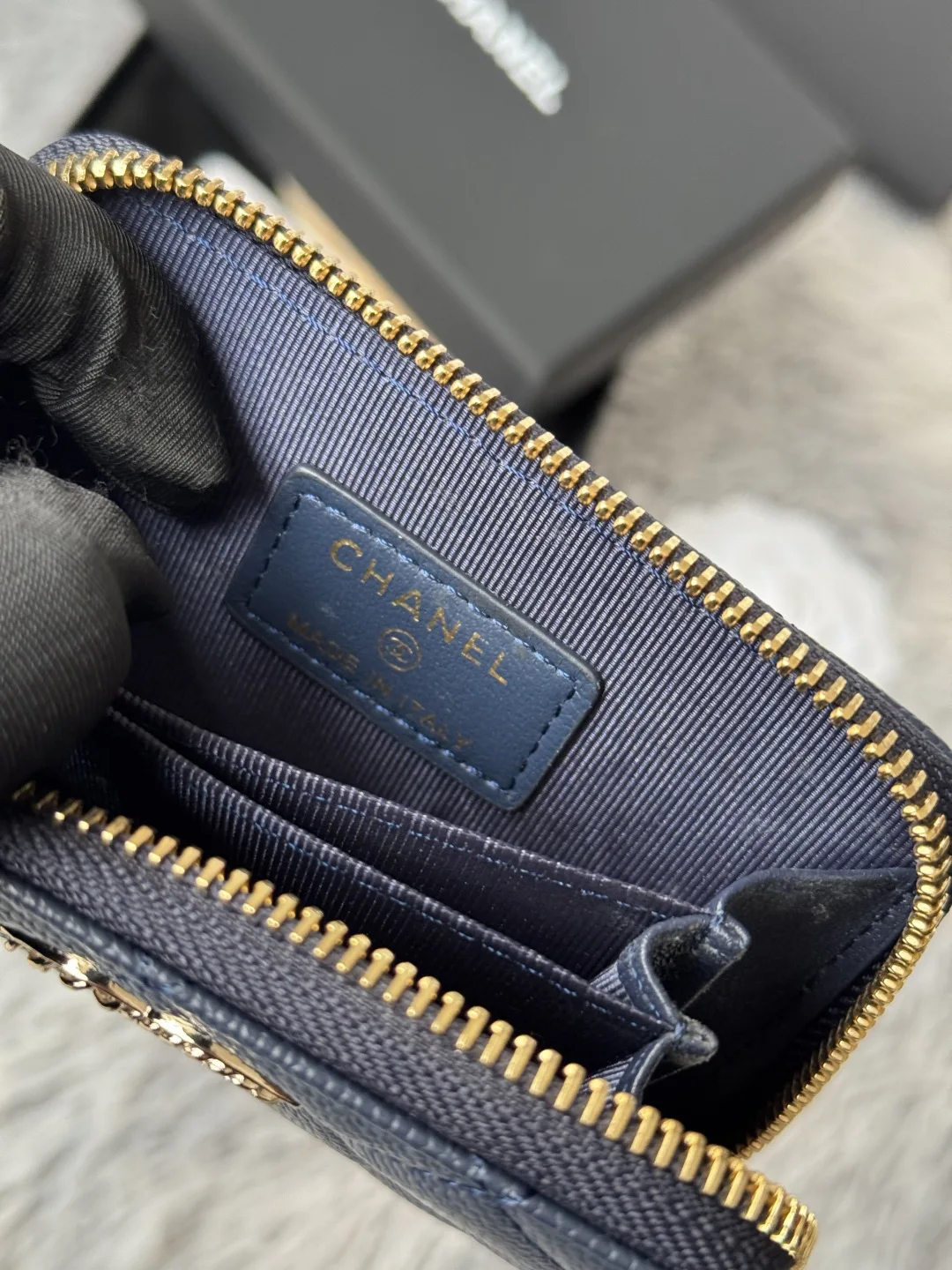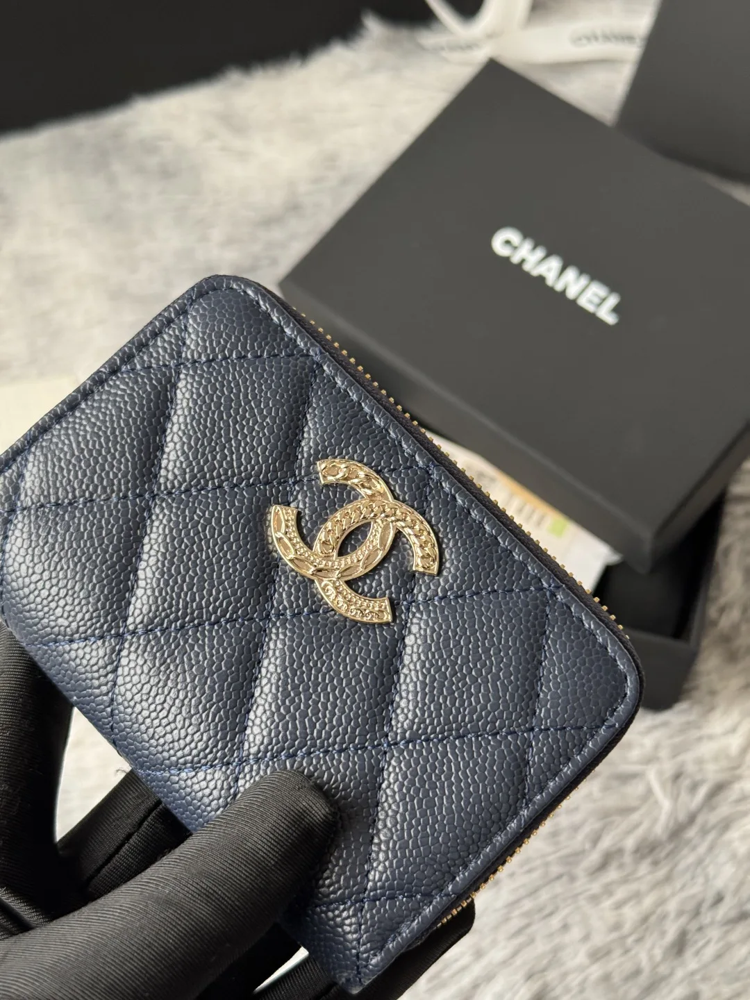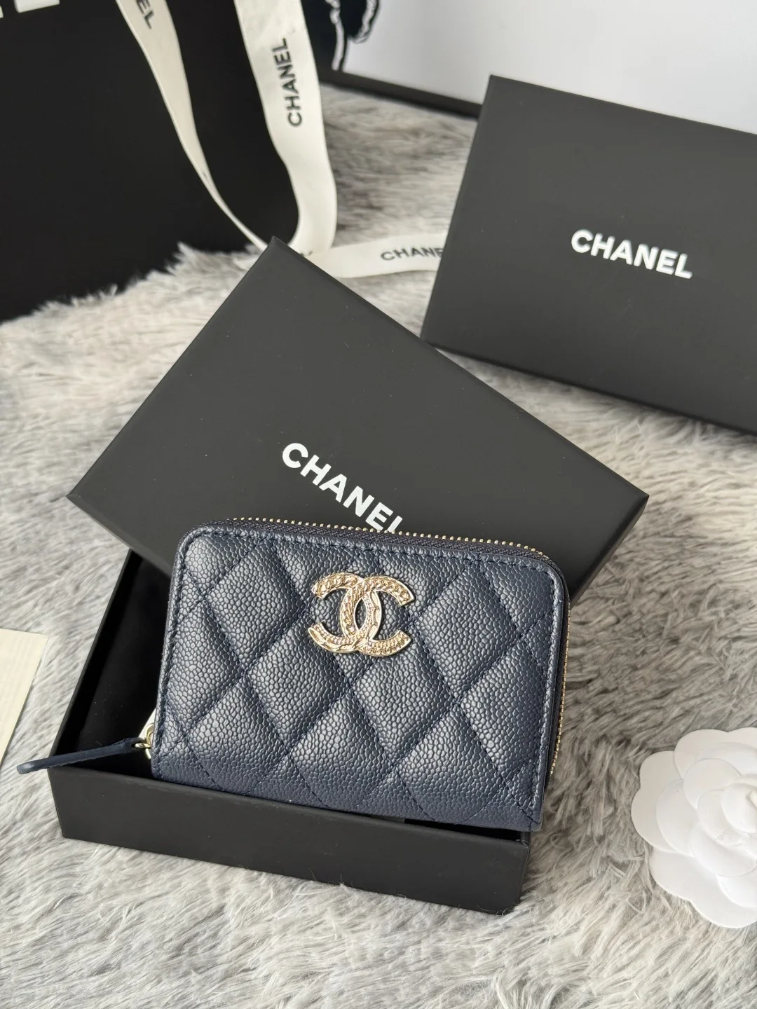 Model 3045 CHANEL 22k embossed logo large double C hardware, fresh design sense, with exquisite replica flavor, very beautiful, official website 2023 latest card holder made of caviar textured cowhide, scratch-resistant, excellent gloss, carrying a large bag in summer is cumbersome, suitable for placing inside a mini bag, convenient for pocket storage The bag opening has a zipper, super practical, and the interior can also hold cards.