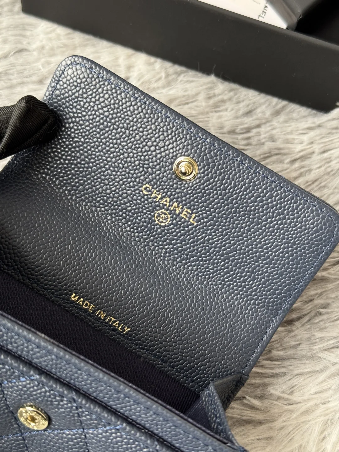 Model AP3047 CHANEL 22k embossed hardware, new double C large logo with delicate vintage feel, very beautiful. Official website 2023 latest card holder, caviar medium-grained calfskin, scratch-resistant, excellent gloss, can hold about 10 cards, one card can be placed in the flap card slot, and cards small change can also be placed in the middle. Too troublesome to carry a large bag in summer, suitable for placing in a mini bag, and convenient to put in a pocket