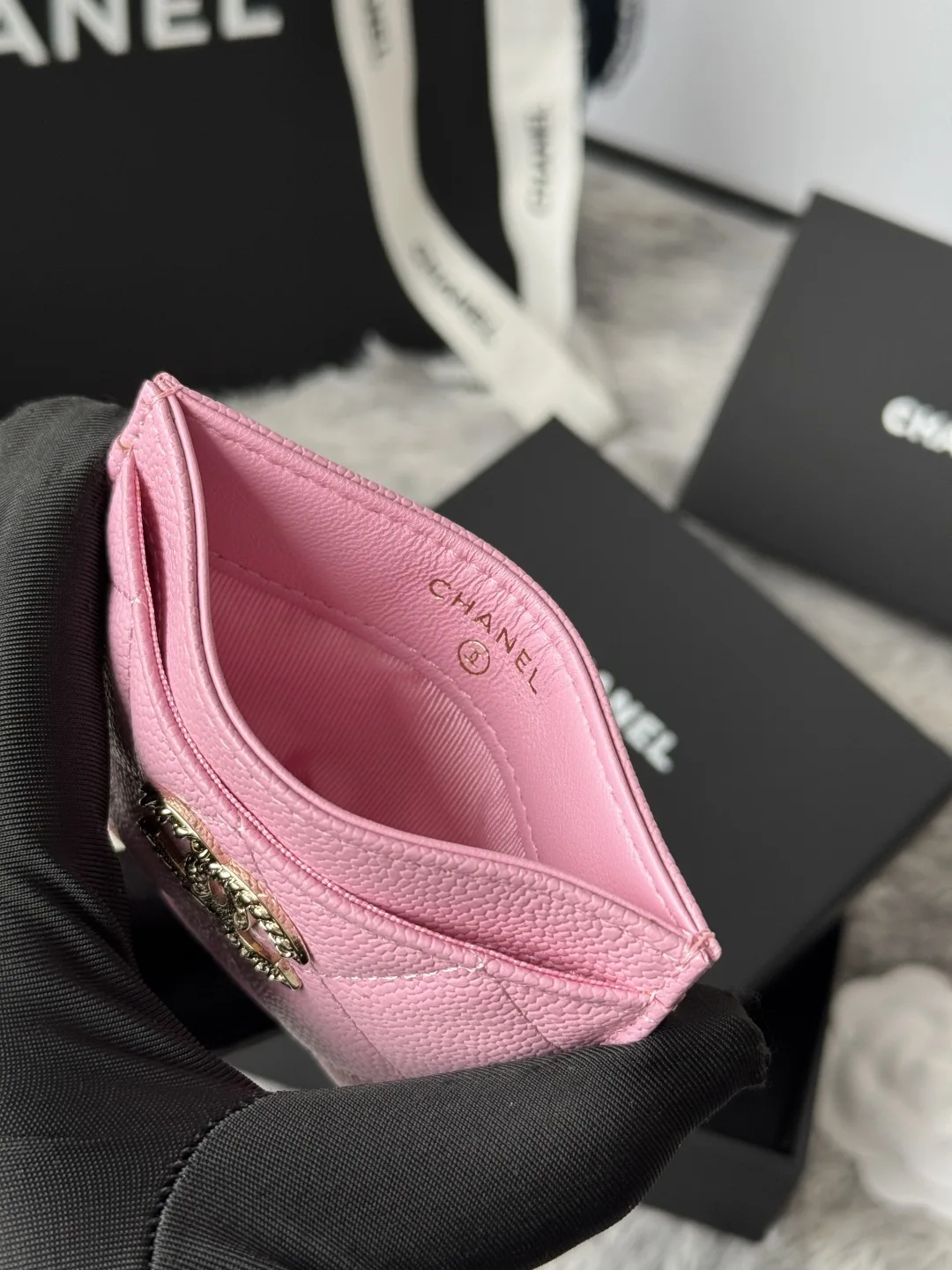 Model AP3048 CHANEL 22k embossed logo large double C hardware, official website 2023 latest new card holder, caviar textured cowhide scratch-resistant, excellent gloss, 3 card slot..
