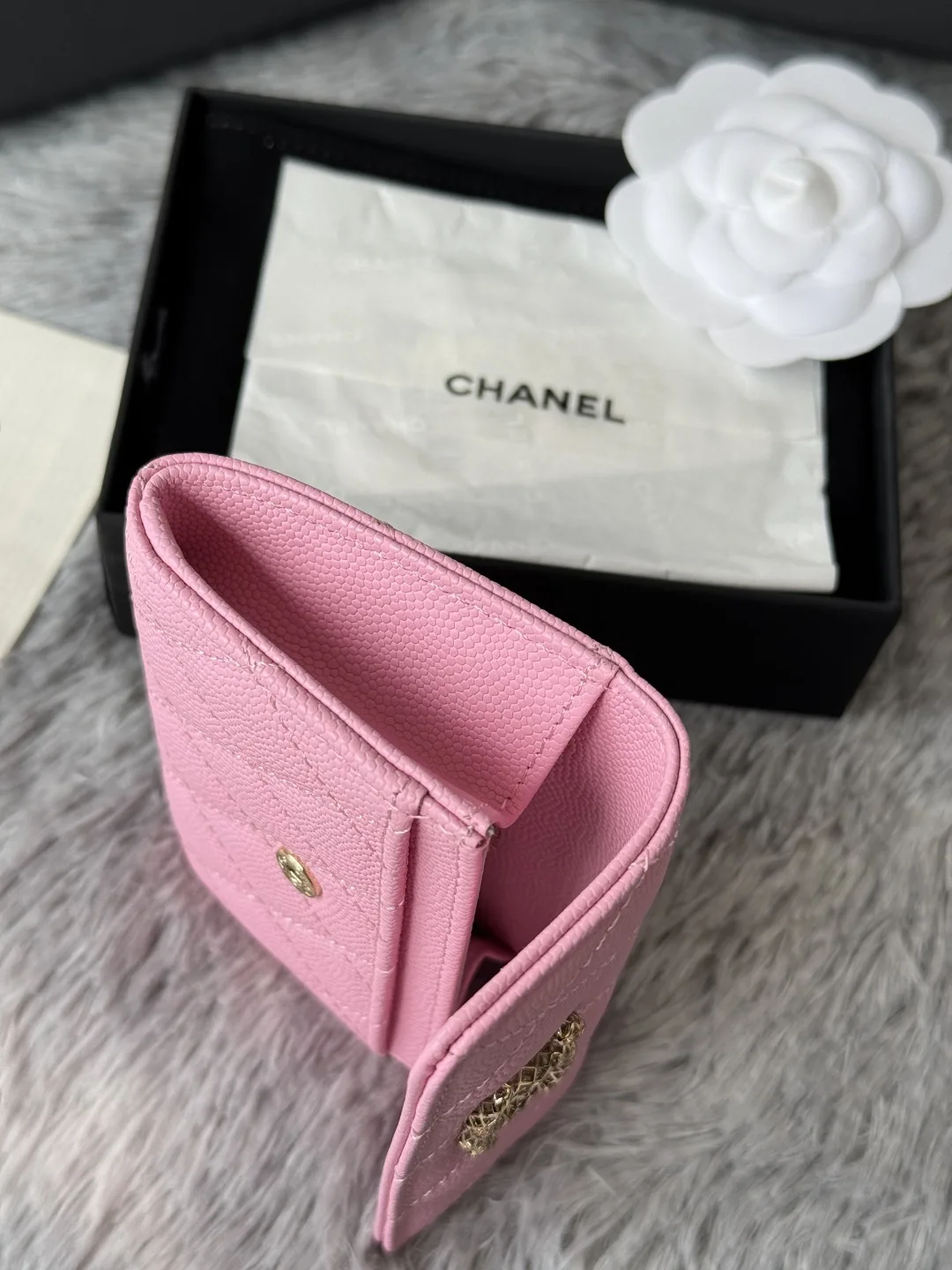 The latest gold hardware with ball pattern hollow design from CHANEL, exclusive real shots This card holder has a large capacity, able to hold around a thousand yuan for a hundr..