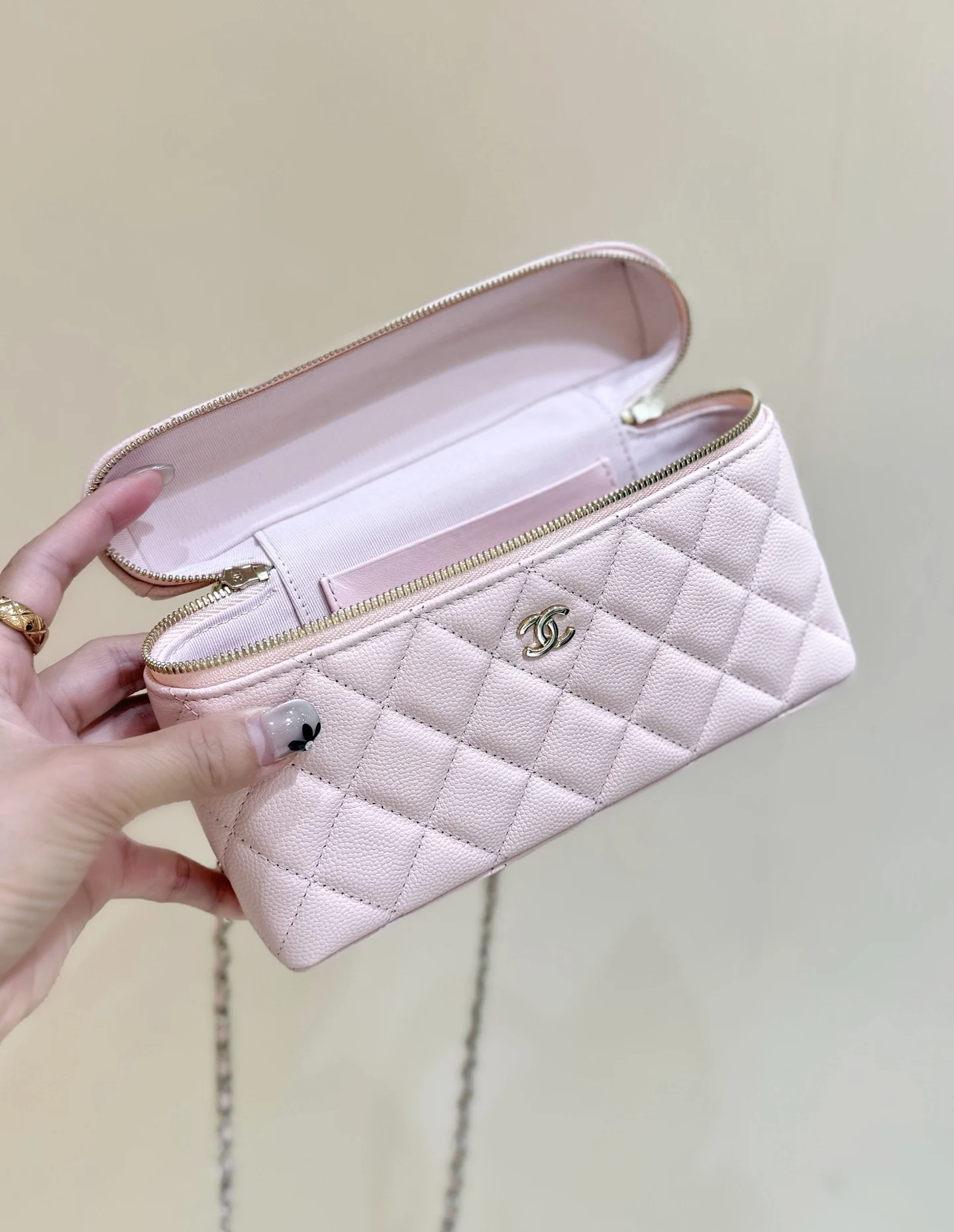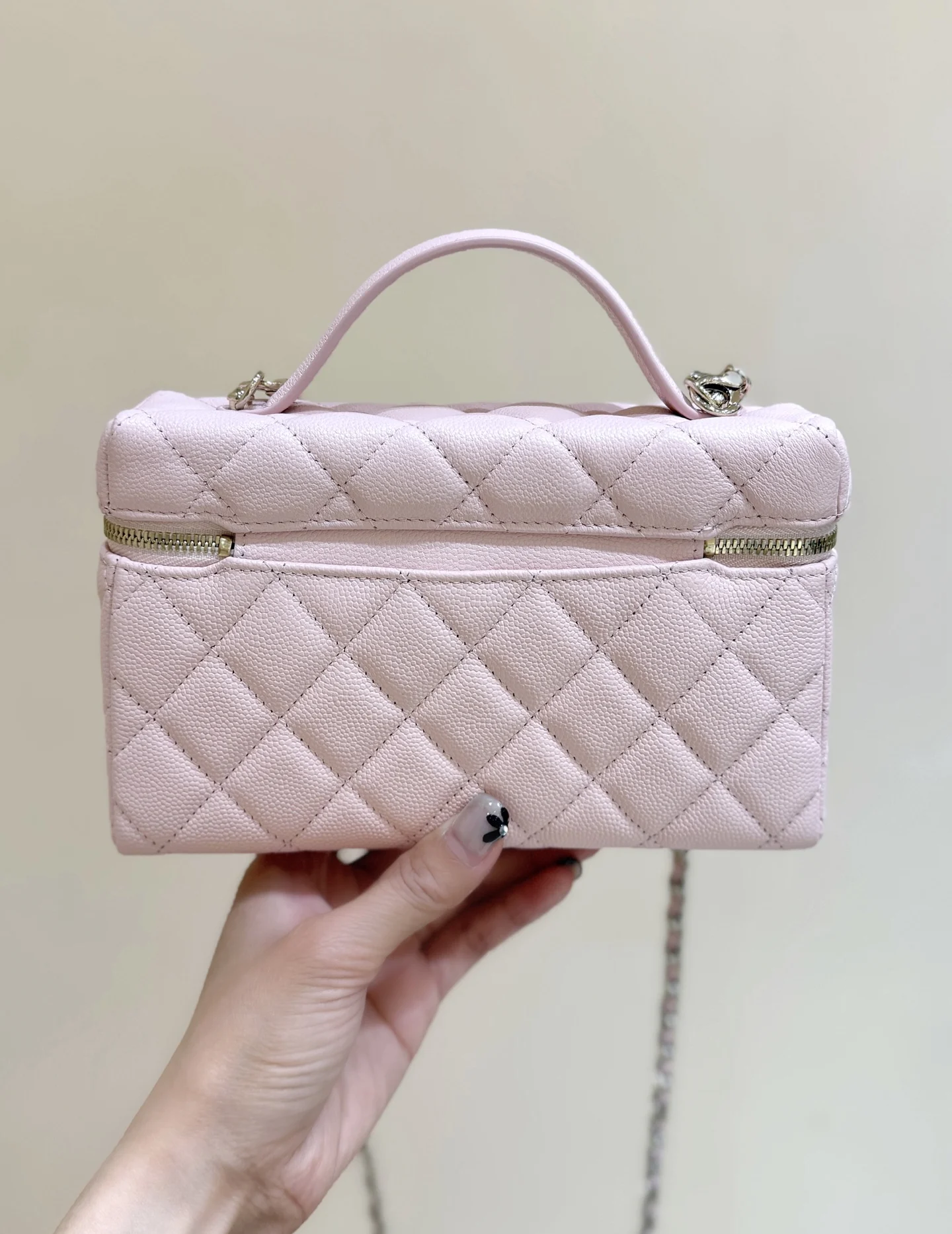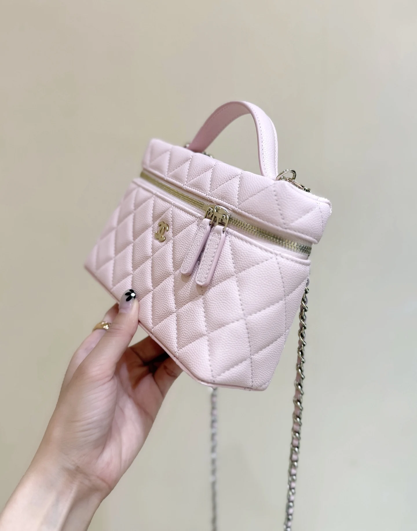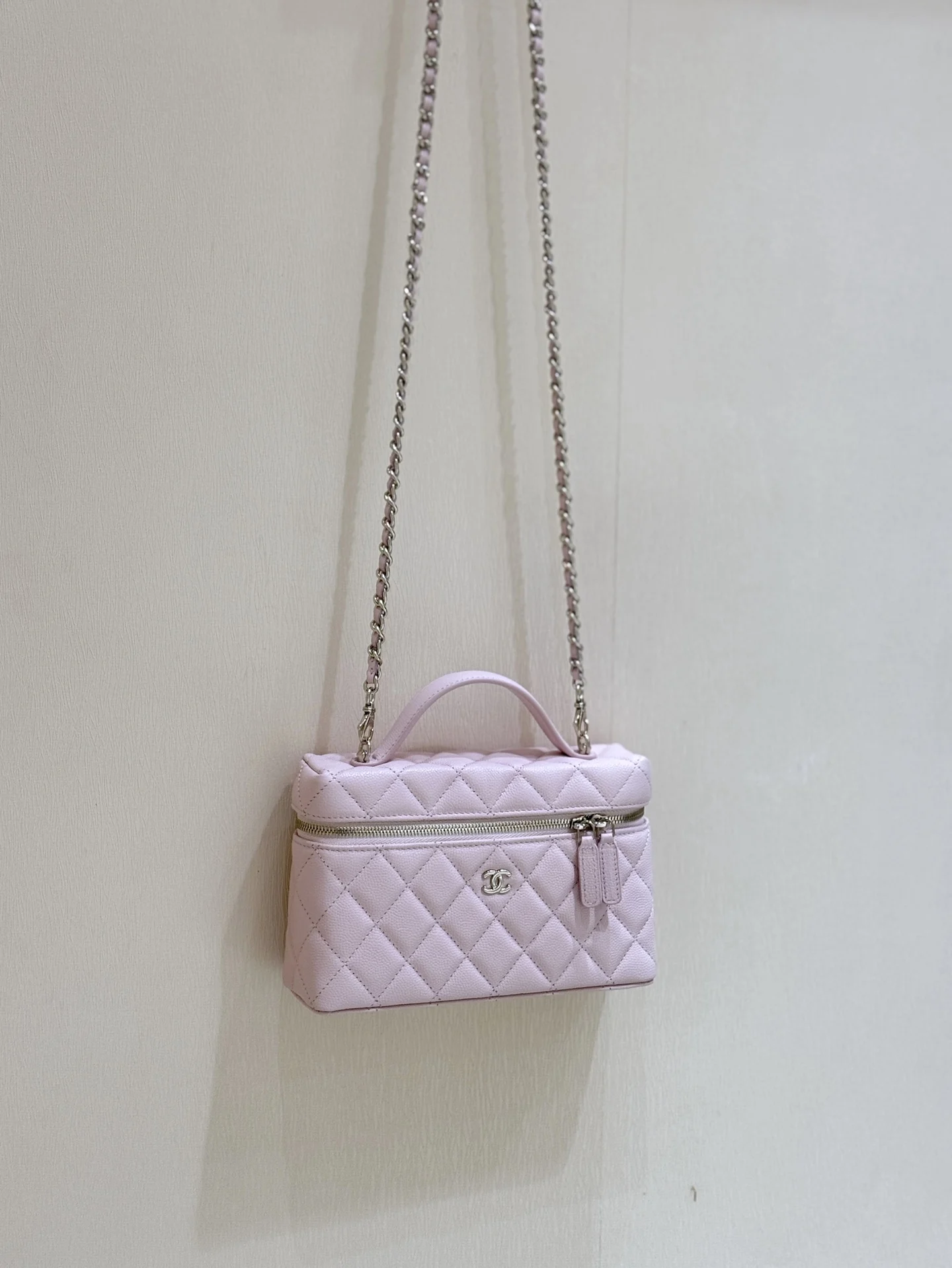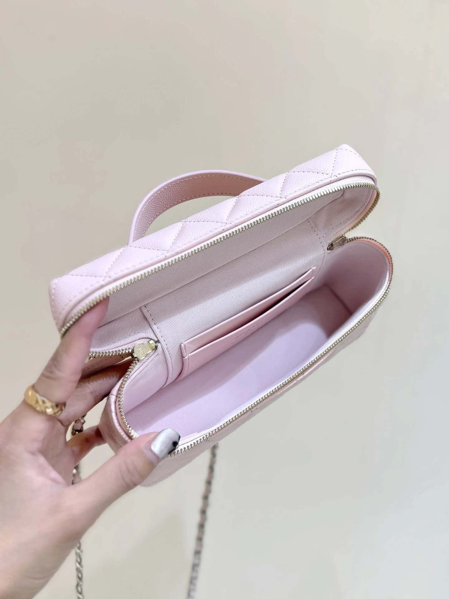 Purchased the 25C Early Spring series ZP at a premium of 28,000 for the 25s LP Lunch Box Bag with small logo in light pink original leather. The color is consistent, and the design is very classic and durable. The capacity is also very large, easily accommodating two large phones. The shoulder strap is also freely detachable! Highly recommend the original factory authentic Haas litchi calfskin AP4385 (14*19*5cm).