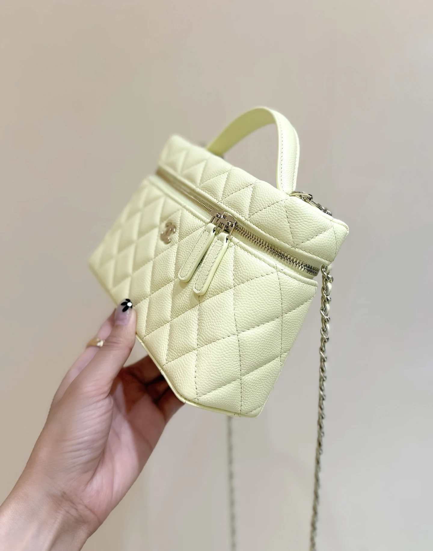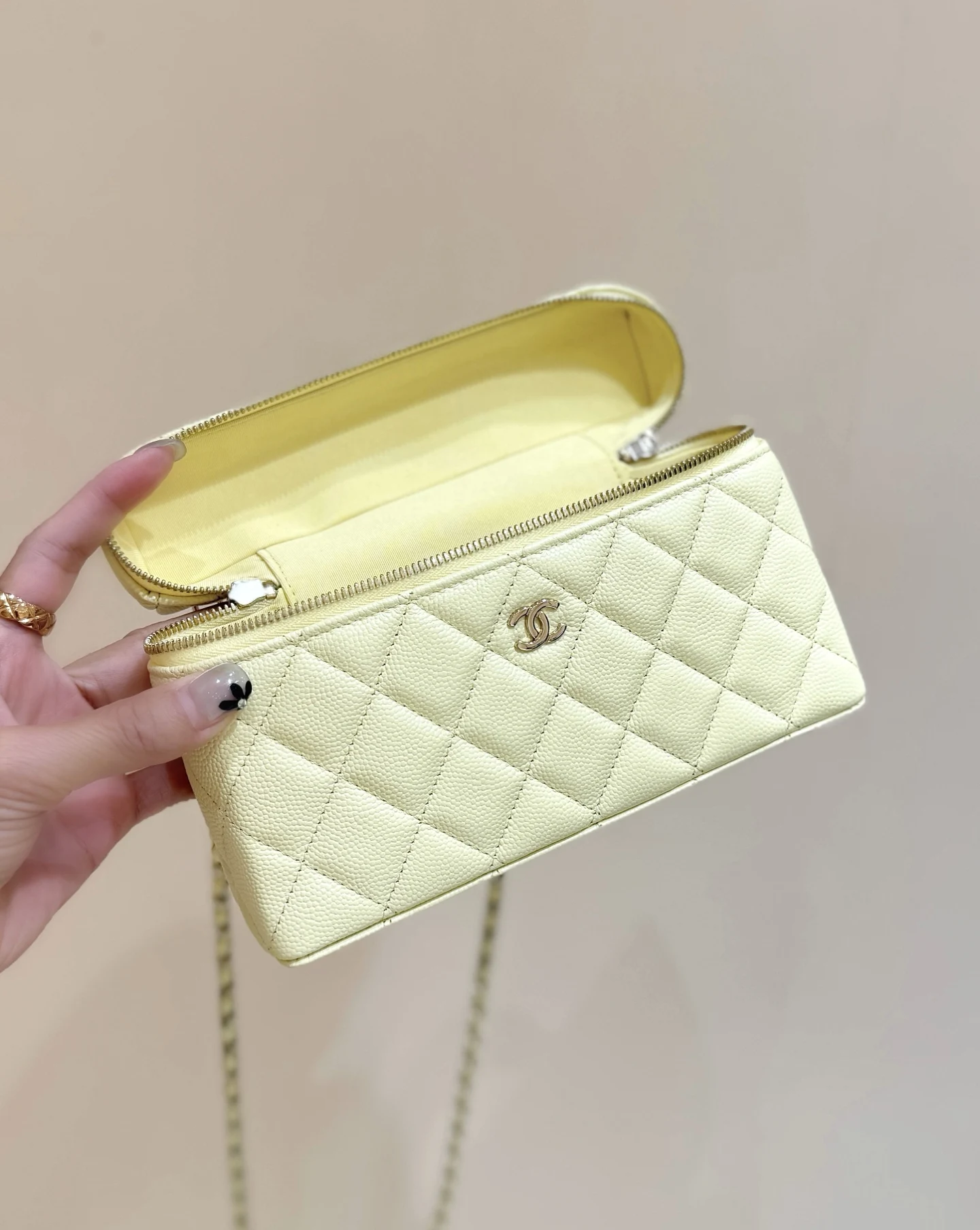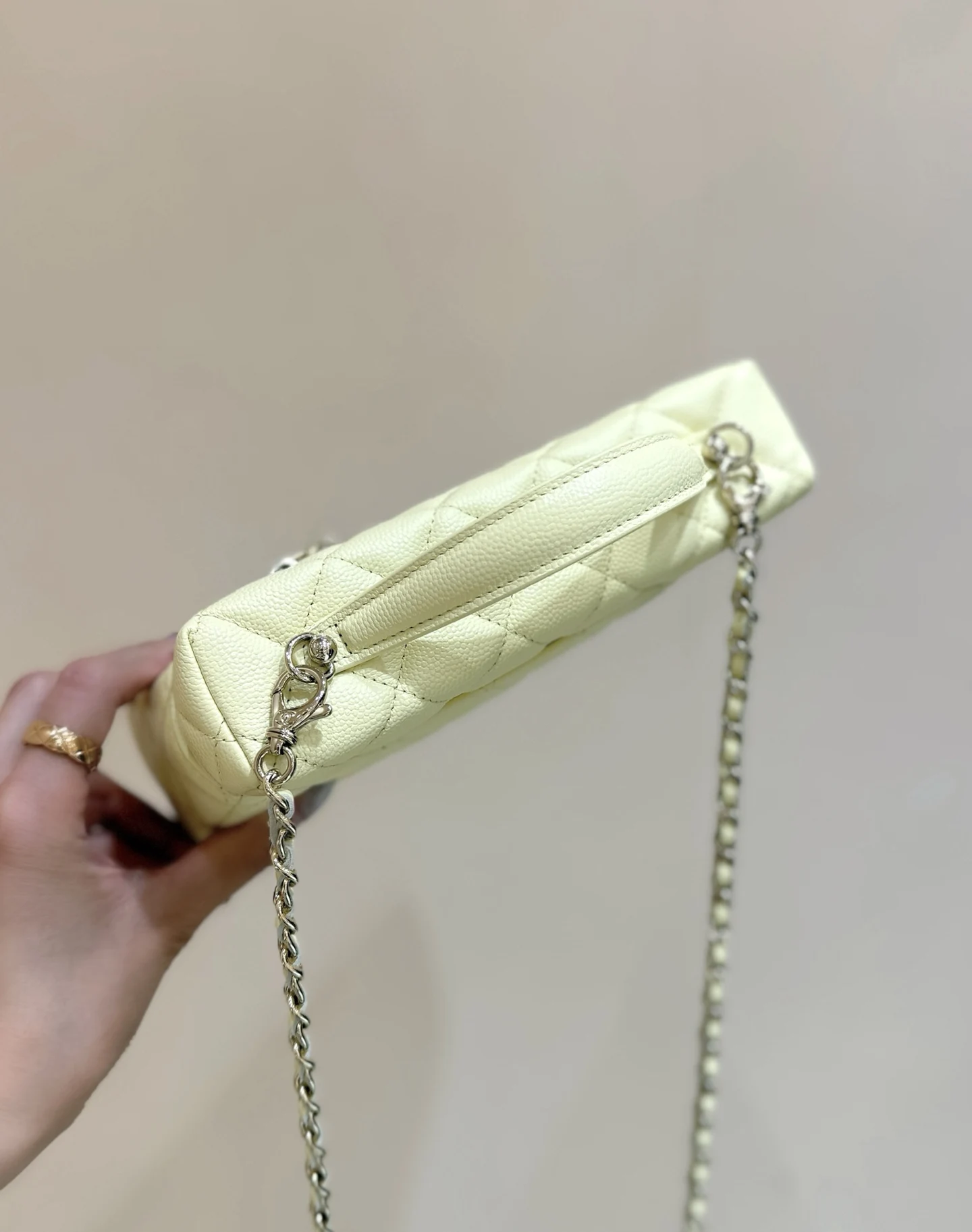 Purchased the 25C Early Spring Collection ZP at a premium of 28,000 for the 25s LP Lunch Box Bag with small logo in chick yellow. The original leather has no color difference and features a very classic and durable design with a large capacity, easily accommodating two large phones. The shoulder strap is also freely detachable! Highly recommend the original factory authentic Haas litchi calfskin AP4385 (14*19*5cm).