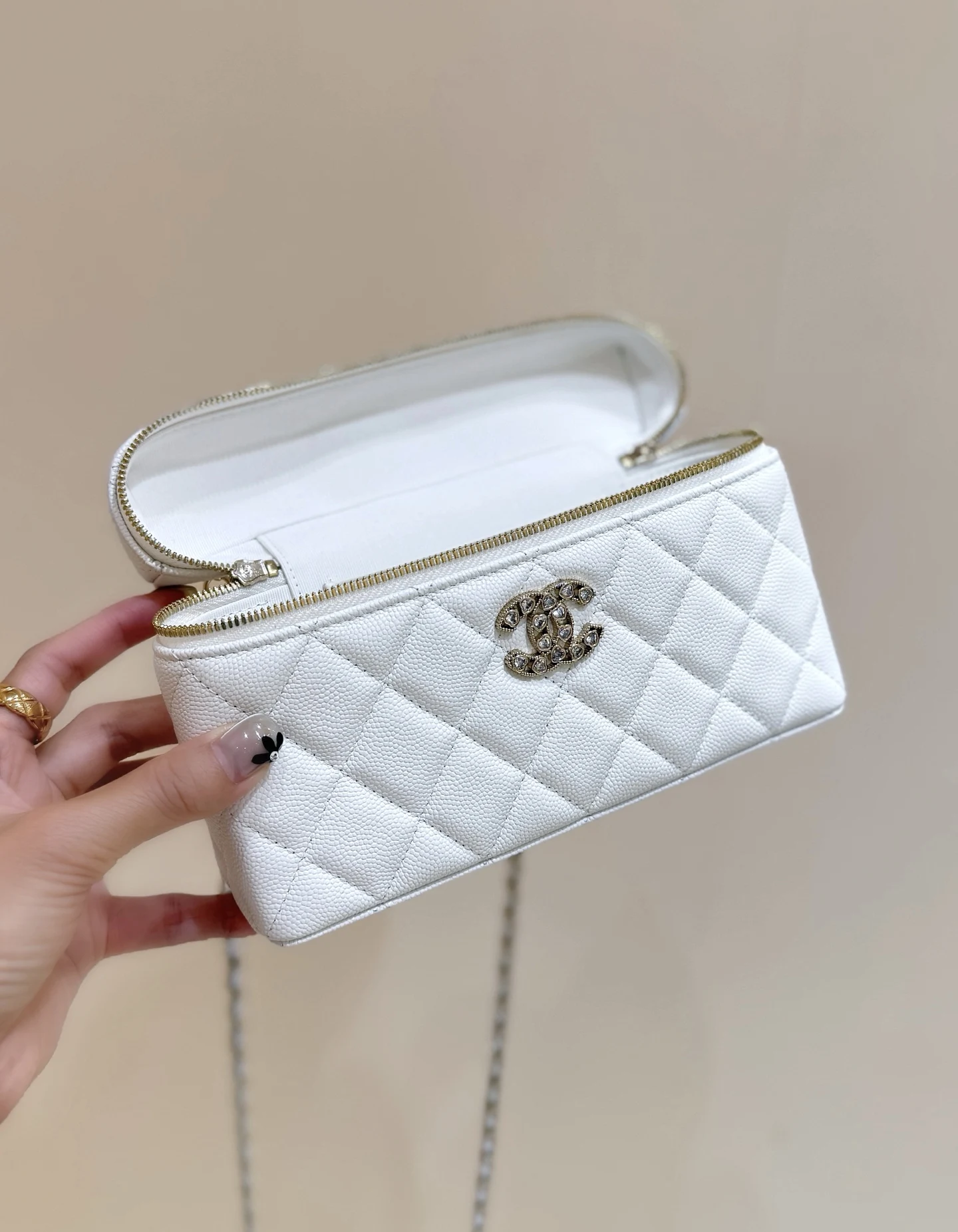 White 25P Spring Summer Preview Series ZP Premium Purchase of Chane1 25P Limited Edition Heart Diamond Lunch Box Bag This globally limited diamond box, with only a few pieces arriving in China, is very difficult to buy. It still has a classic and durable design with a very large capacity. The shoulder strap is also freely detachable! Highly recommended original factory authentic Haas lychee calfskin AP4531 (14*19*5cm)