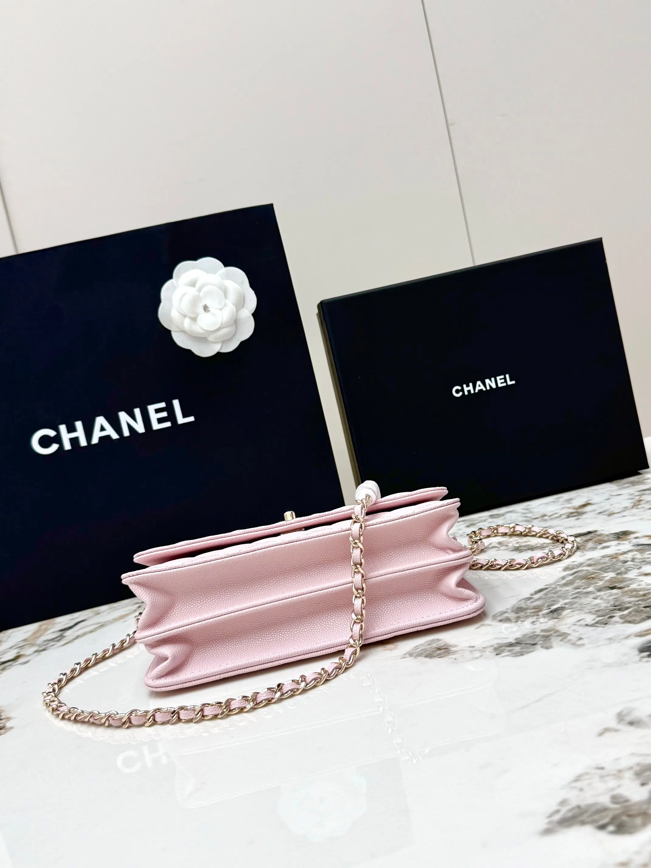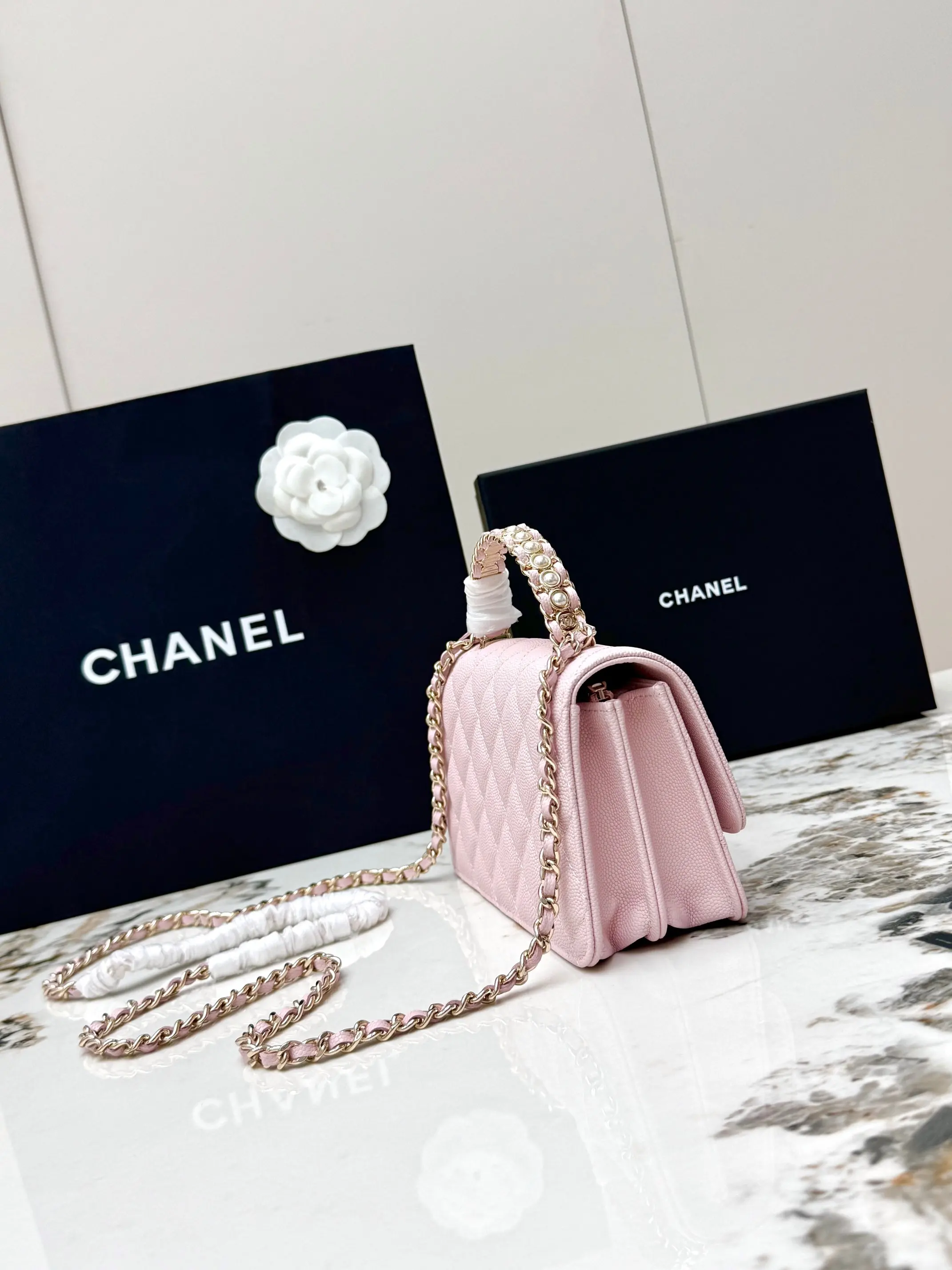 [Imported Original Leather ] [With Box] CHANEL [Rose] Chanel 26C Pearl Handle is now available. Gold metal lock, exquisite handle design enhances fashion. Grainy imported cowhide paired with vintage metal hardware, durable and wear-resistant. Classic design style, versatile and practical. Can be carried by hand, worn crossbody, or on one shoulder. Truly exquisite, high aesthetic value, compact. I m increasingly in love with this chain bag; it s beautiful to carry casually. It pairs well with any outfit, making you look stunning. This season s new arrivals are very impressive.