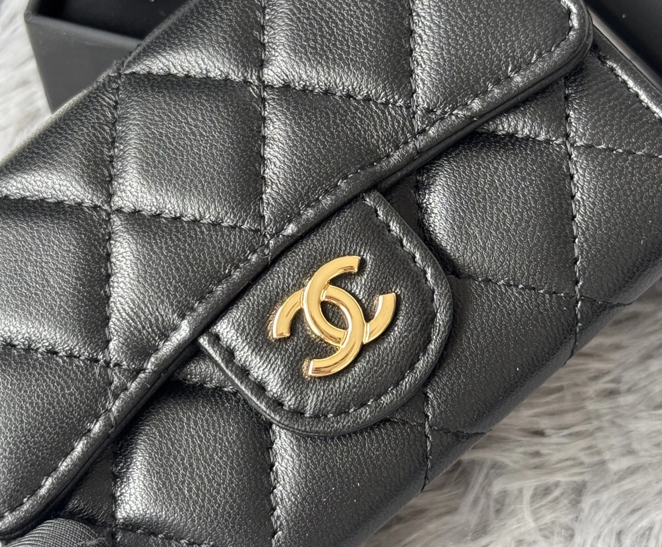 CHANEL lambskin caviar, small and large pebble texture, classic series in black, with gold and silver hardware, exclusive real shots. The classic CF small card holder has arrived! ..