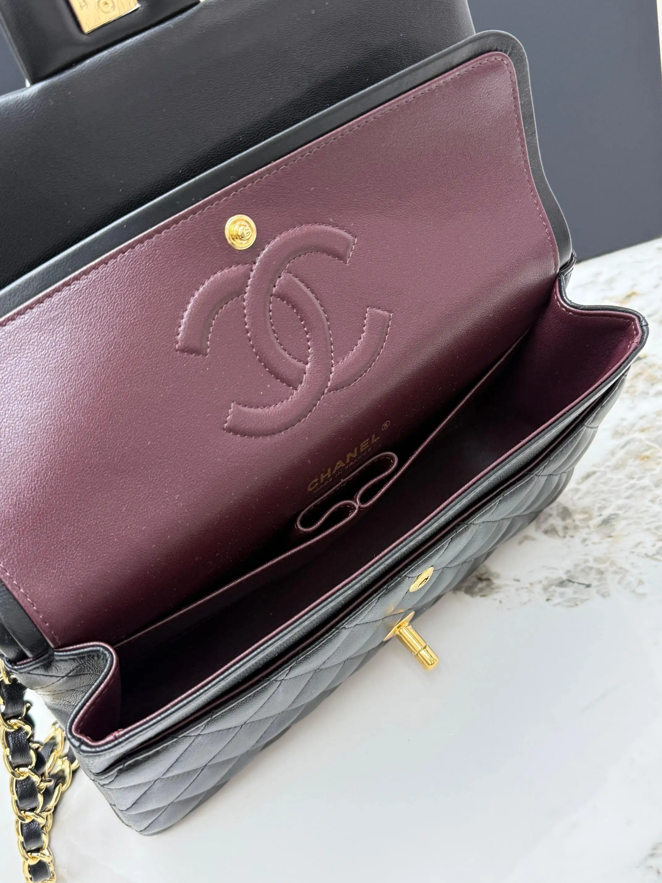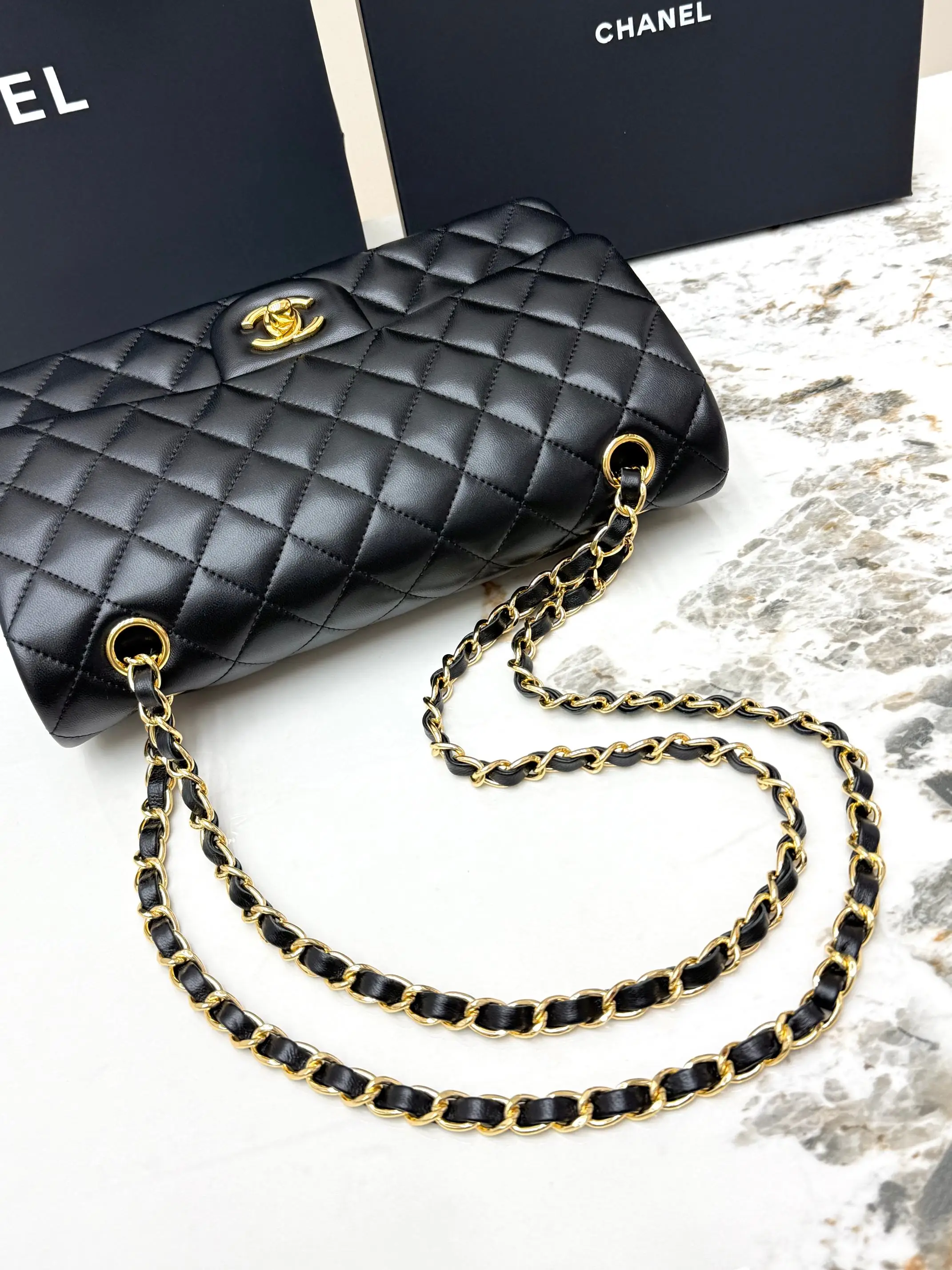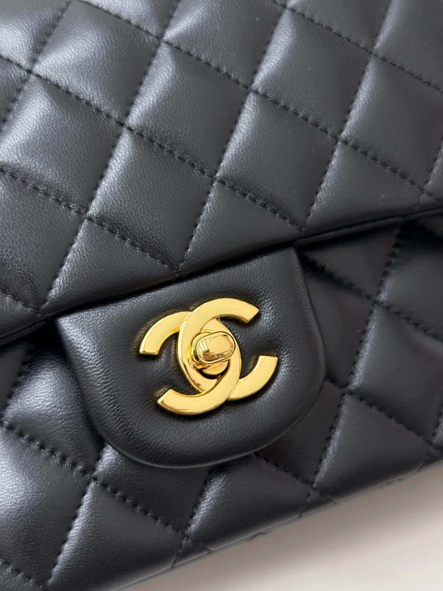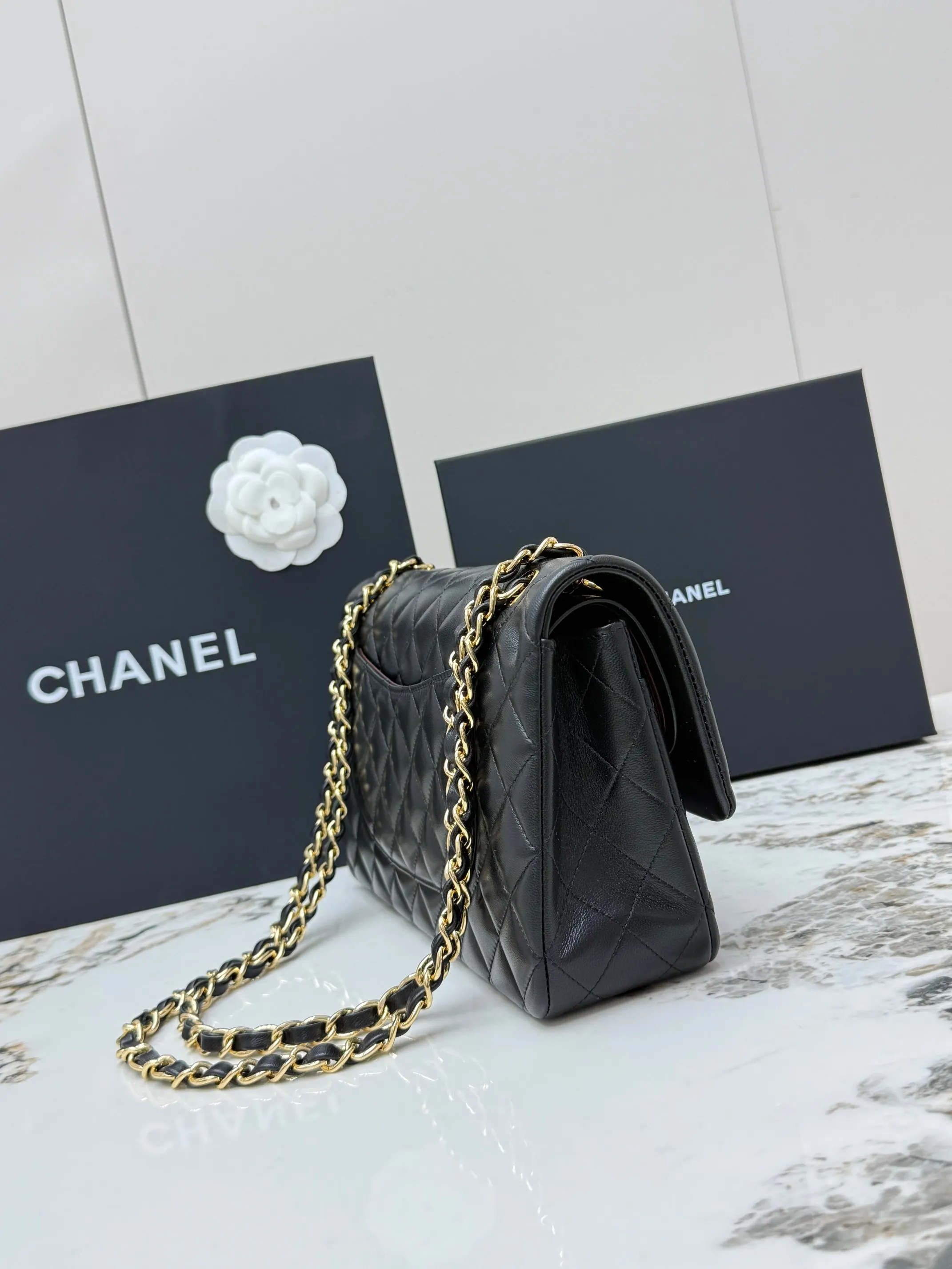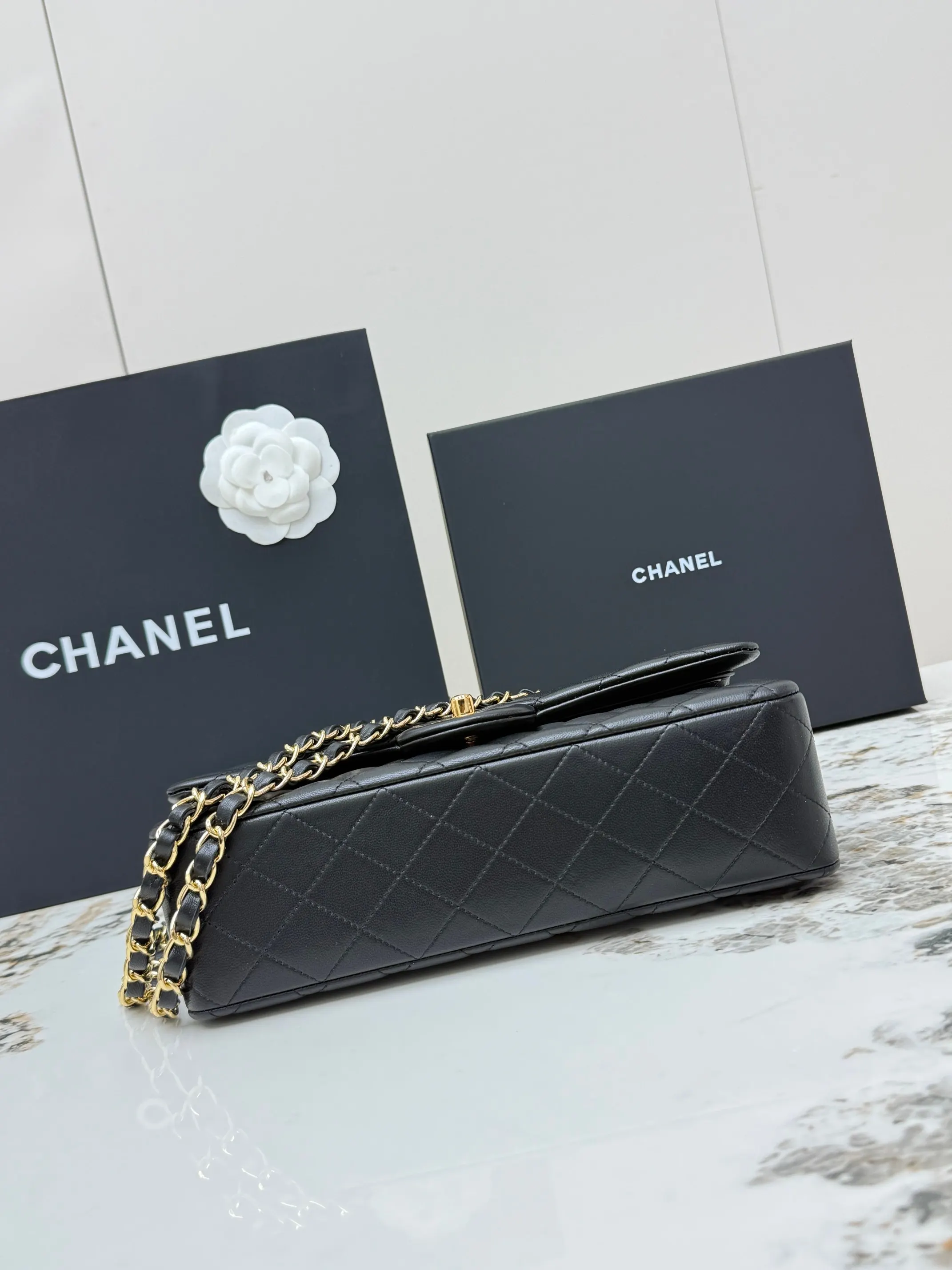 [Imported Original Leather ] CHANEL [Rose] Top Quality Original Item Classic Flap CF Classic Gold Hardware Quilted Lambskin Chain Shoulder Bag, featuring a chain strap and grain-embossed lambskin [Coffee] ladies handbag that can be worn crossbody or on the shoulder. Made with imported gold hardware and lambskin material, both inside and out are made of full lambskin, offering exceptional softness, durability, and resistance to scratches. Classic quilted pattern + vintage gold hardware, adorned with double C logo, with exquisite details! Model: AS1112