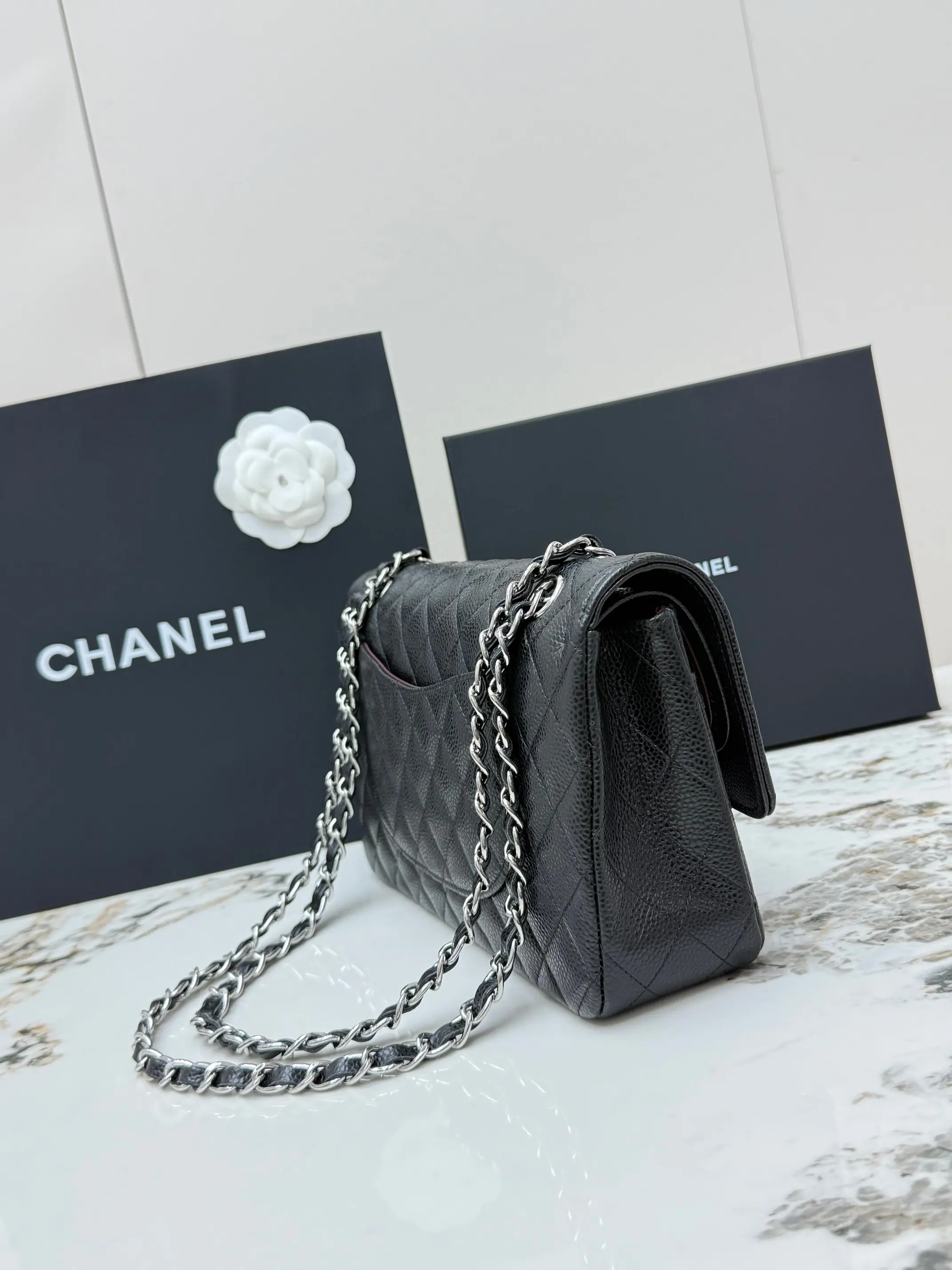 [Imported Original Leather ] CHANEL [Rose] Top Quality Original Goods Classic Flap CF Classic Silver Hardware Quilted Calfskin Chain Bag, Chain Shoulder Strap, Grain Embossed Ball Pattern Calfskin [Coffee] Women s Handbag, Can be Crossbody or Shoulder, Made with Imported Silver Steel Customized Hardware, Imported Calfskin Material, Fully Leather Inside and Out, Softness Abundant, Wear-Resistant and Not Easily Scratched, Classic Quilted Pattern + Vintage Silver Hardware, Double C Logo Accents, Details are Extremely Exquisite! Model: AS1112