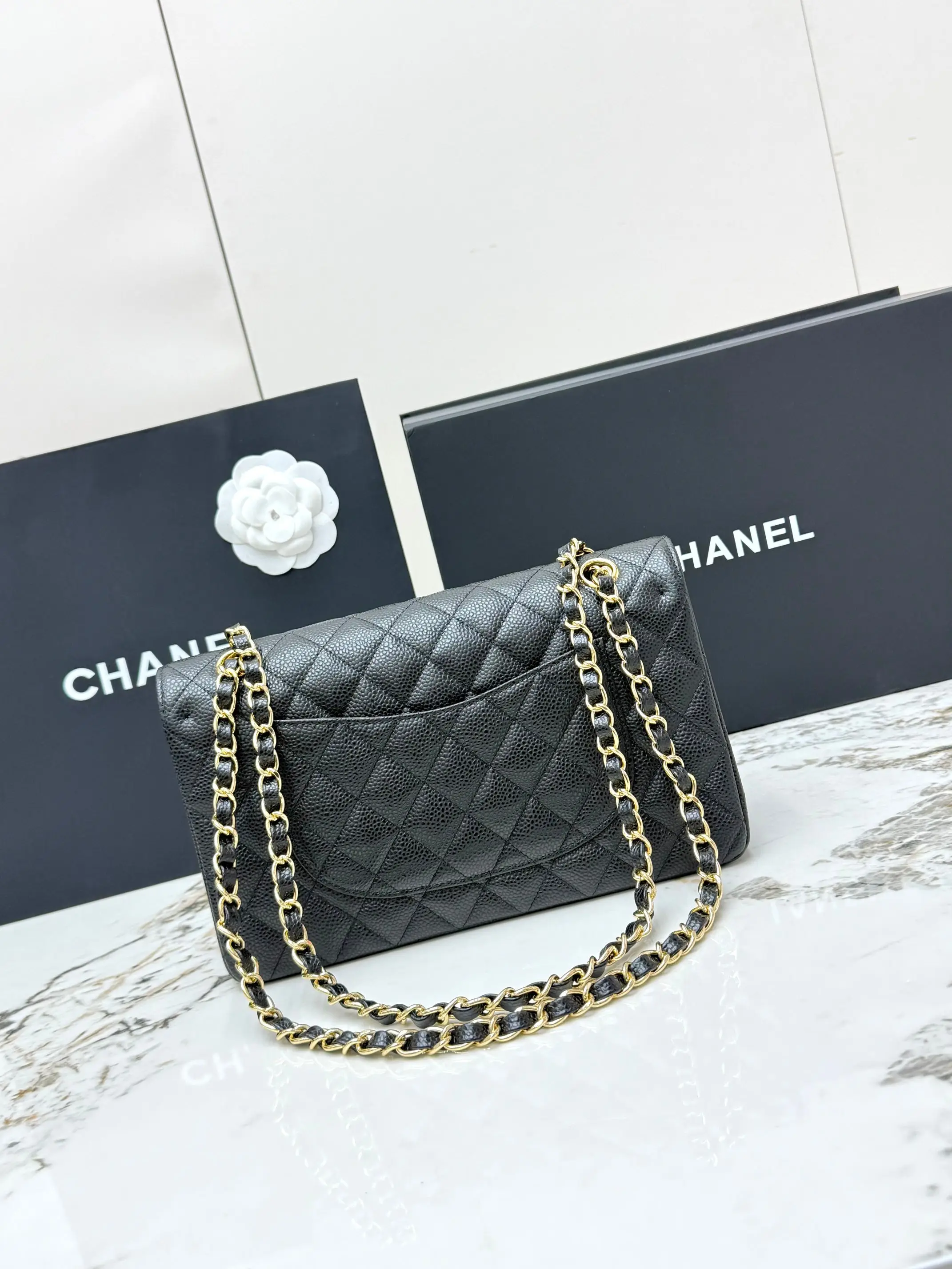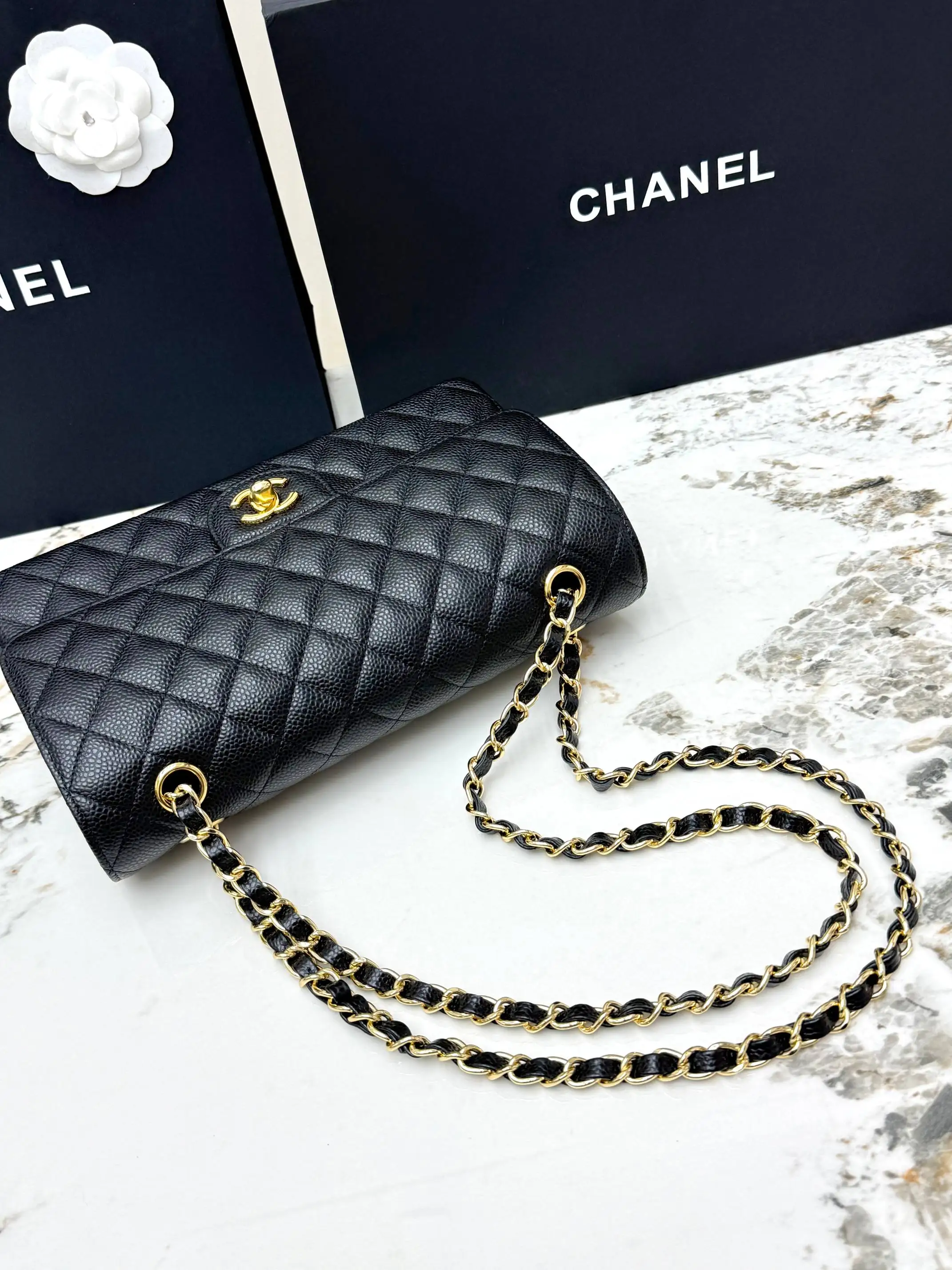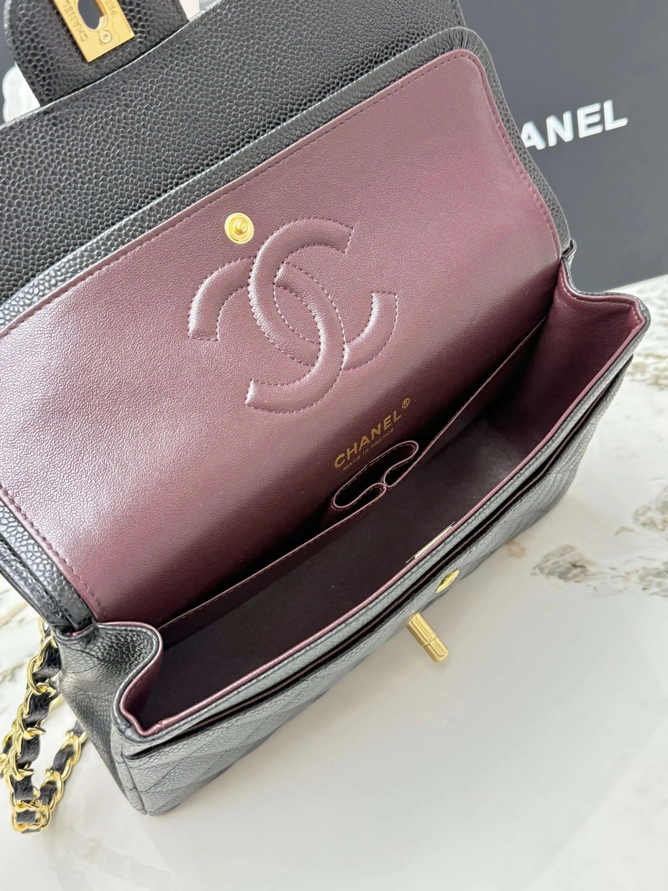 [Imported Original Leather ] CHANEL [Rose] Top Quality Original Goods Classic Flap CF Classic Gold Hardware Quilted Calfskin Chain Shoulder Bag, featuring a chain strap and grain-embossed calfskin [Coffee] handbag for women, suitable for crossbody or shoulder wear. Made with imported custom hardware and calfskin material, fully leather inside and out, offering excellent softness, abrasion resistance, and scratch resistance. Classic quilted pattern with vintage silver hardware, adorned with double C logo, and exquisite details! Model: AS1112