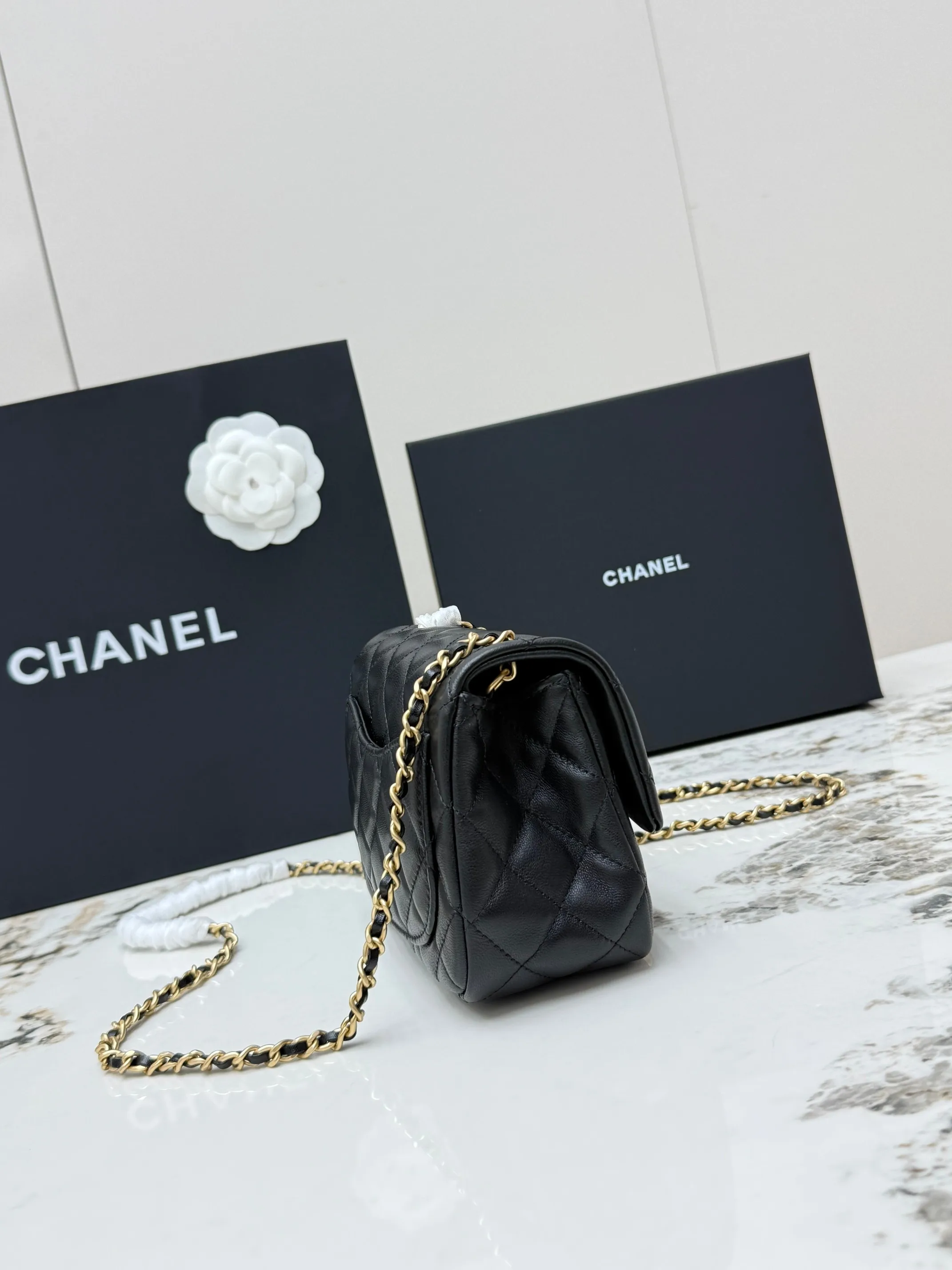 [Imported Genuine Leather ] CHANEL [Rose] (Small) Chanel Top-Grade Original Goods Chanel Hot Metal CF Lambskin Mini Golden Ball Flap Bag [Coffee] The chain has an added small..