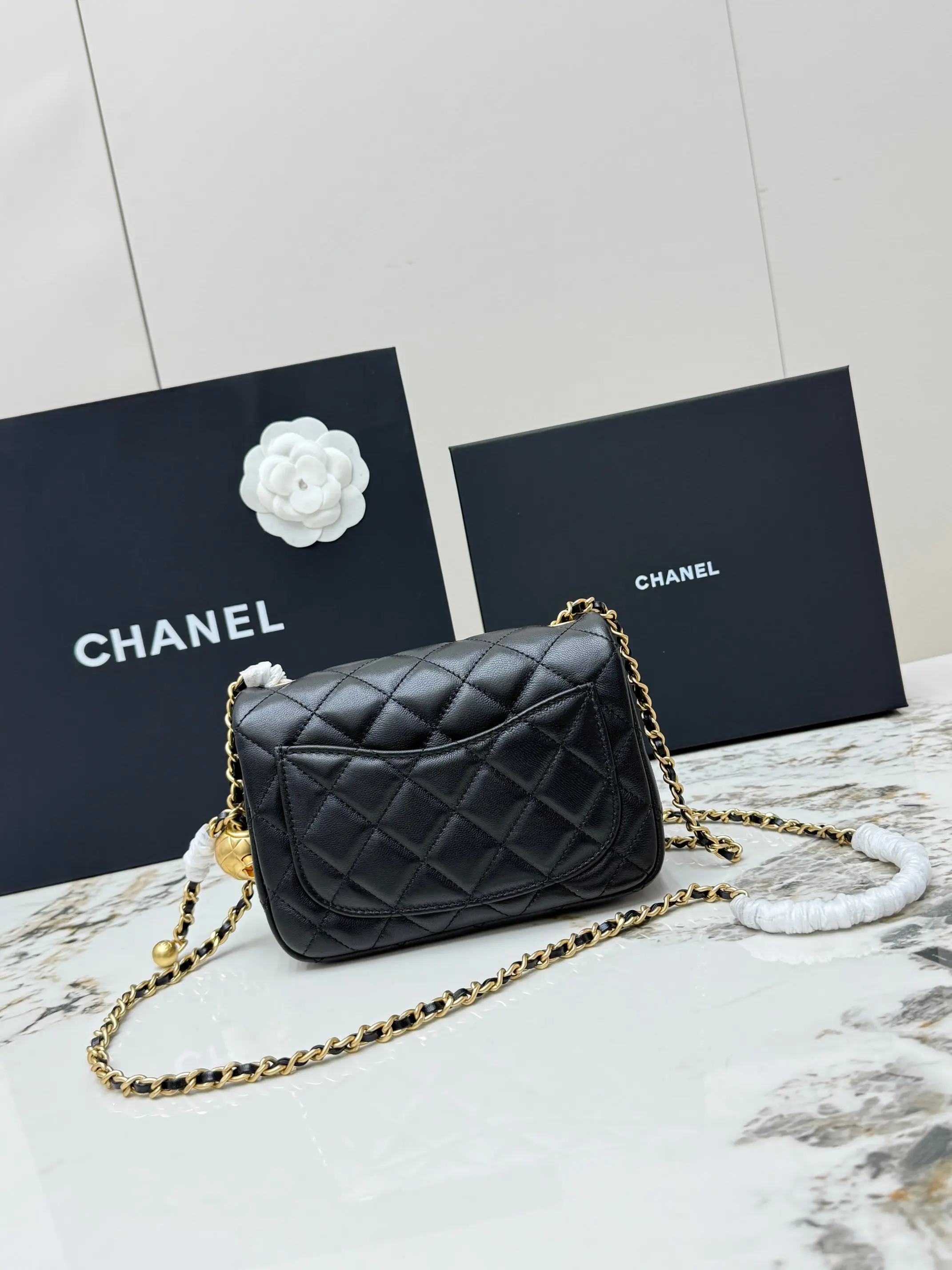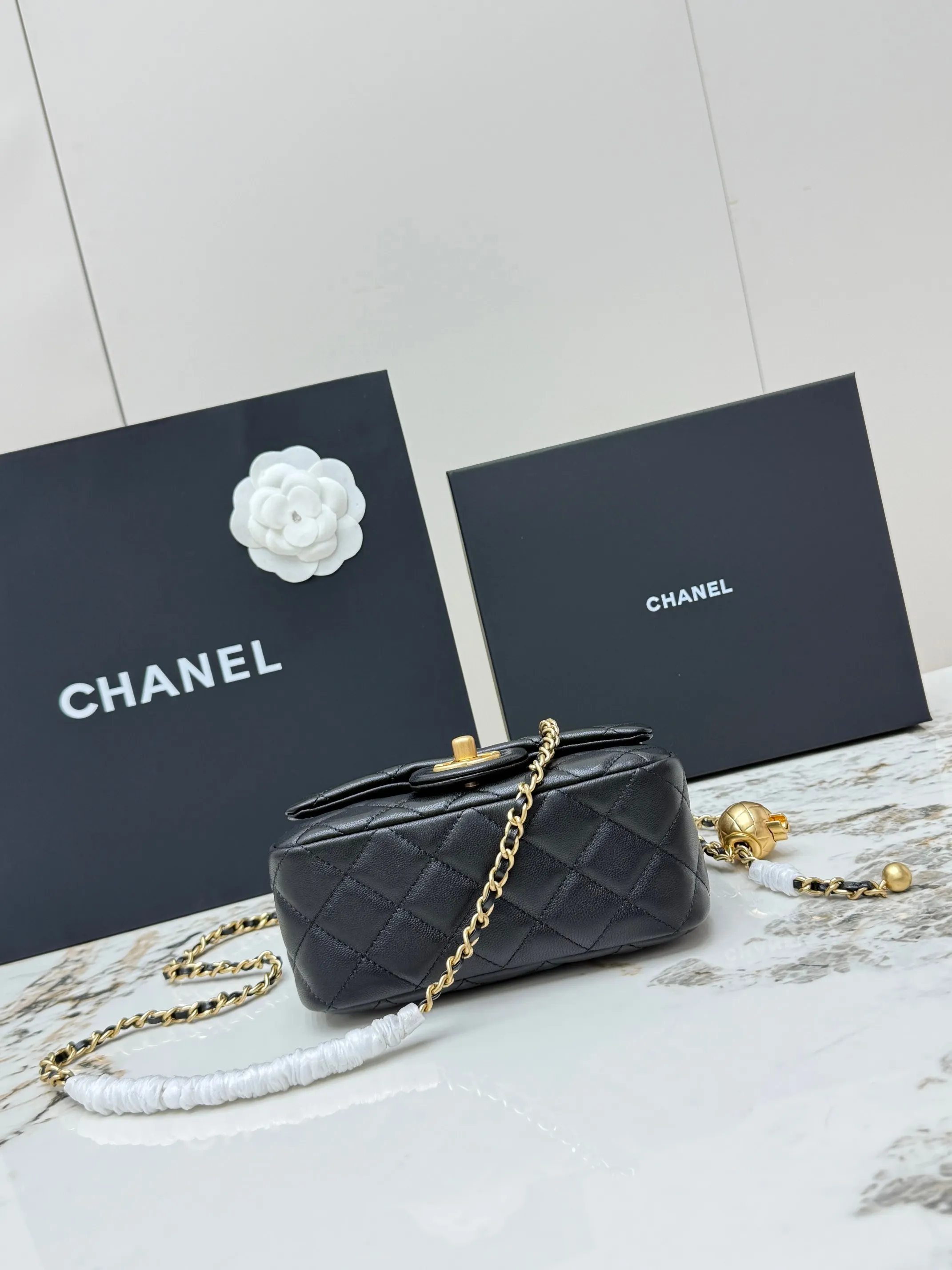 Chanel AS1786 Metal CF Lambskin Mini Flap Bag with Ball Charm, Crossbody Bag
