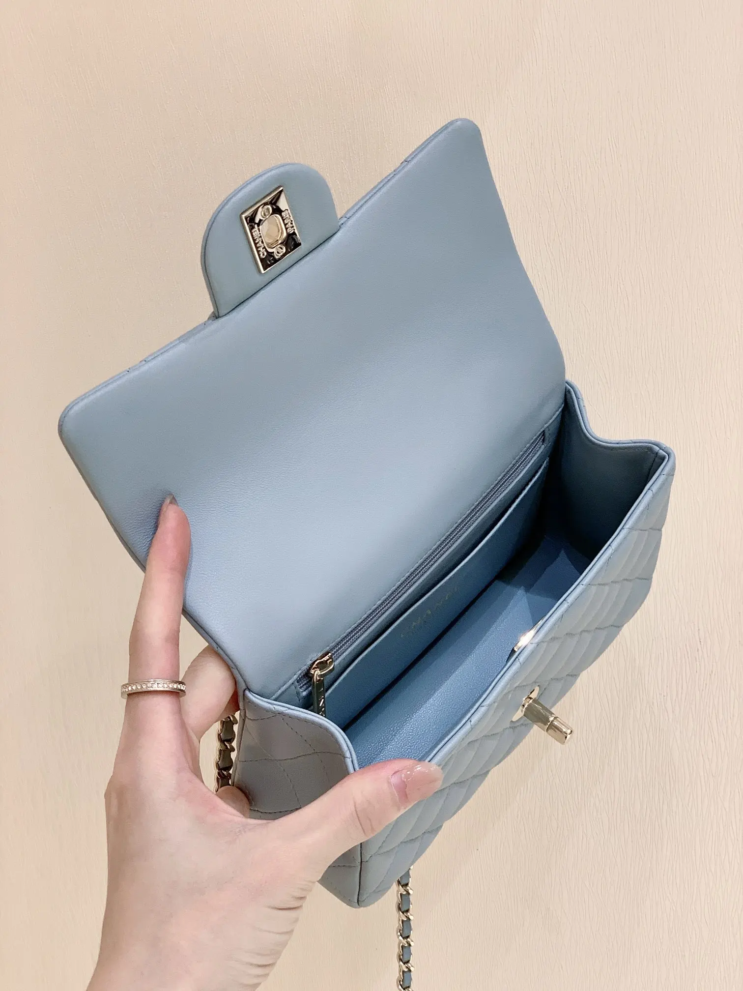 Original leather CF, large wrist mini, original authentic square frame lambskin, identical leather, no color difference. First come, first served. The most difficult to get colors this year are Sakura Pink and Baby Blue 2431. Size 20cm.