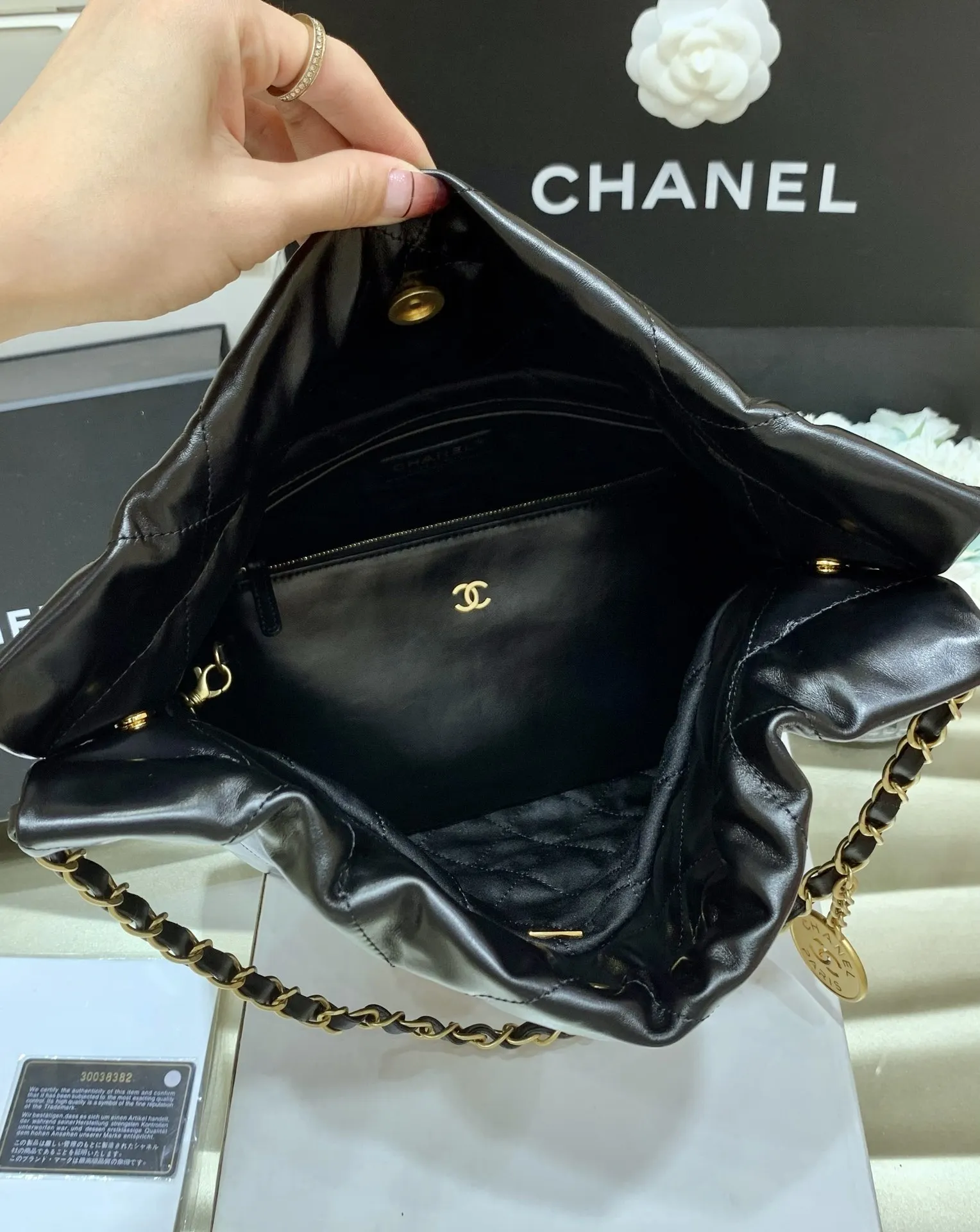 Authentic 22 bag small size, purchased for 35,500. Exclusive original factory square frame calfskin, the hottest and most worthwhile series of the season. Its name is 22 bag. Ch..