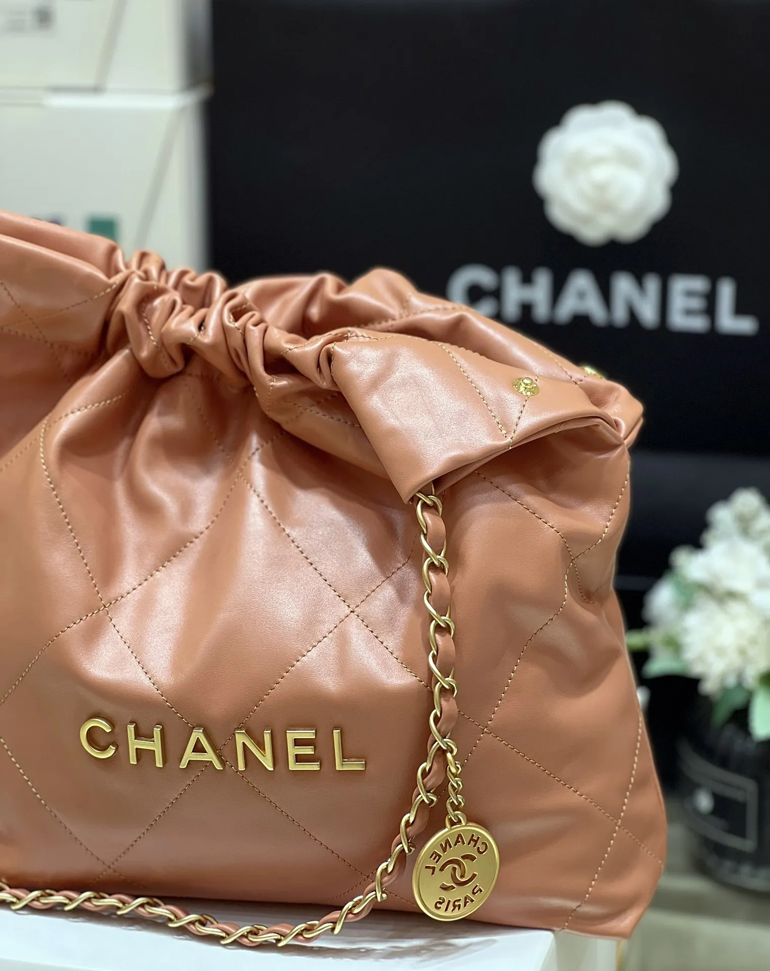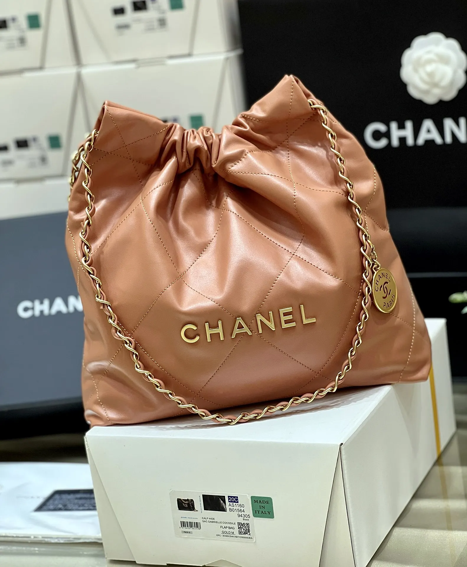 Authentic small size 22A Metiers d art collection in new caramel color, 2022 Spring Summer hot 22 bag small size, purchased for 35500, exclusive original factory square frame calfskin, the most popular and worthwhile series of the season, named 22 bag. Chanel bags named with numbers are guaranteed to be popular and become classics, super fashionable and atmospheric, very easy to match, that s right, carrying it is top-tier! Small size serial number AS3260, dimensions 35x37x7cm.