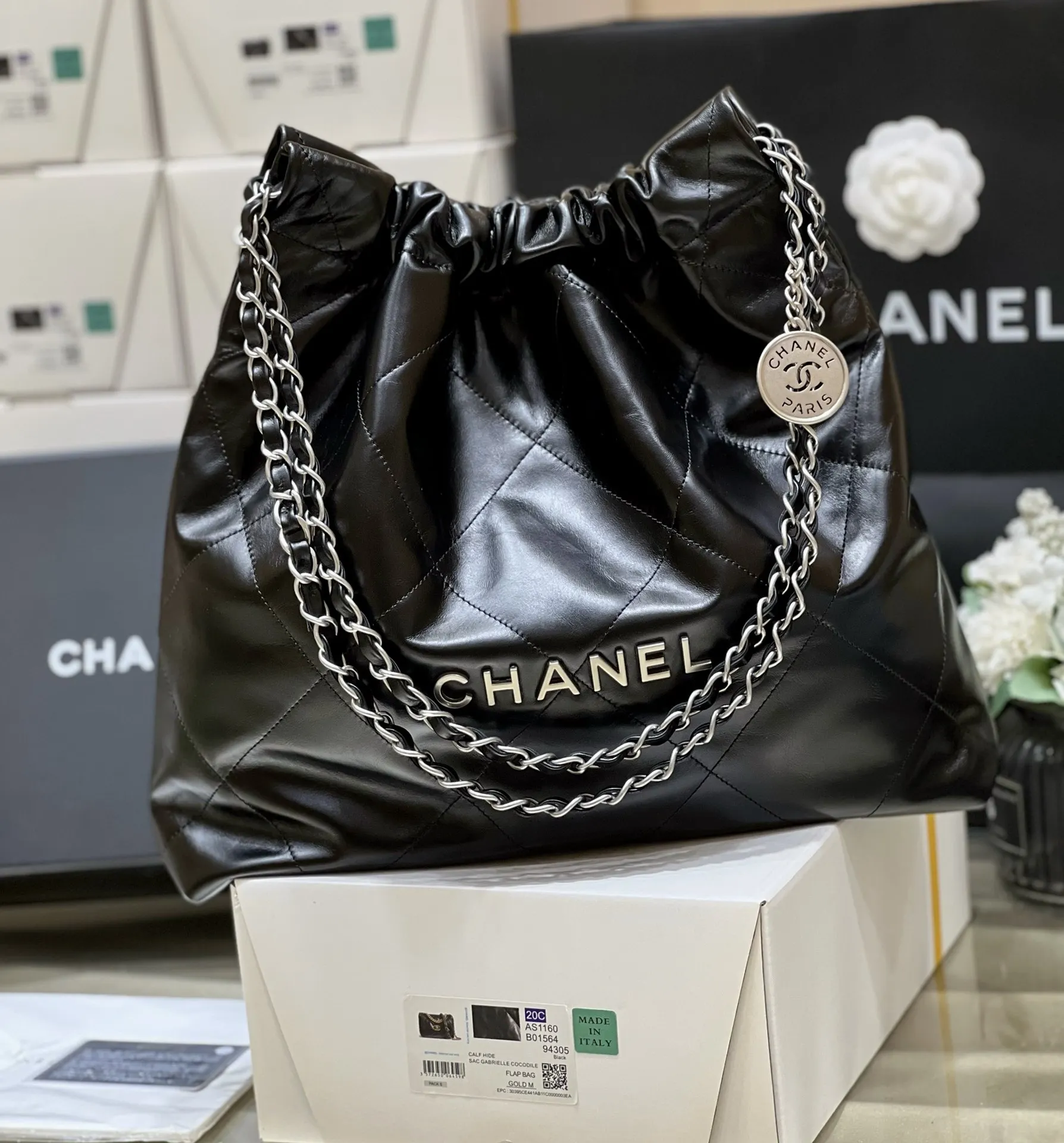 Authentic original factory medium-sized black with antique silver 2022cc Spring Summer hot 22 bag, medium-sized genuine product purchased for 37000, exclusive original factory square frame calfskin, the hottest and most worthwhile series of the season, named 22 bag. Chanel bags named with numbers are destined to be popular and become classics, super fashionable and atmospheric, very easy to match, that s right, wearing it is top-tier! Medium size number AS3261, dimensions 39x42x8cm.