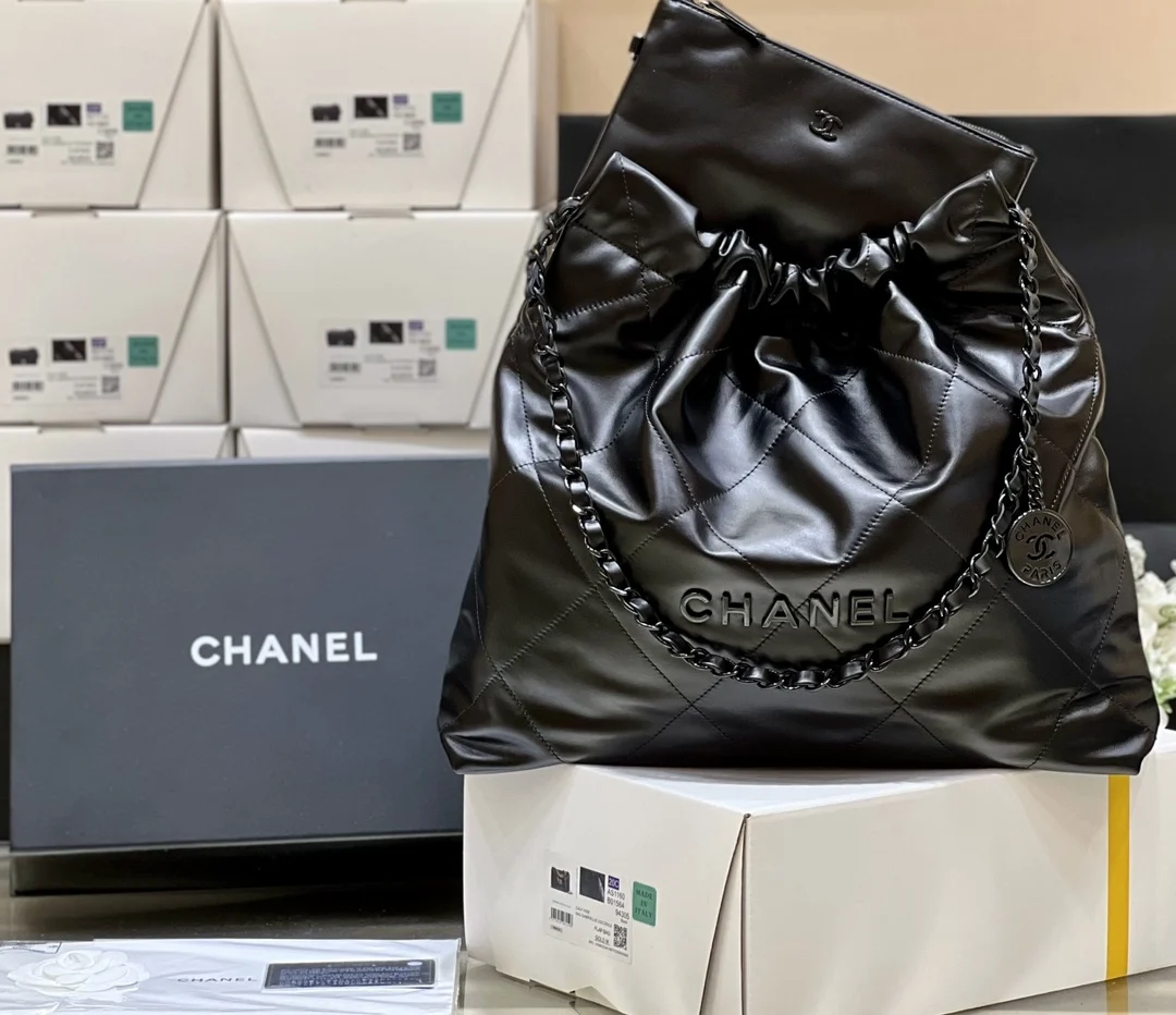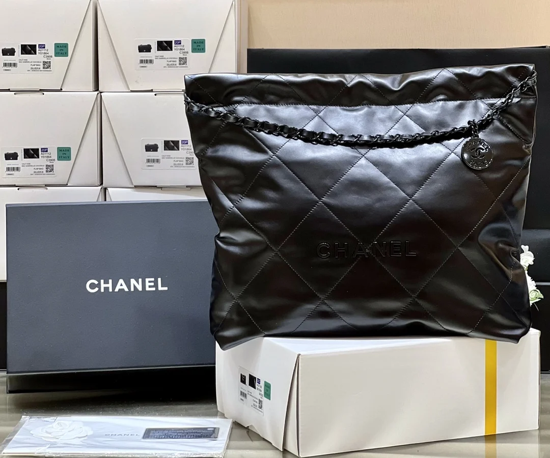 Authentic development of new color for pure original medium 22k trash bag, no color difference black leather paired with gun-tone hardware, an absolutely perfect match. Authentic medium size purchased for 37,000, exclusive original factory square frame calfskin, the hottest and most worthwhile series of the season, it s called the 22 bag. Chanel bags named with numbers are destined to be popular and will become classics, super fashionable and atmospheric, very easy to match, that s right, wearing it is top-tier! Medium size number AS3261, dimensions 39x42x8cm.