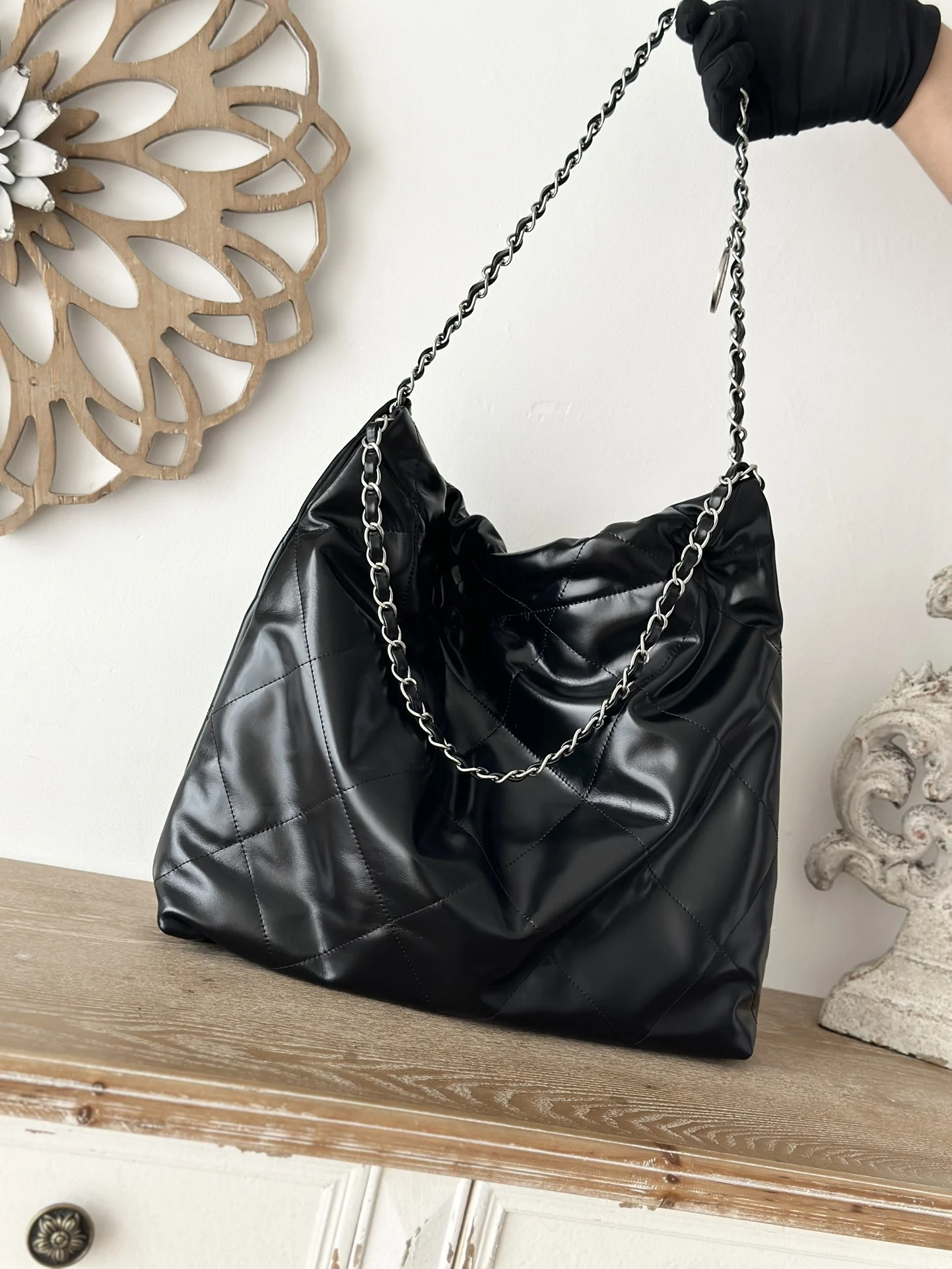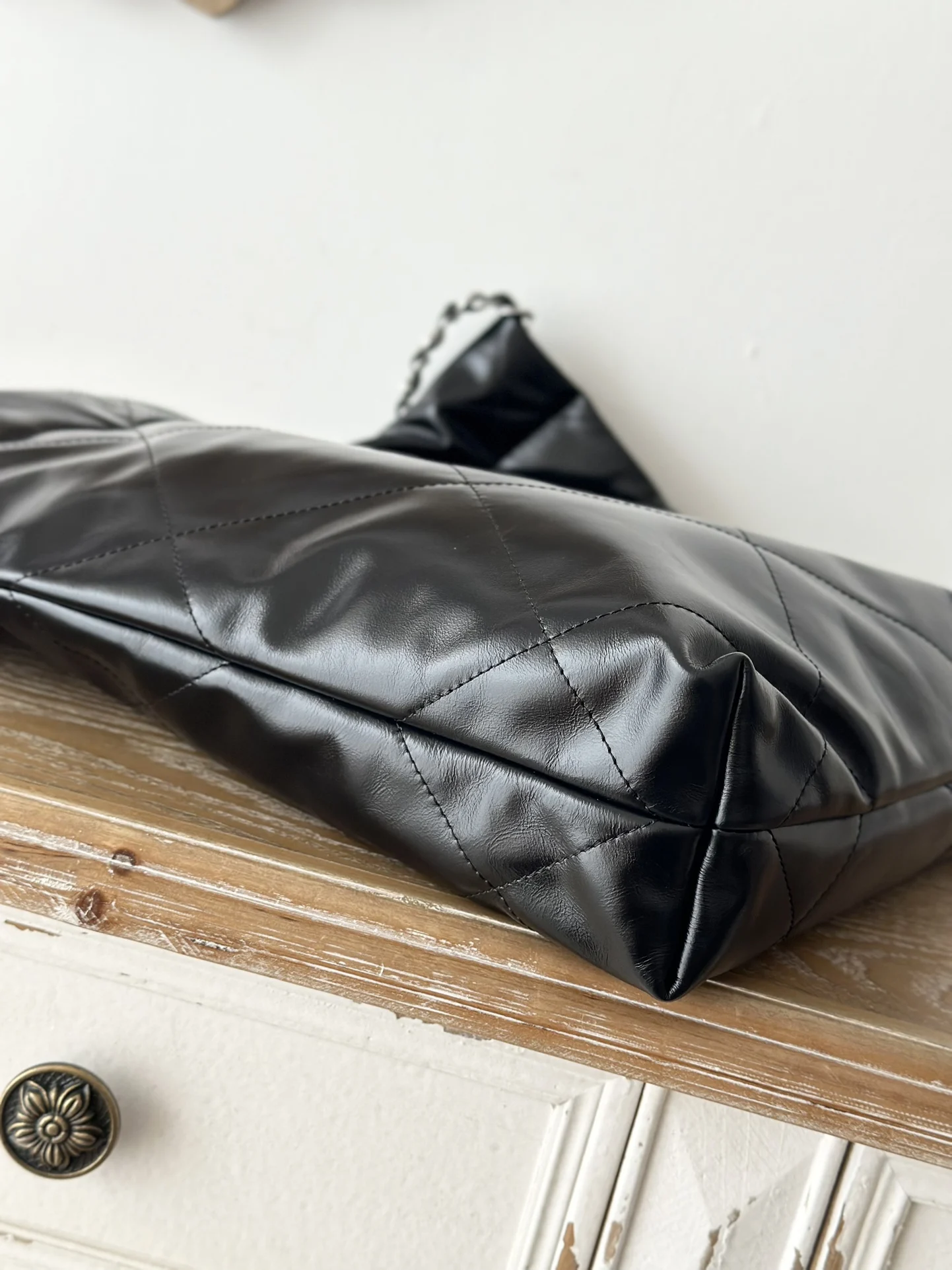 medium-sized 22bag is the most sought-after shopping bag, favored by celebrities and influencers worldwide. Its practicality speaks for itself [Wink]. Simple, elegant, and easy to match, Chanel bags named after years are always a hit, a true classic. Leather: European authentic Antiba calfskin. Hardware: Italian imported 24k gold-plated hardware [Strong]. Supply is limited and often runs out of stock. The feel of the entire bag perfectly matches the authentic product. Small size: 35*37*7cm, 3261. Medium size: 39*42*8cm.
